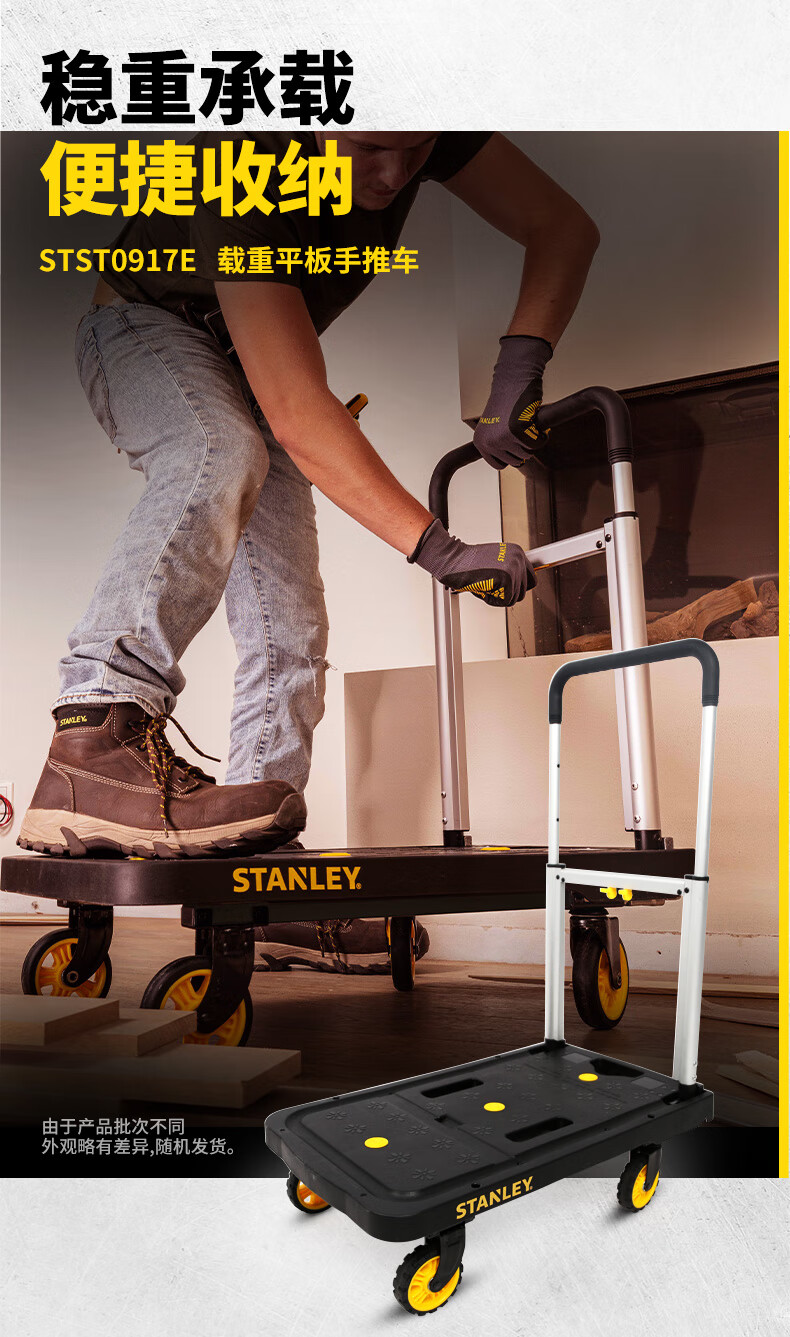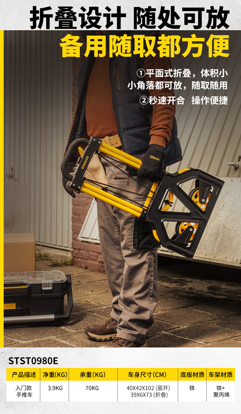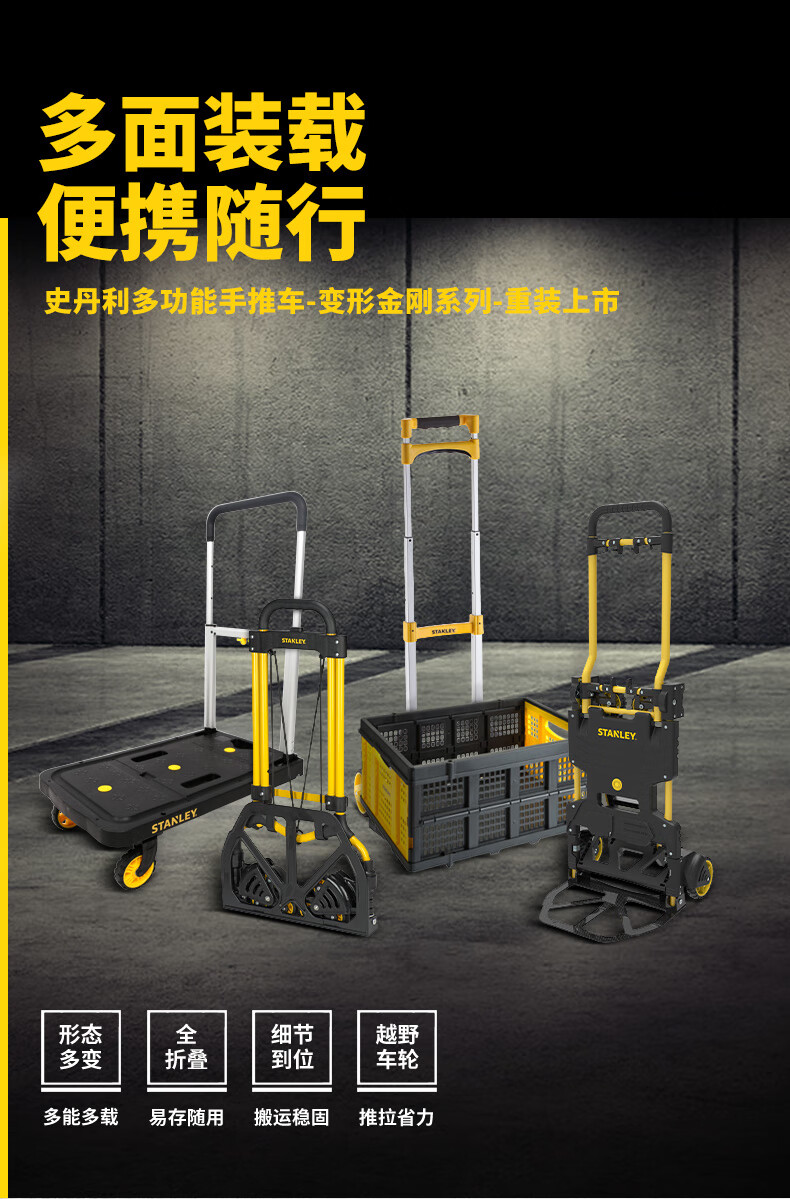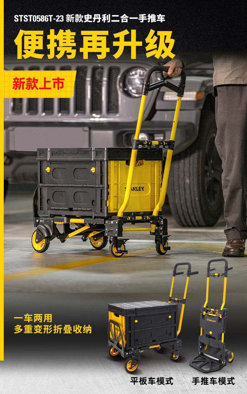Stanley Tool Trolley Folding Toolbox Hand Trolley Home Mobile Cargo Handling Trolley Flat Cart 2-in-1 Foldable Trolley STST0985