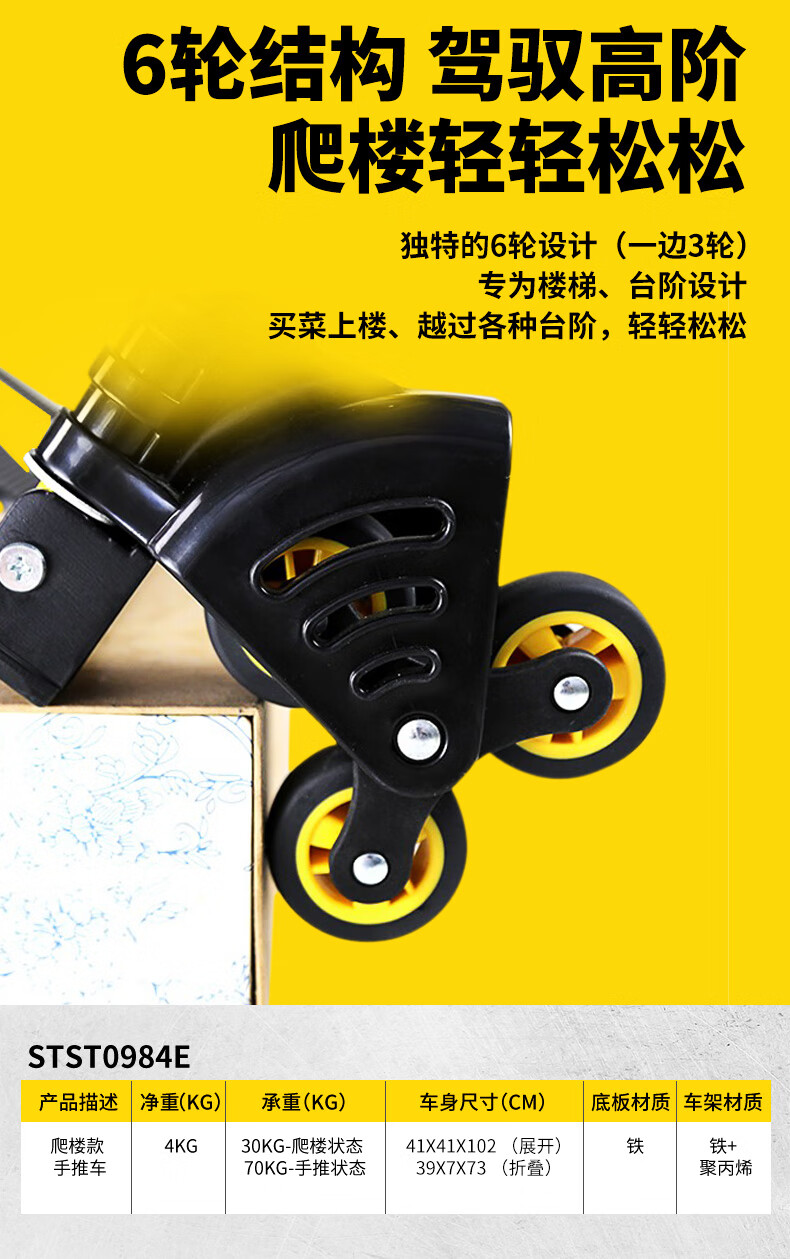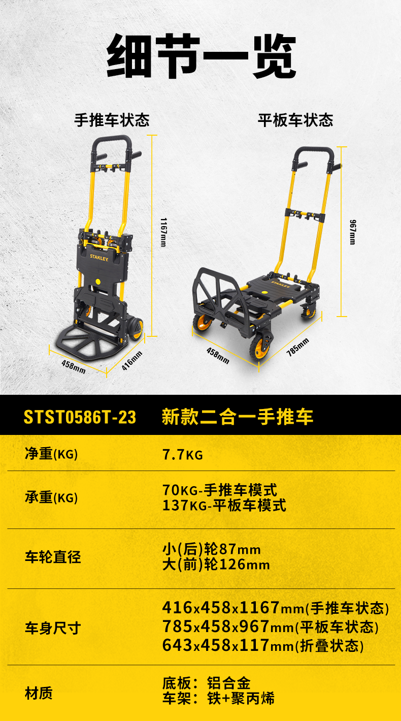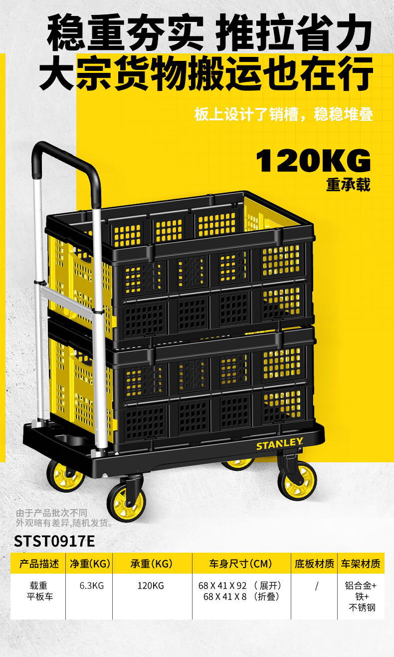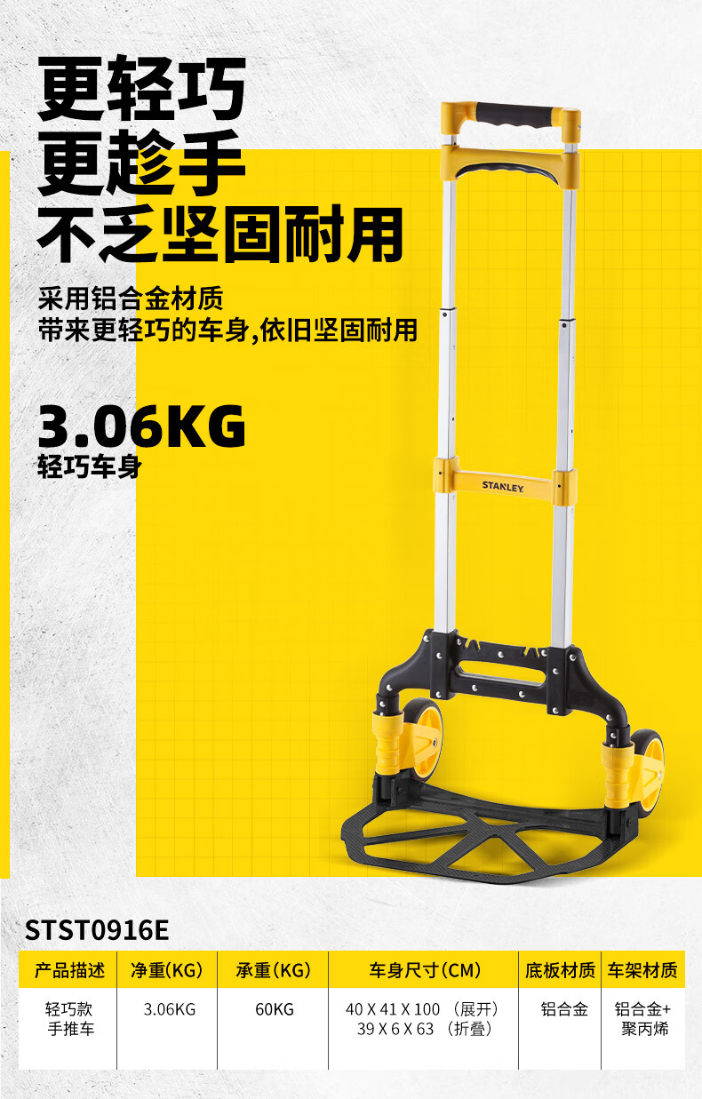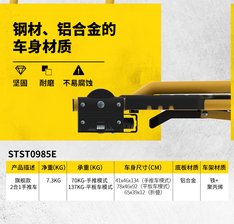 Stanley Tool Trolley Folding Toolbox Hand Trolley Home Mobile Cargo Handling Trolley Flat Cart 2-in-1 Foldable Trolley STST0985