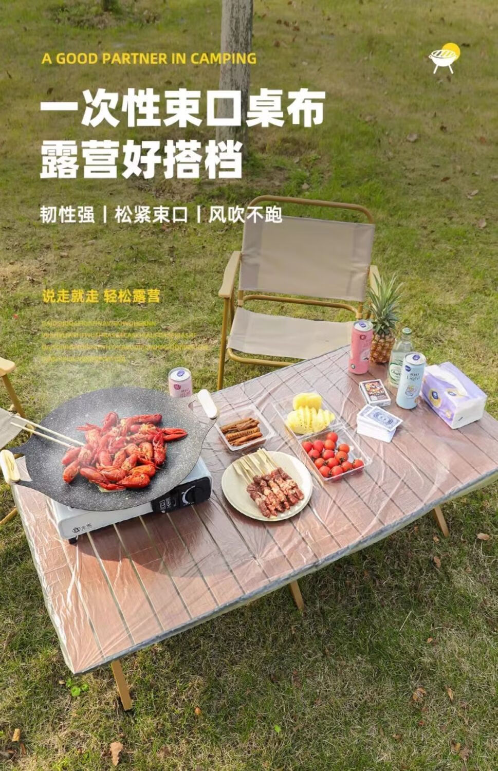 Ye Yu outdoor camping disposable tablecloth camper van egg roll table bundle mouth thickened picnic elastic mouth rectangular picnic mat disposable 1 large pack of 10 sheets windproof and oil-proof丨 thick length 122 cm + width 62 cm within elastic