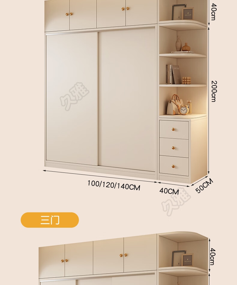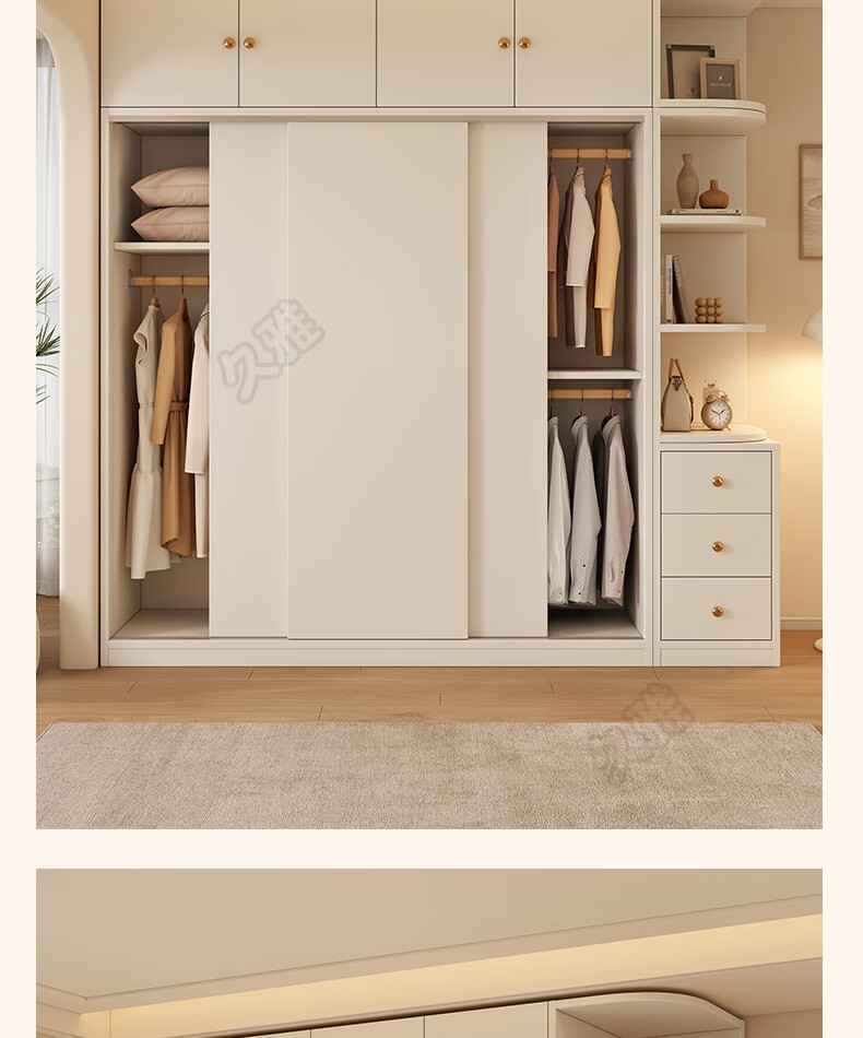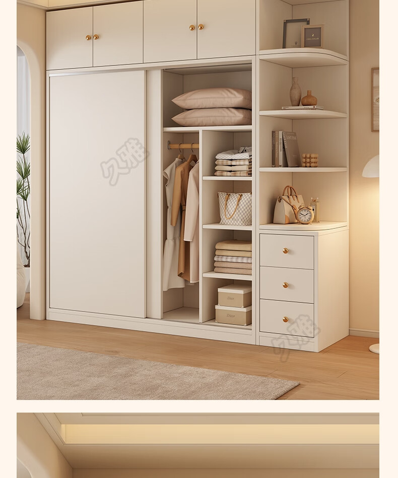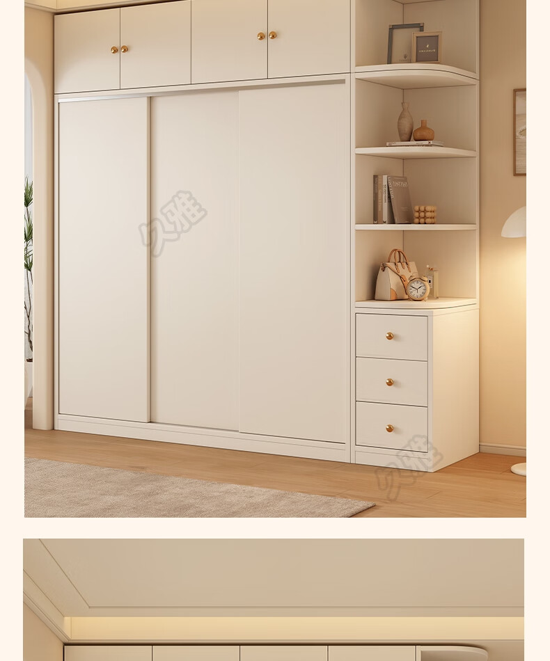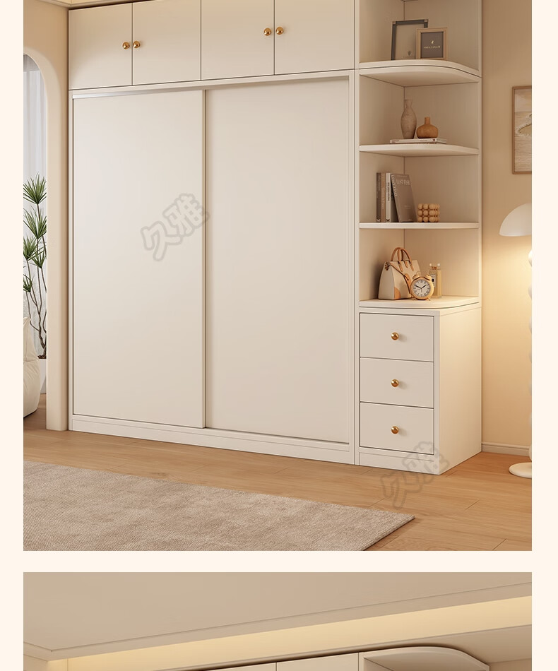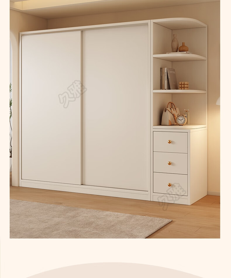 Jiuya package installation wardrobe bedroom home sliding door cream style combination cabinet practical wardrobe wooden large wardrobe 100*200*50 main cabinet