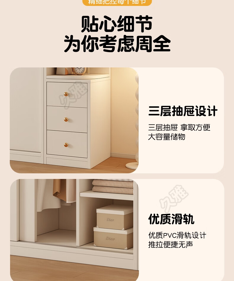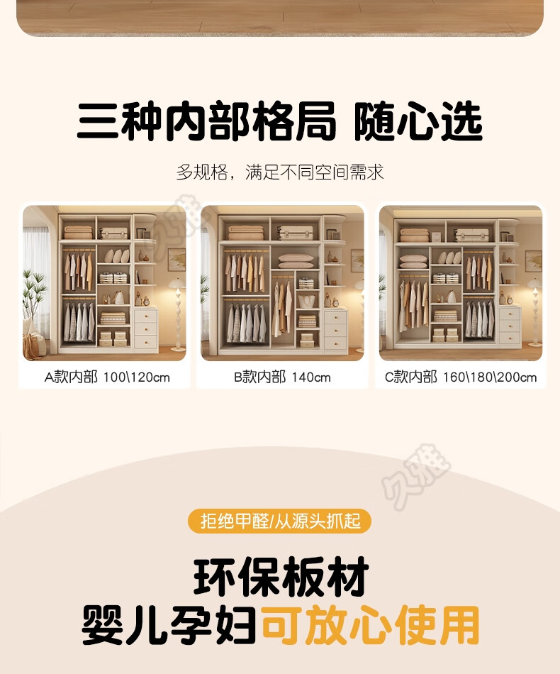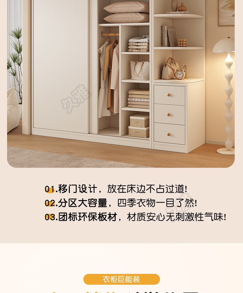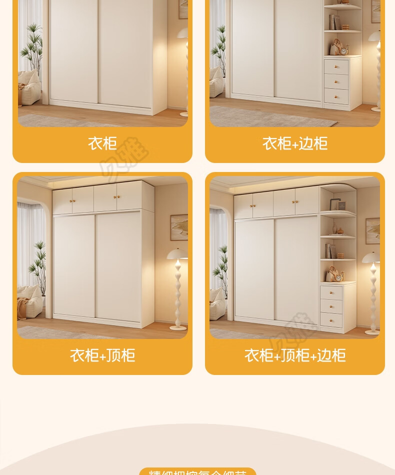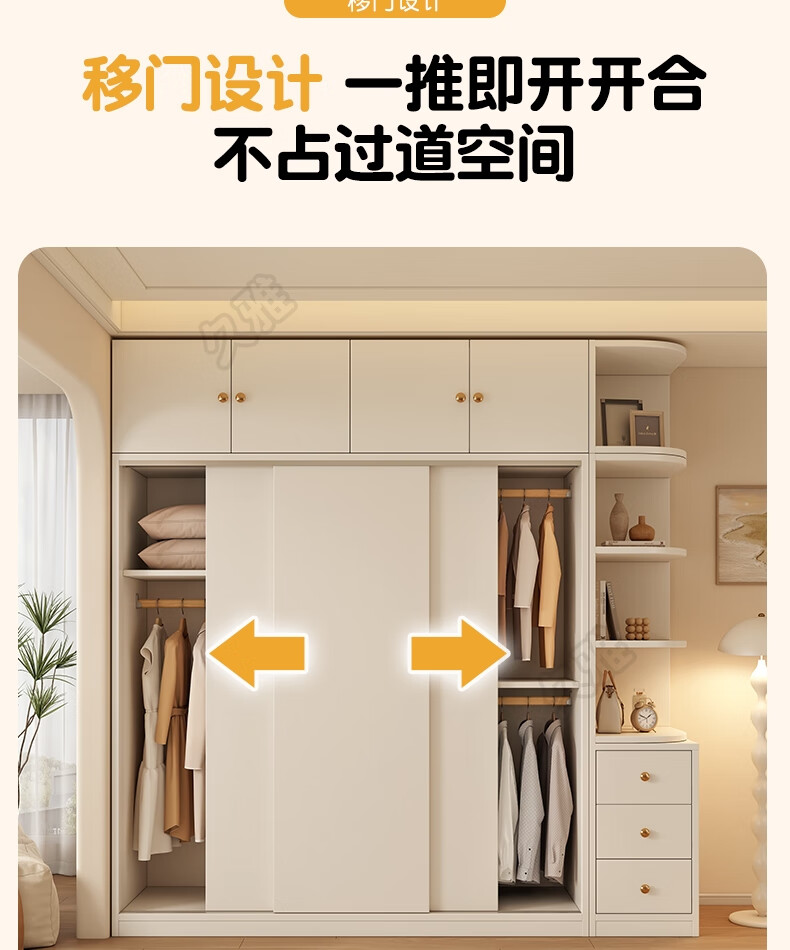 Jiuya package installation wardrobe bedroom home sliding door cream style combination cabinet practical wardrobe wooden large wardrobe 100*200*50 main cabinet