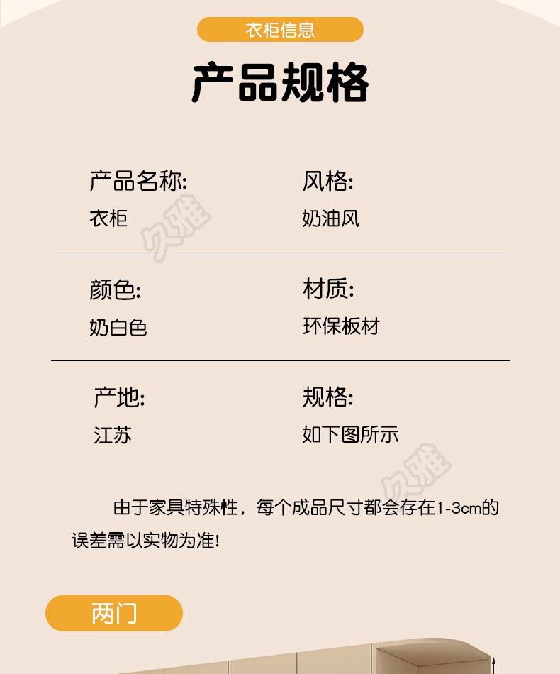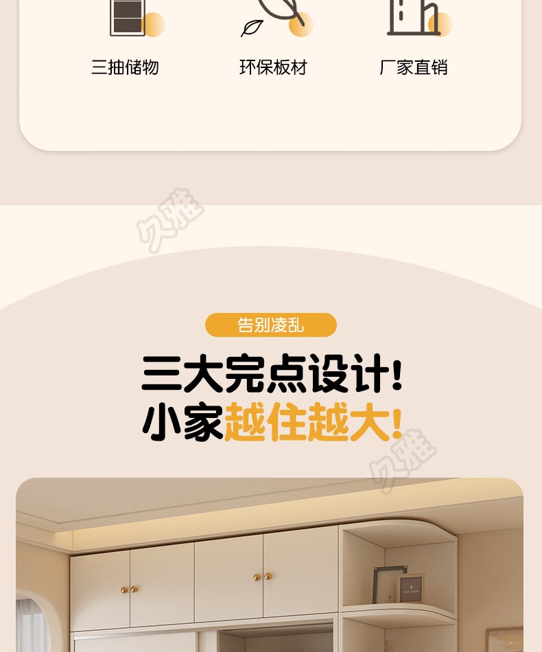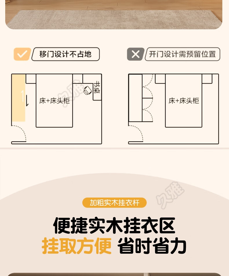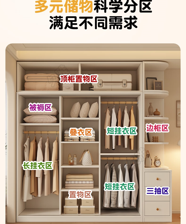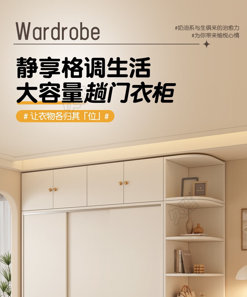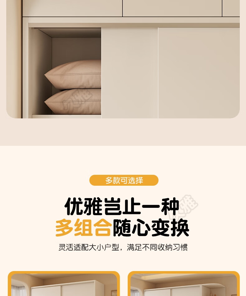 Jiuya package installation wardrobe bedroom home sliding door cream style combination cabinet practical wardrobe wooden large wardrobe 100*200*50 main cabinet