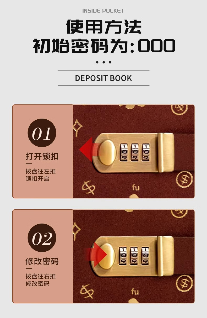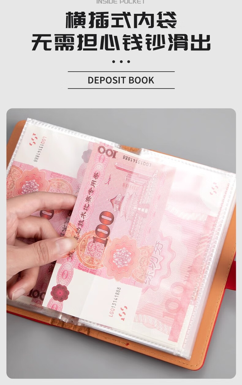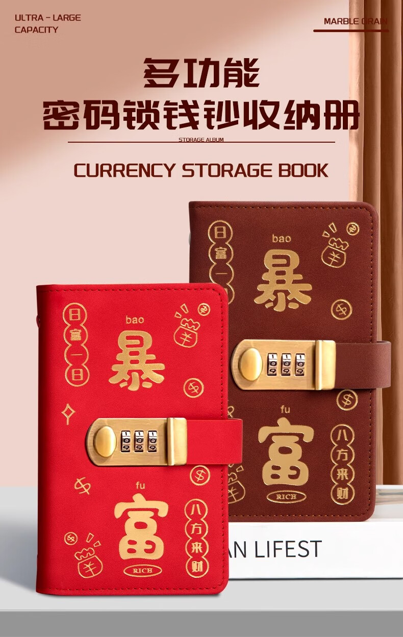 MAIWEINI2025 New Wallet Women's Money Clip Cash RMB Storage Booklet 200 Universal Password Lock Banknotes Password Lock Rich Red - 4 per bag Double-layer thread thickening