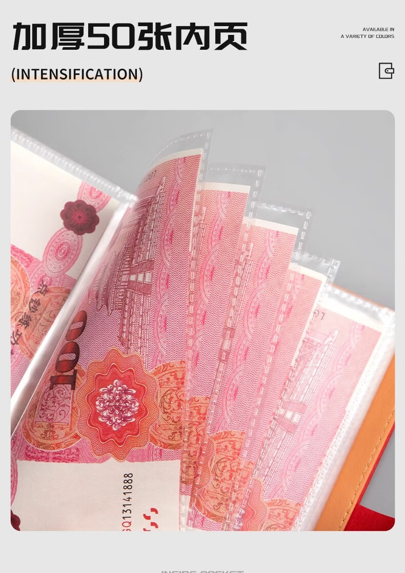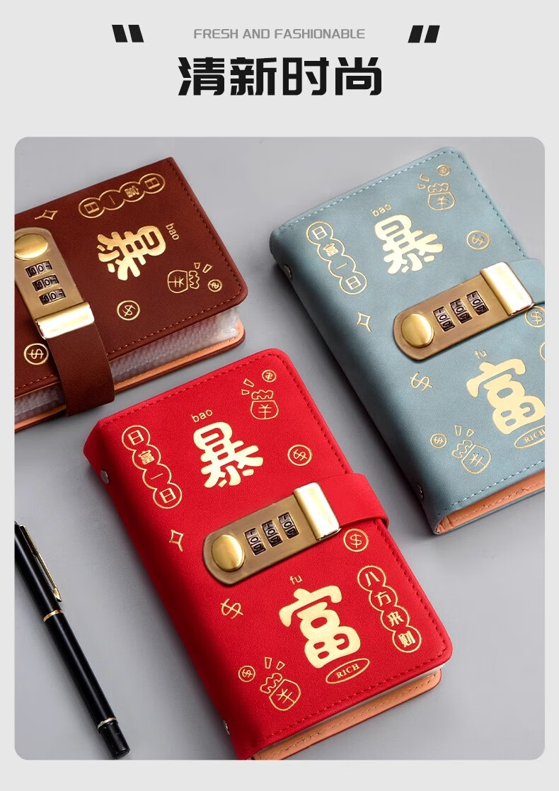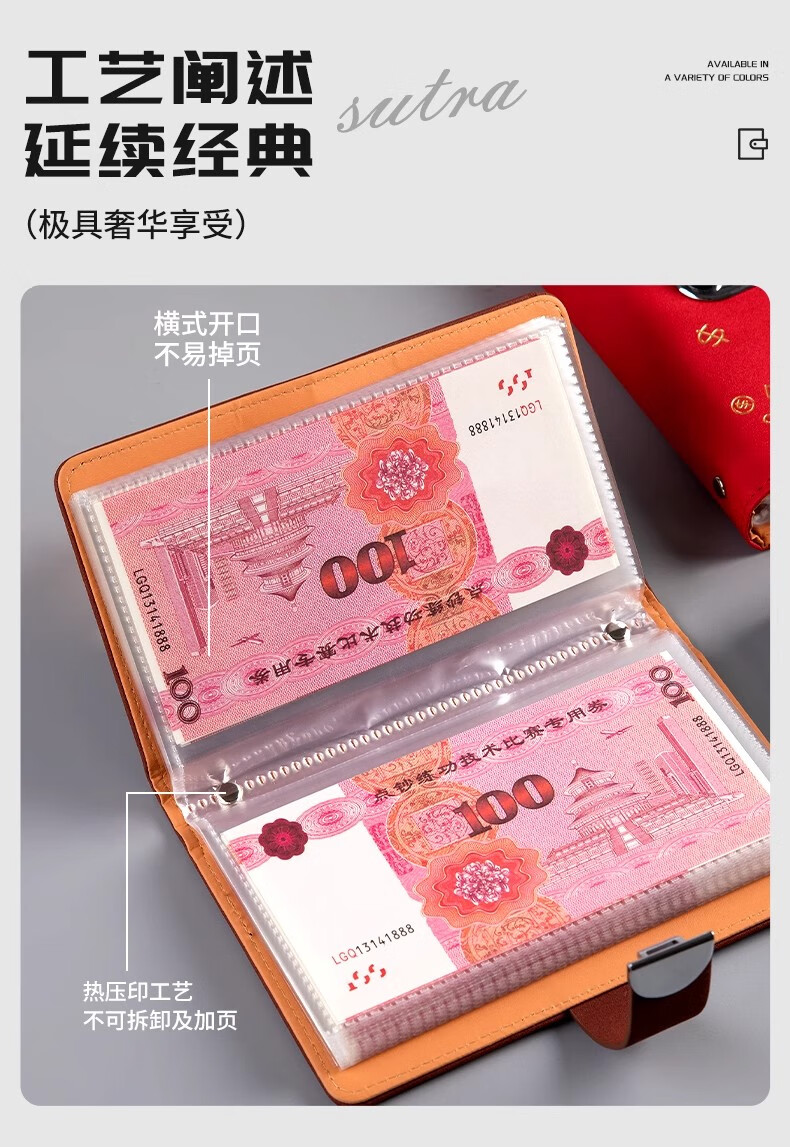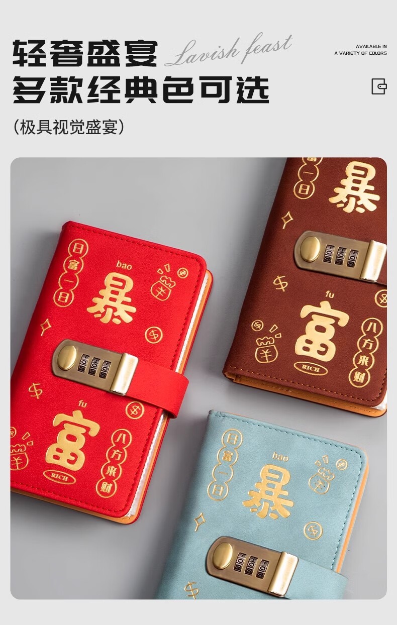MAIWEINI2025 New Wallet Women's Money Clip Cash RMB Storage Booklet 200 Universal Password Lock Banknotes Password Lock Rich Red - 4 per bag Double-layer thread thickening