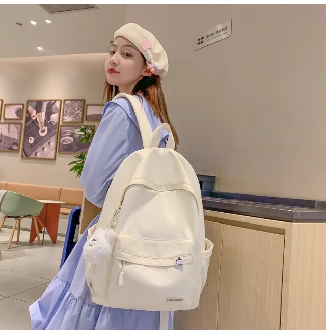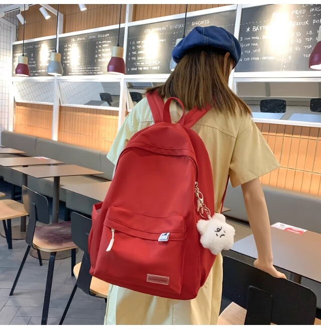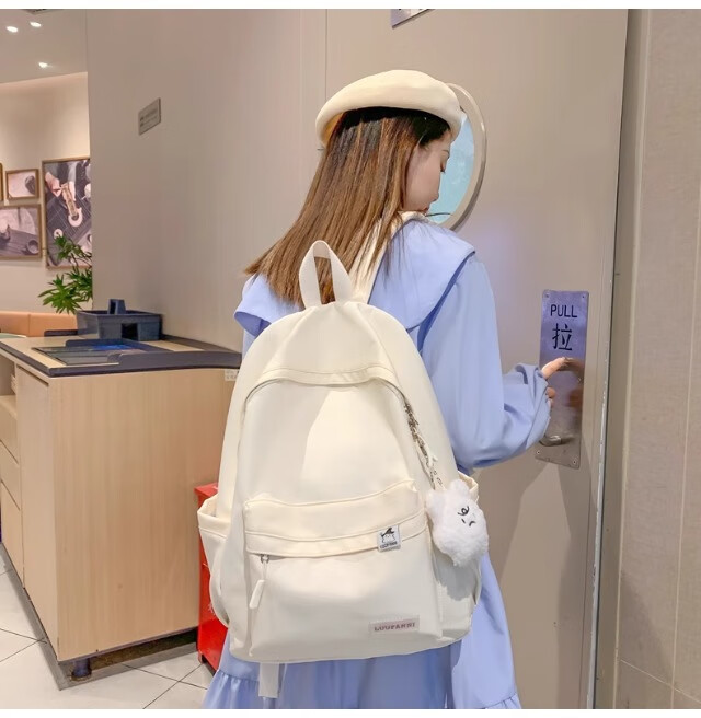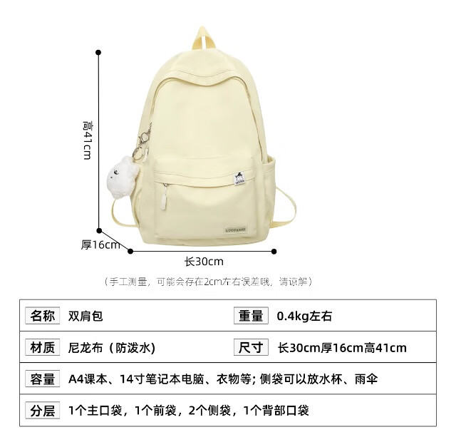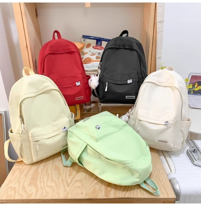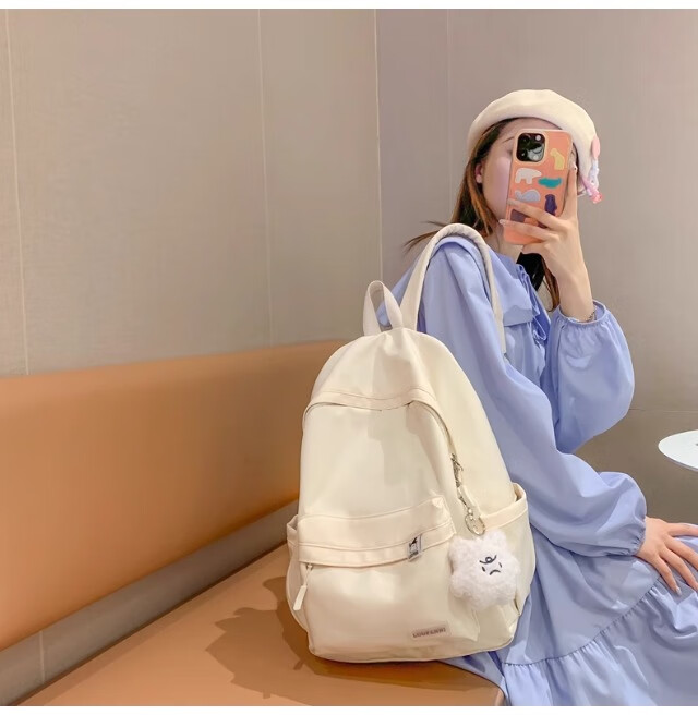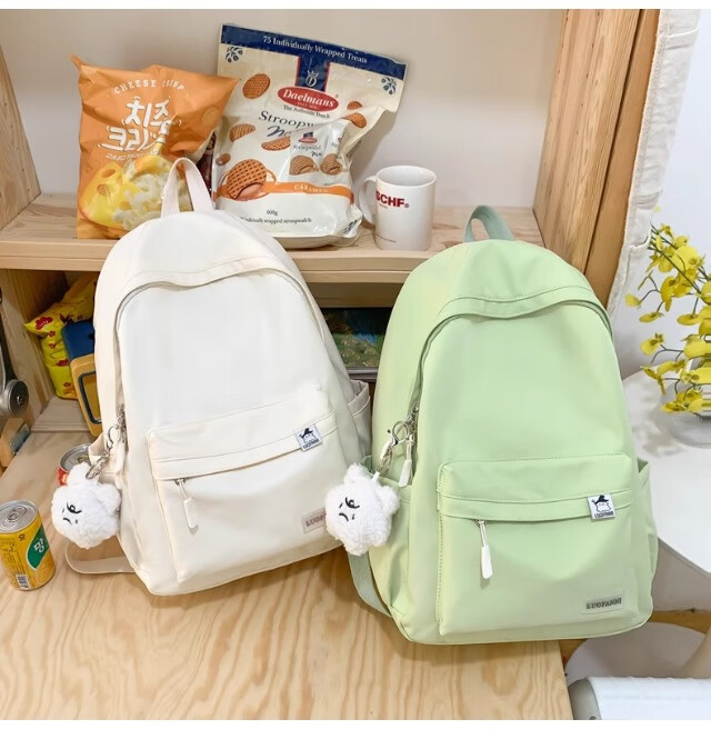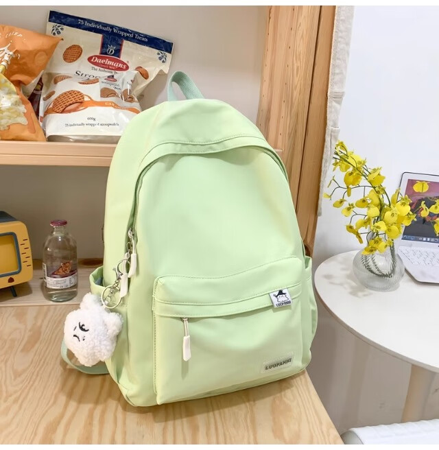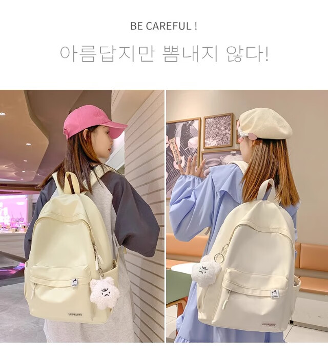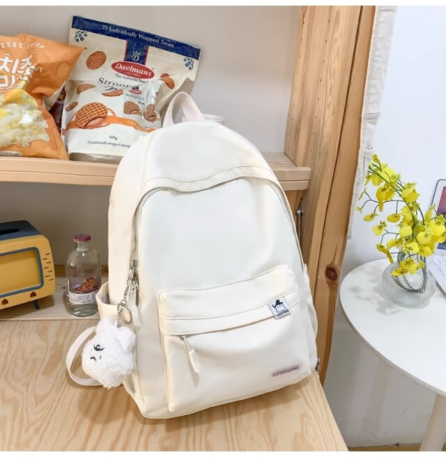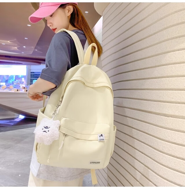 School bag for junior high school girls, good-looking ins large capacity backpack, high school student backpack, waterproof, stain-resistant, lightweight and simple, yellow, shipped from Jingdong warehouse, next day delivery, comfortable shoulder straps/inner compartment/cute pendant