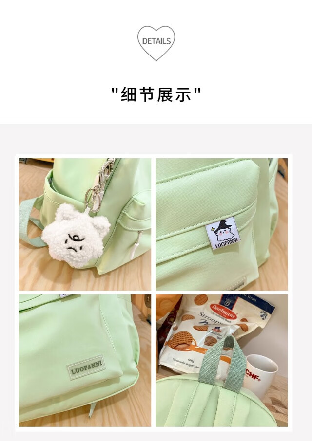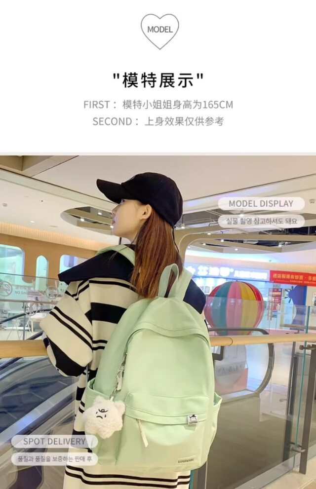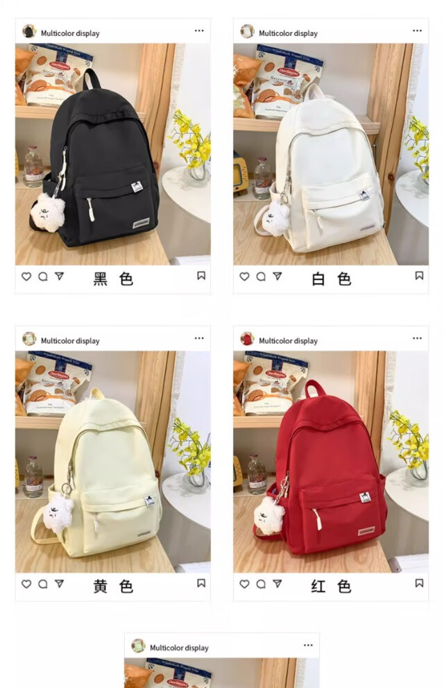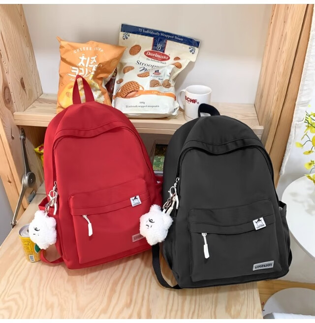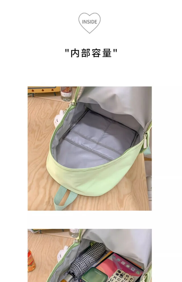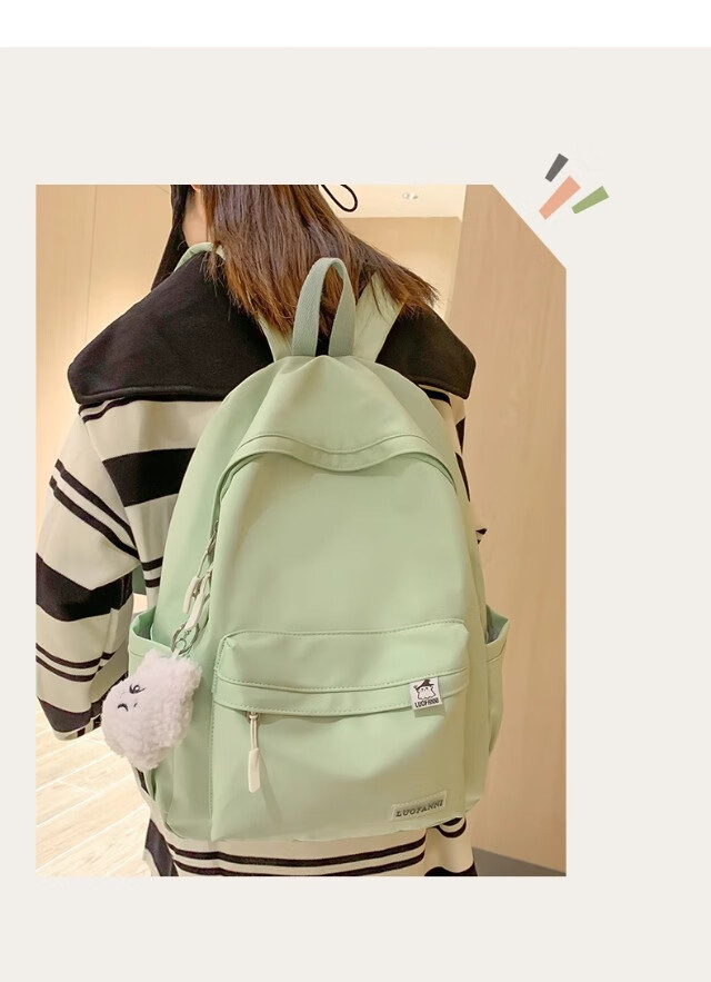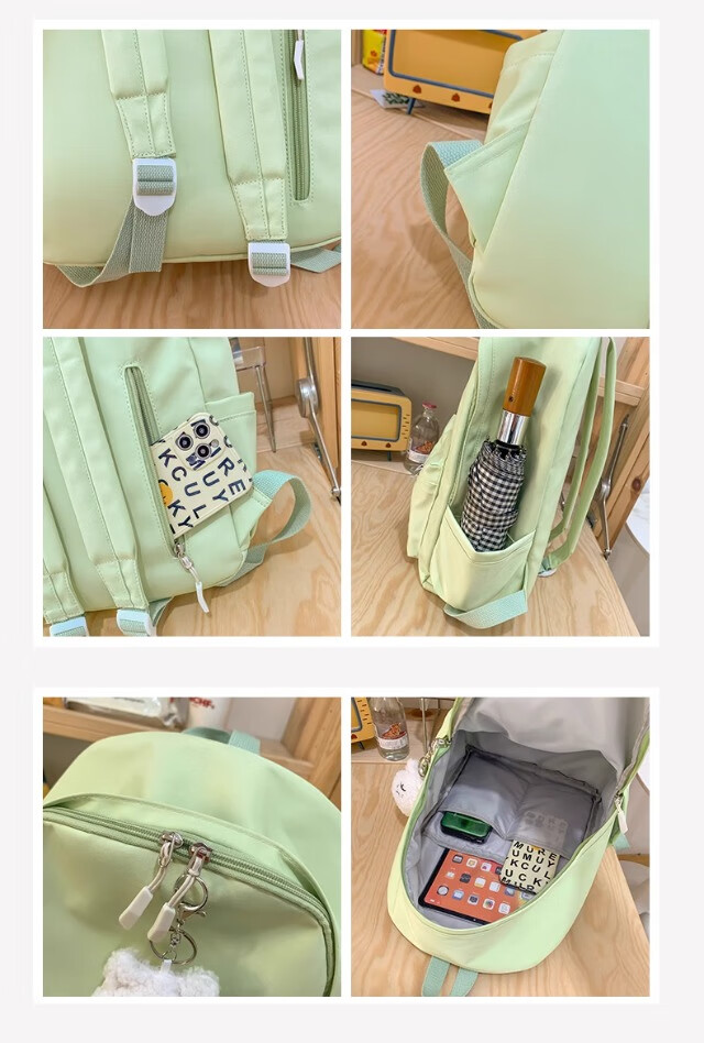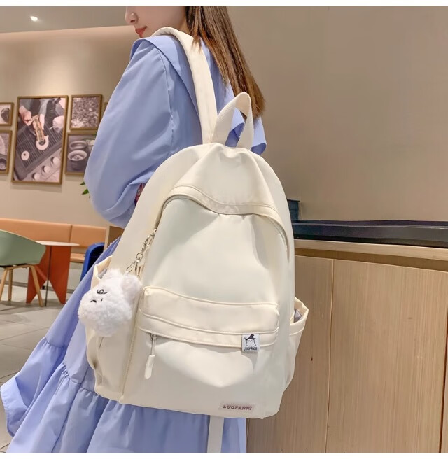 School bag for junior high school girls, good-looking ins large capacity backpack, high school student backpack, waterproof, stain-resistant, lightweight and simple, yellow, shipped from Jingdong warehouse, next day delivery, comfortable shoulder straps/inner compartment/cute pendant