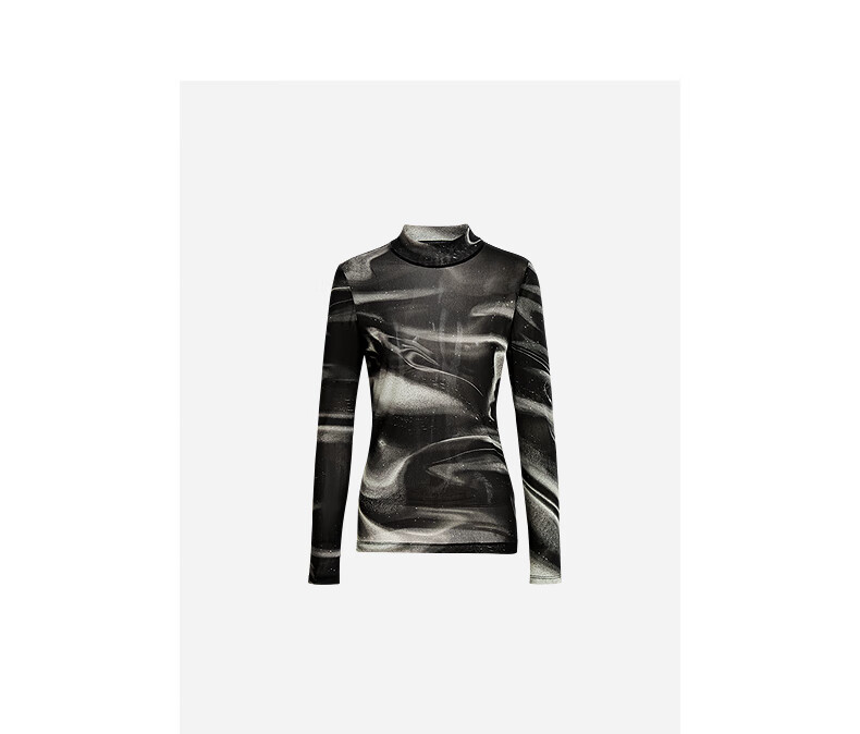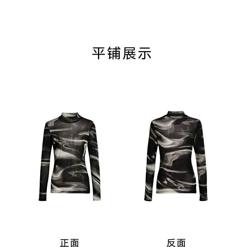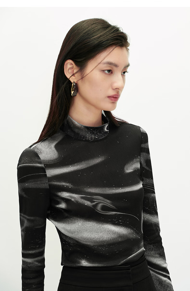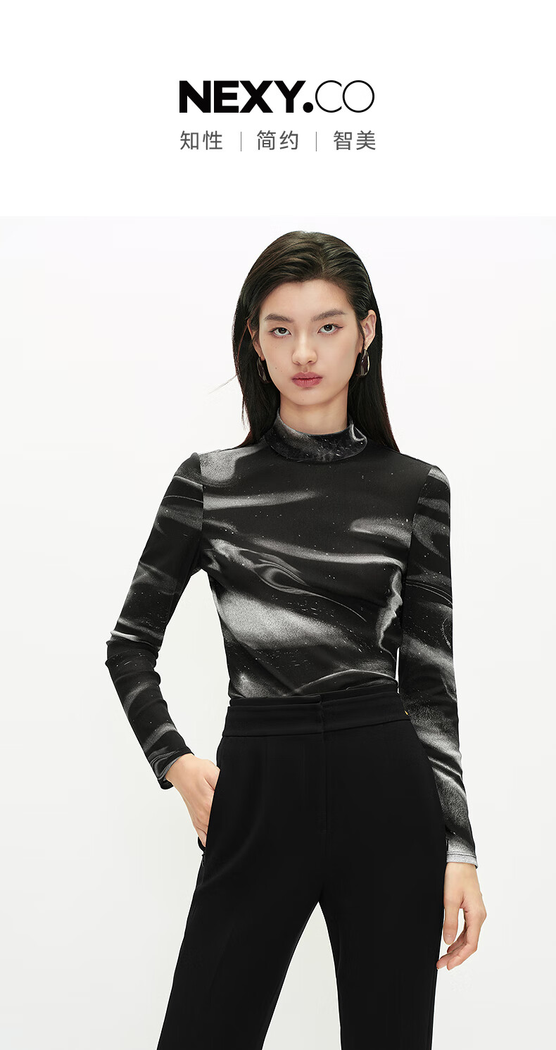 NEXY.CO/NEXY 2025 new autumn style temperament stand-up collar slim carved printed two-wear pullover long-sleeved top for women black L