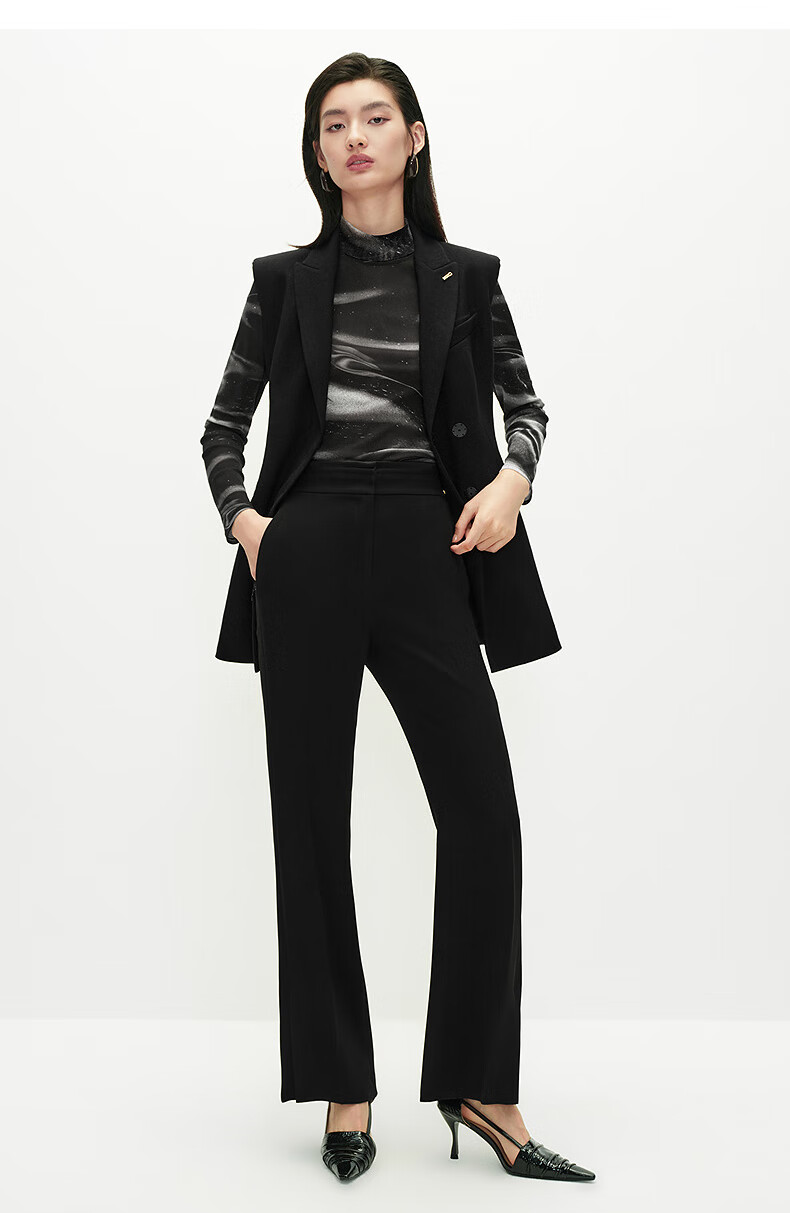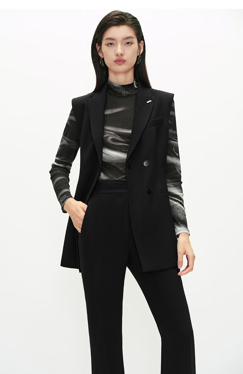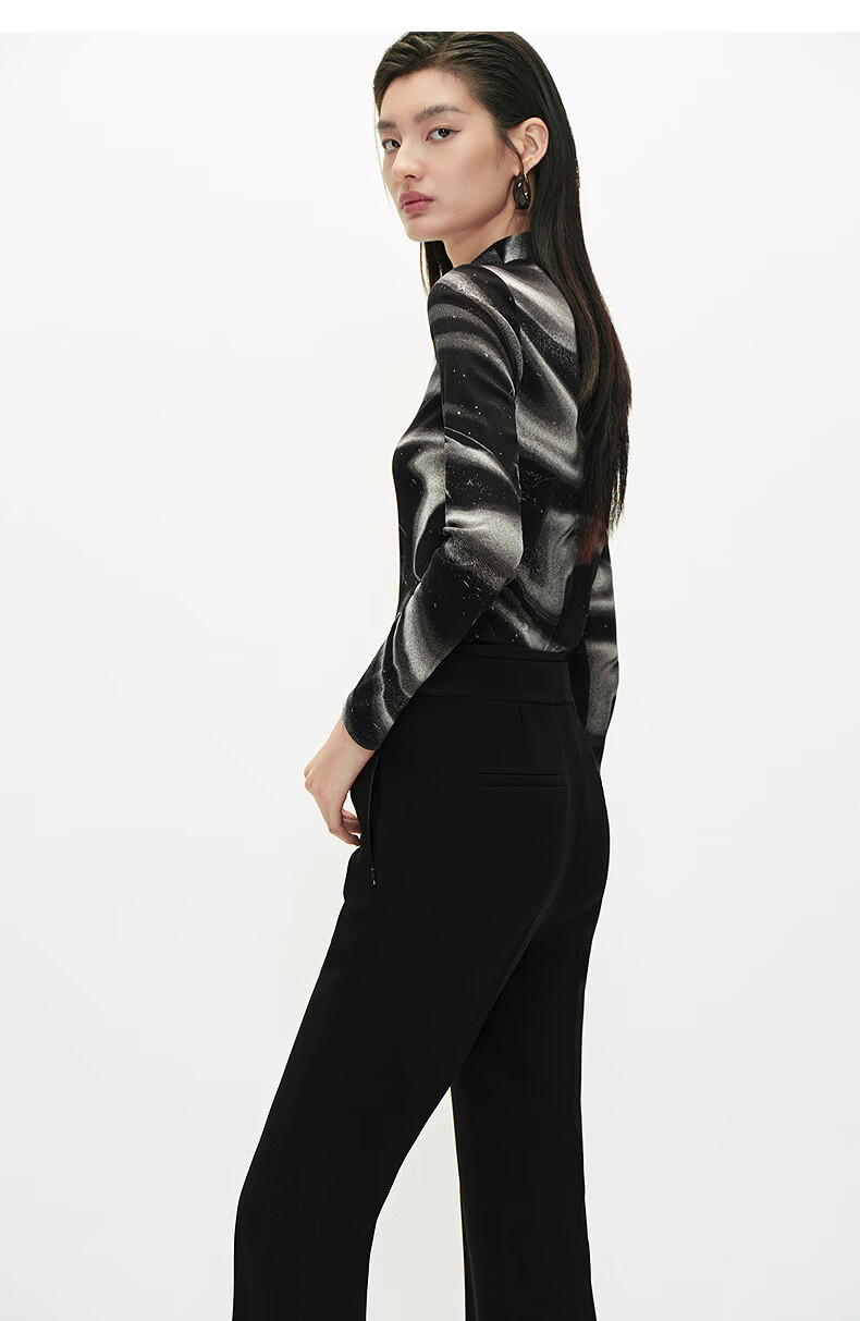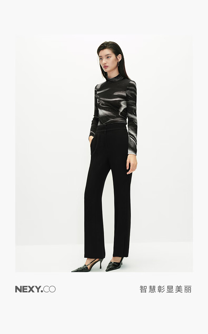 NEXY.CO/NEXY 2025 new autumn style temperament stand-up collar slim carved printed two-wear pullover long-sleeved top for women black L