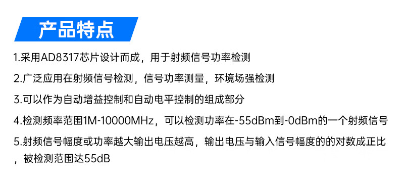 AD8317 logarithmic detector RF module power meter 1M-10000MHz RF signal power detection Default