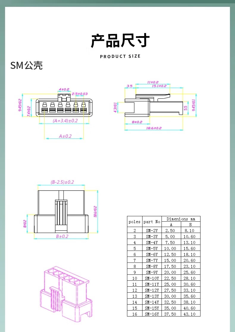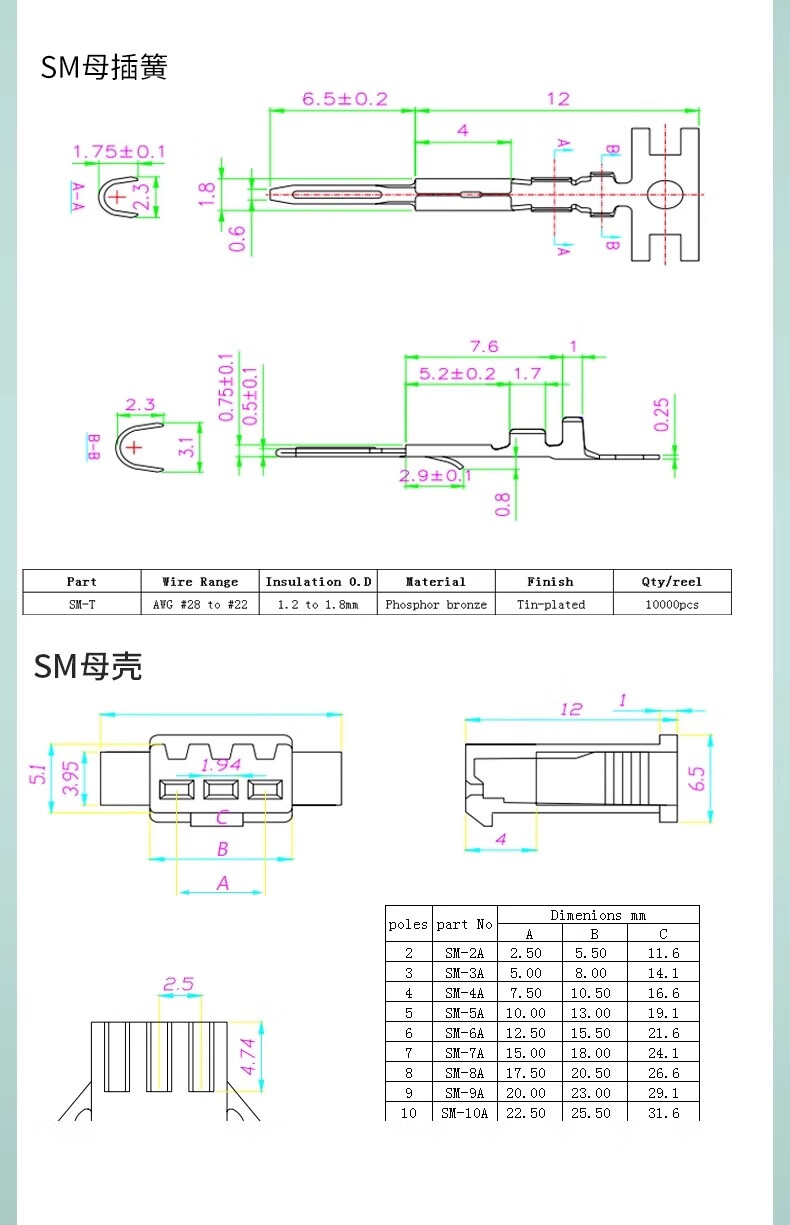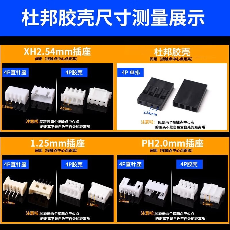 Zejie SM2.54mm DuPont plastic shell male and female shell socket plug plug locking connector 2P/3/4/5/6/7/8P 4P female shell (50 pieces)