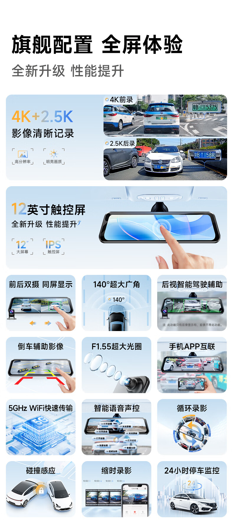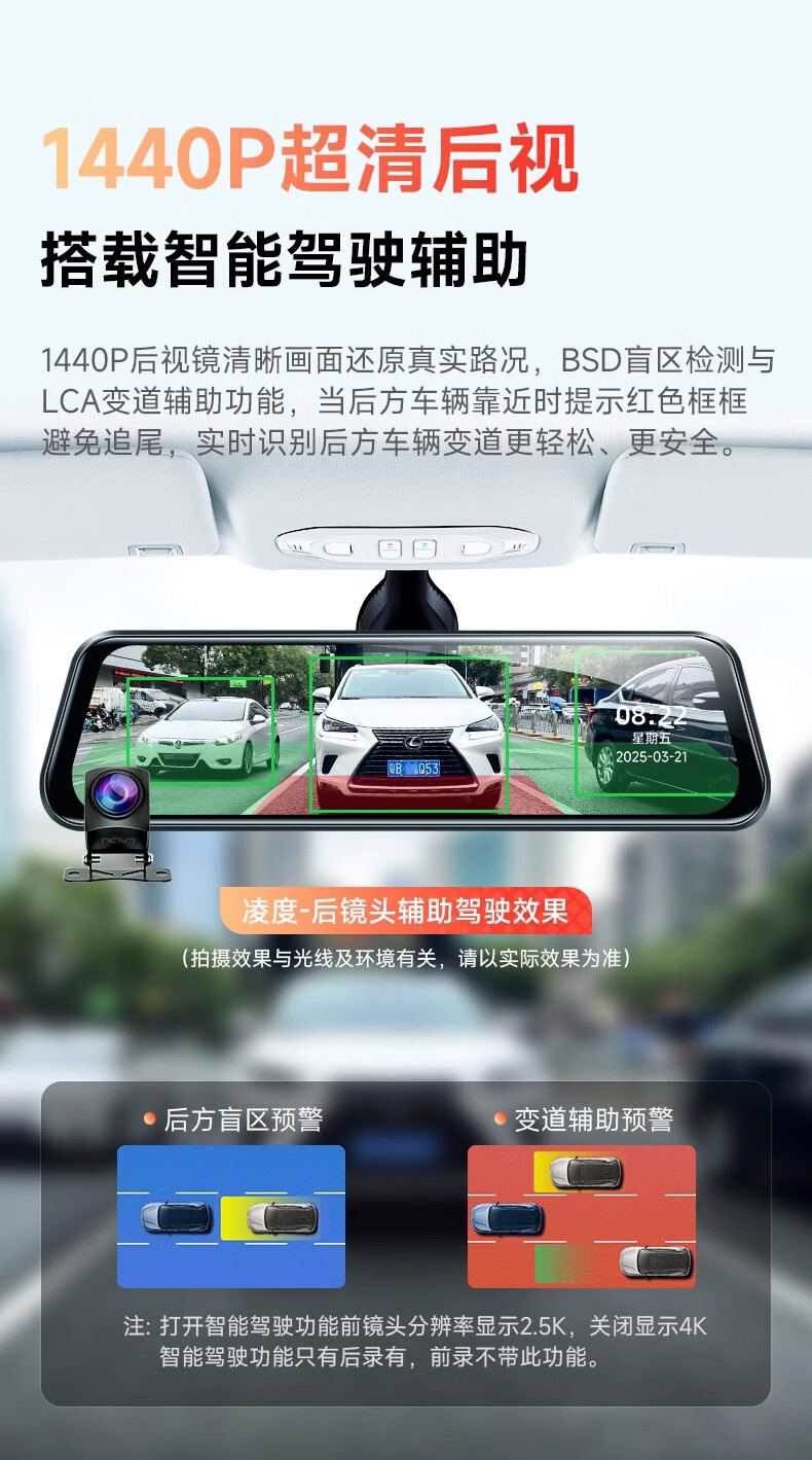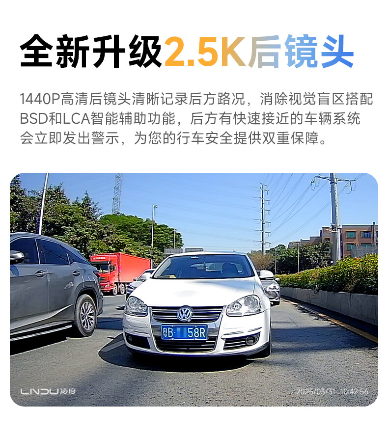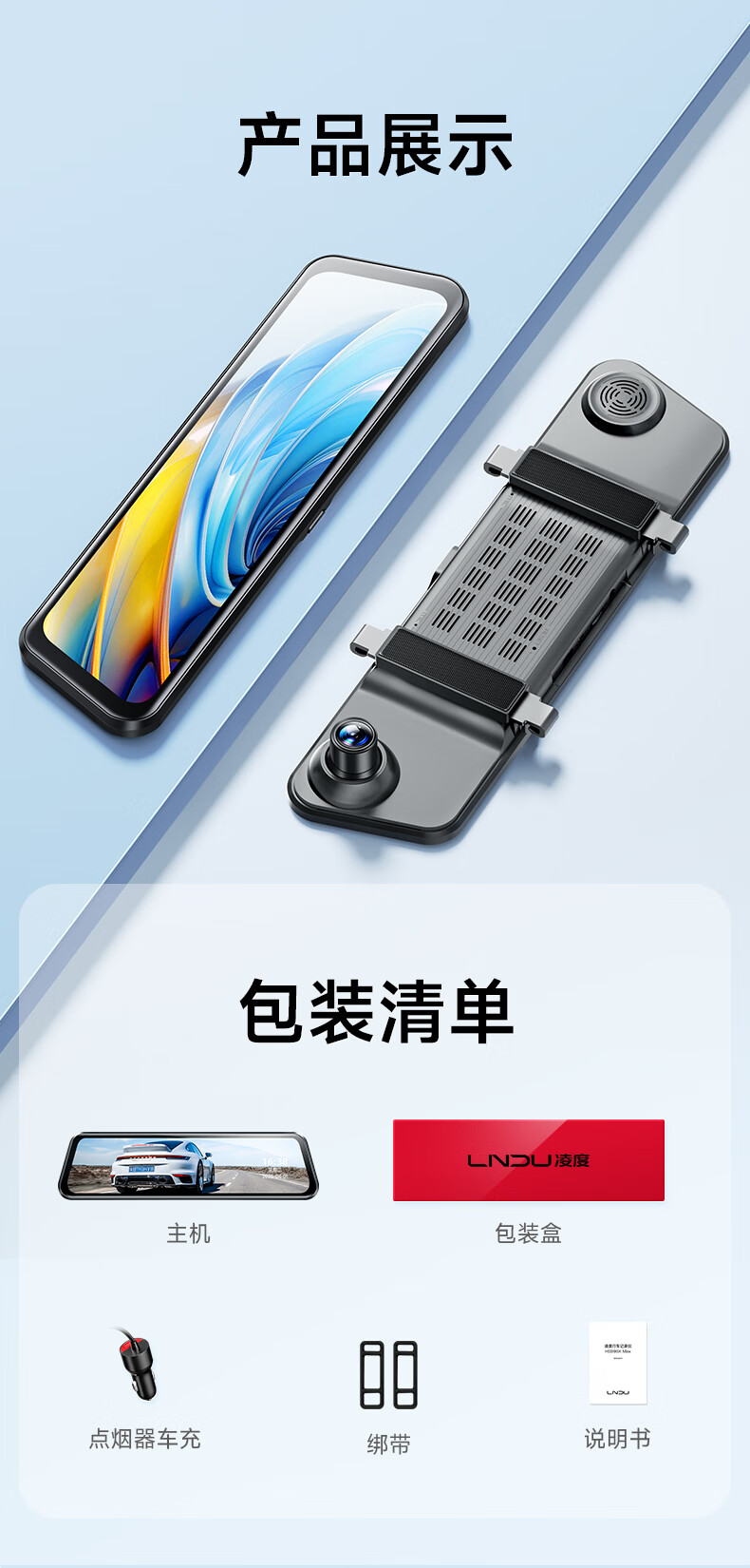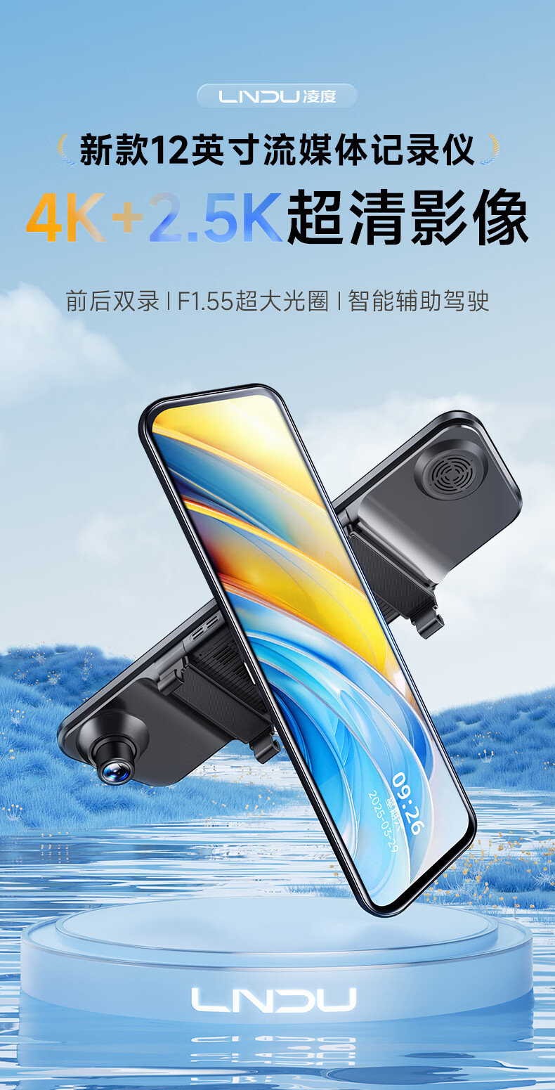 LNDU Lingdu driving recorder 2026 new 4K ultra-high-definition front and rear dual recording car AI driving streaming without wiring, standard configuration 10-inch 4K ultra-clear APP interconnection + 64G card, dual lenses (front and rear dual recording/reversing image)