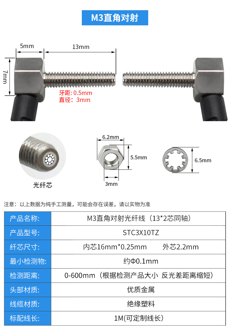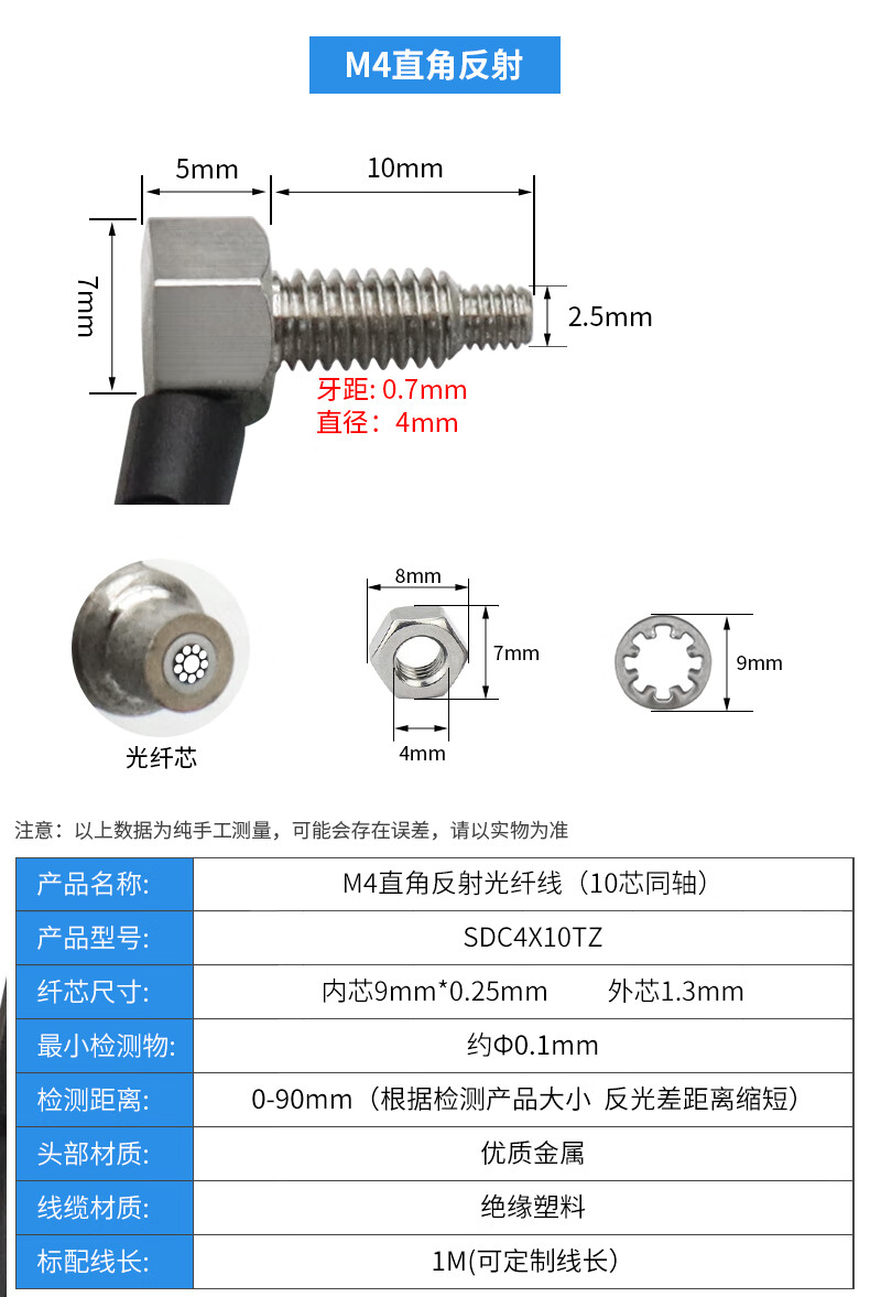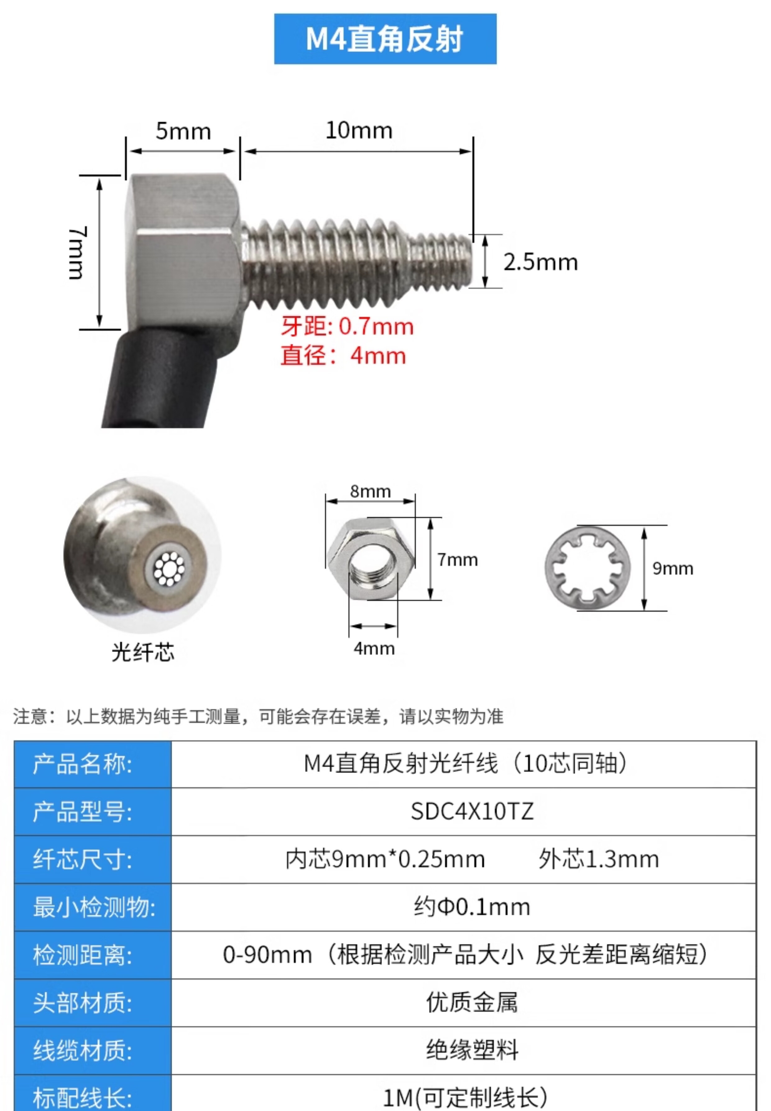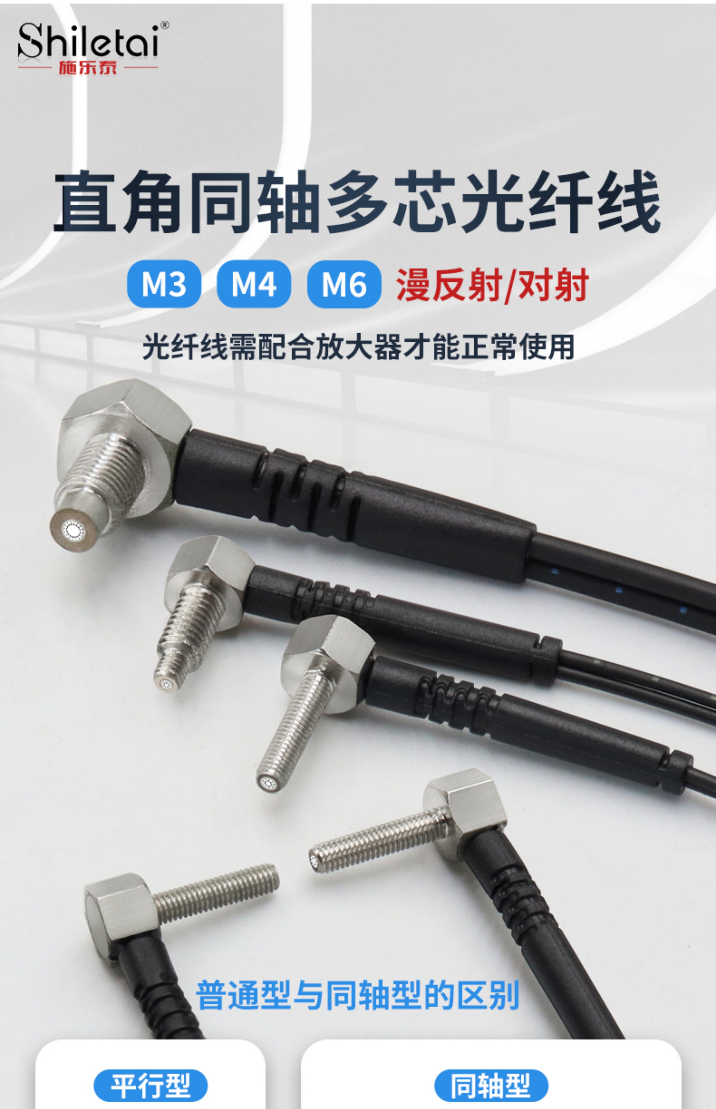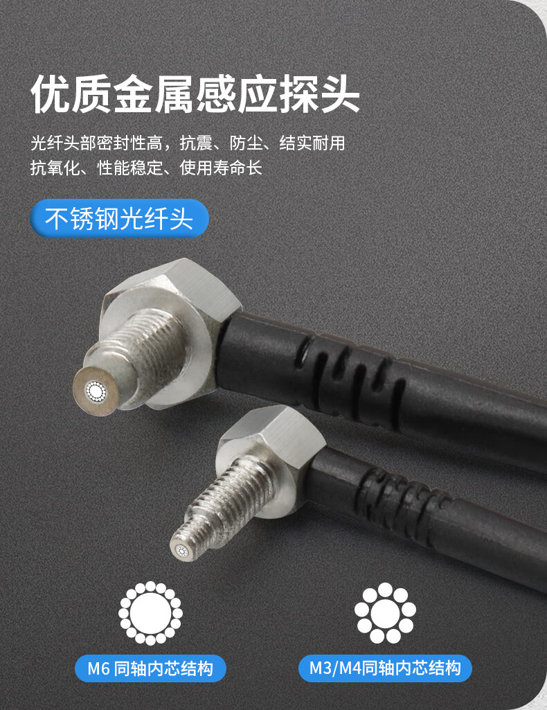 Yue Changsheng coaxial multi-core M3M4M6 diffuse reflection fiber right-angle fiber amplifier probe sensor 35TZ Keyence M3 right-angle reflection coaxial line length 2 meters
