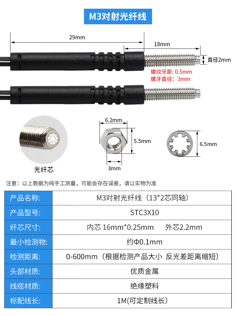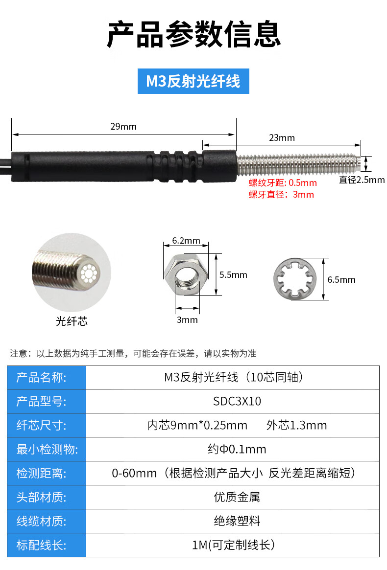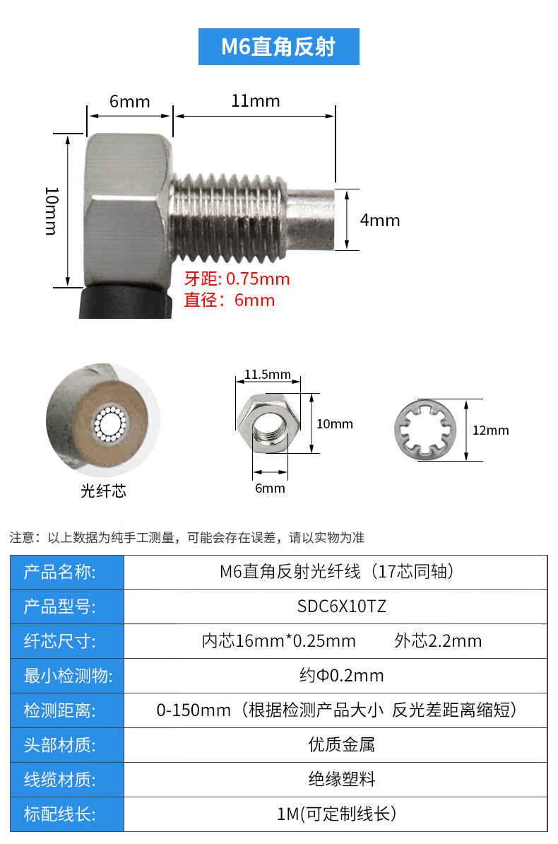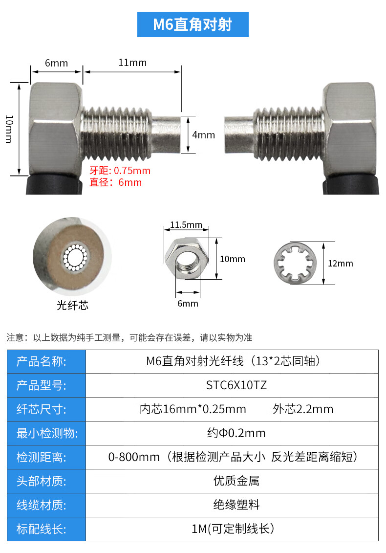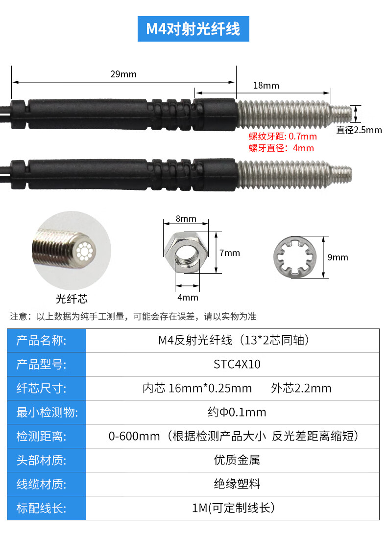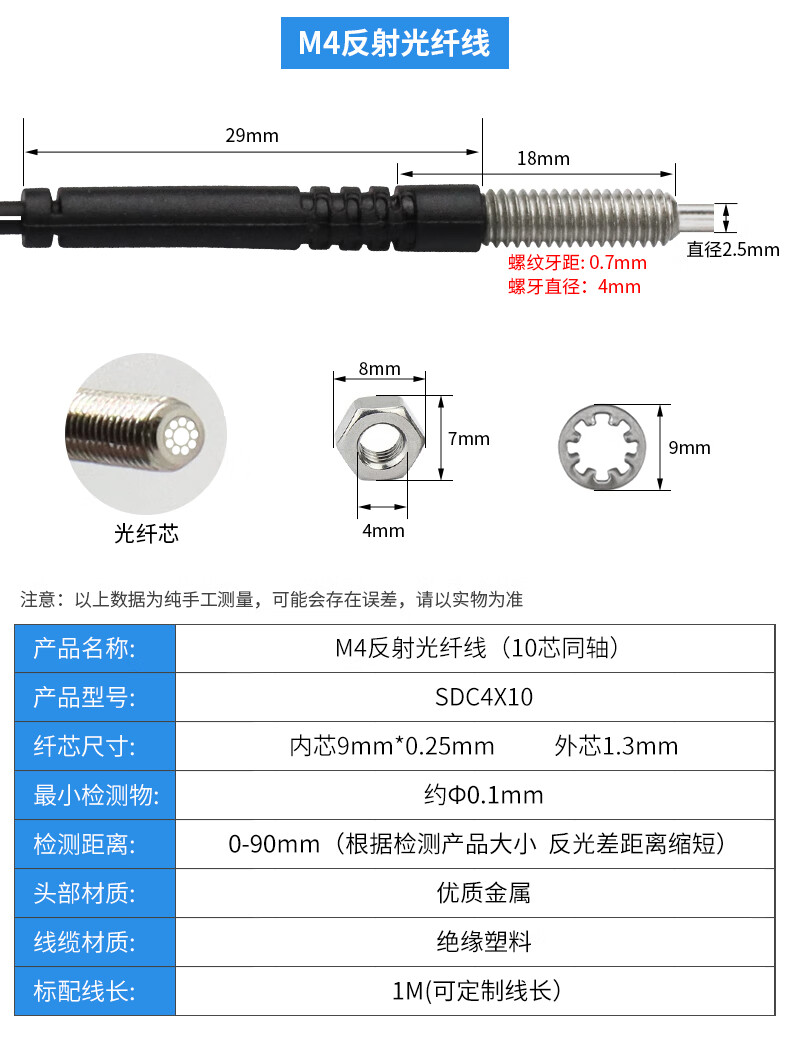 Yue Changsheng coaxial multi-core M3M4M6 diffuse reflection fiber right-angle fiber amplifier probe sensor 35TZ Keyence M3 right-angle reflection coaxial line length 2 meters