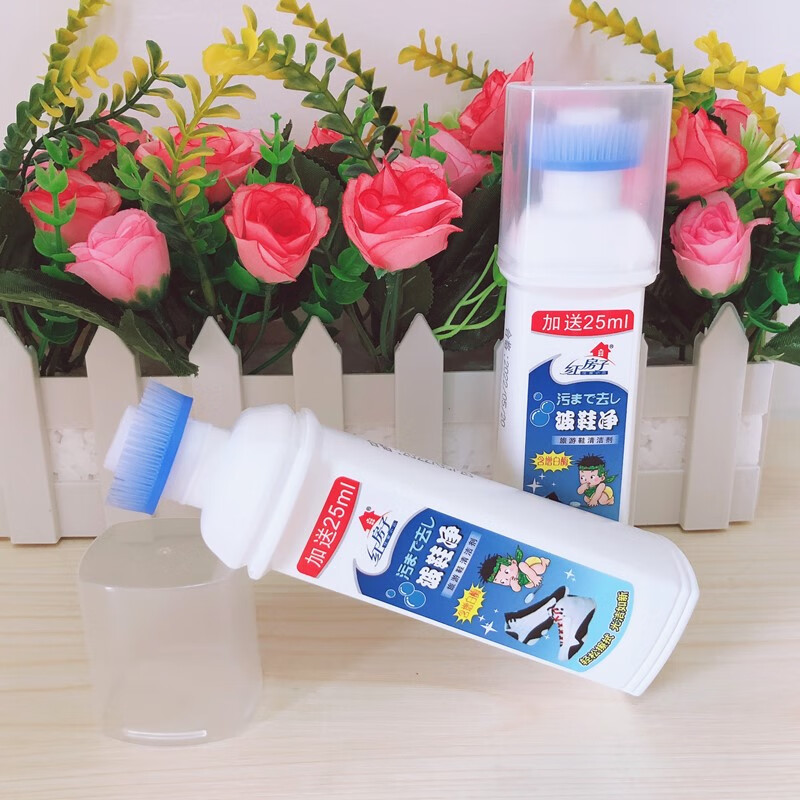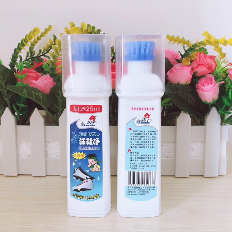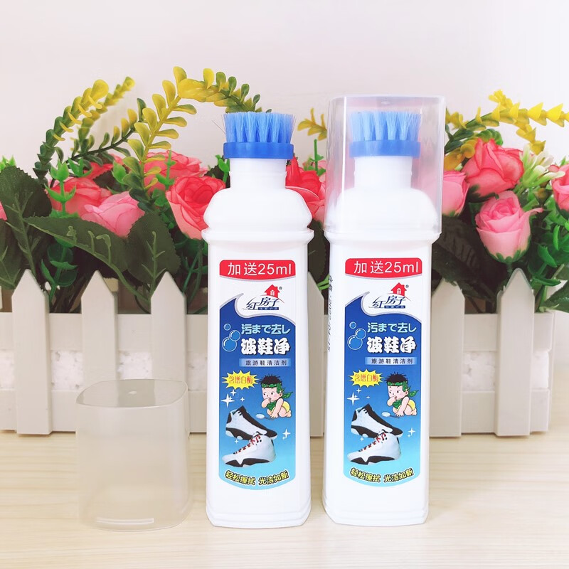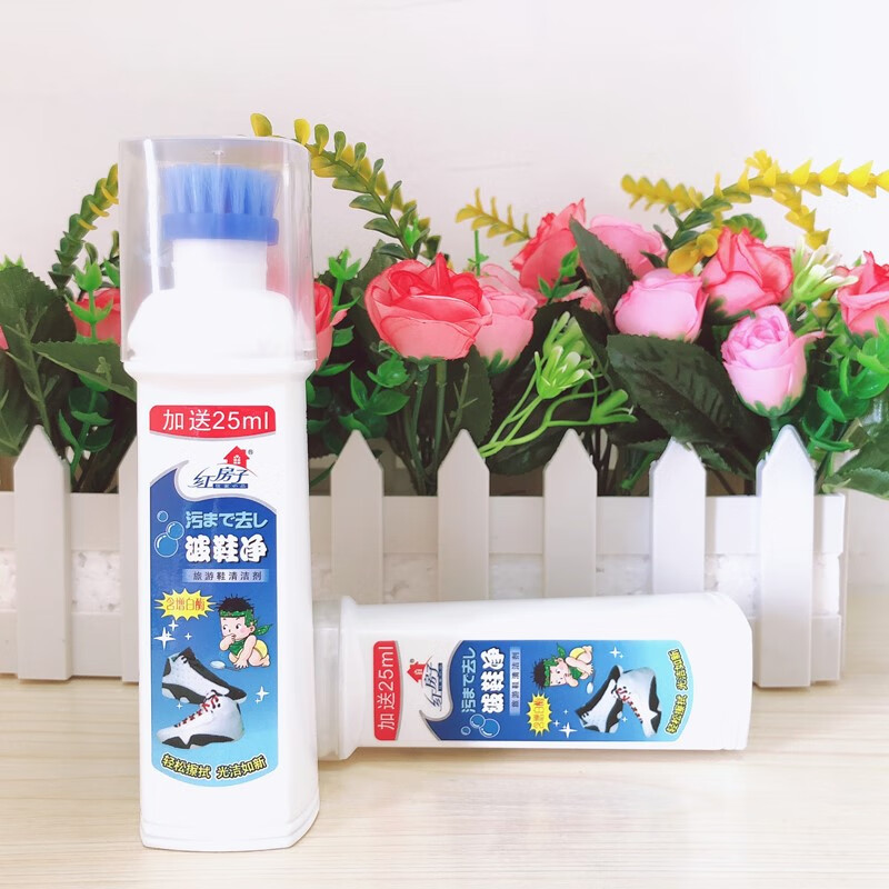 Little White Shoe Cleaner Red House Sneaker Cleaner Sports Shoe Travel Shoe Cleaning Artifact Shoe Edge Detergent Cleaning Agent Blue Brush 2 Bottles Bring 2 Bottles Send 4 Bottles