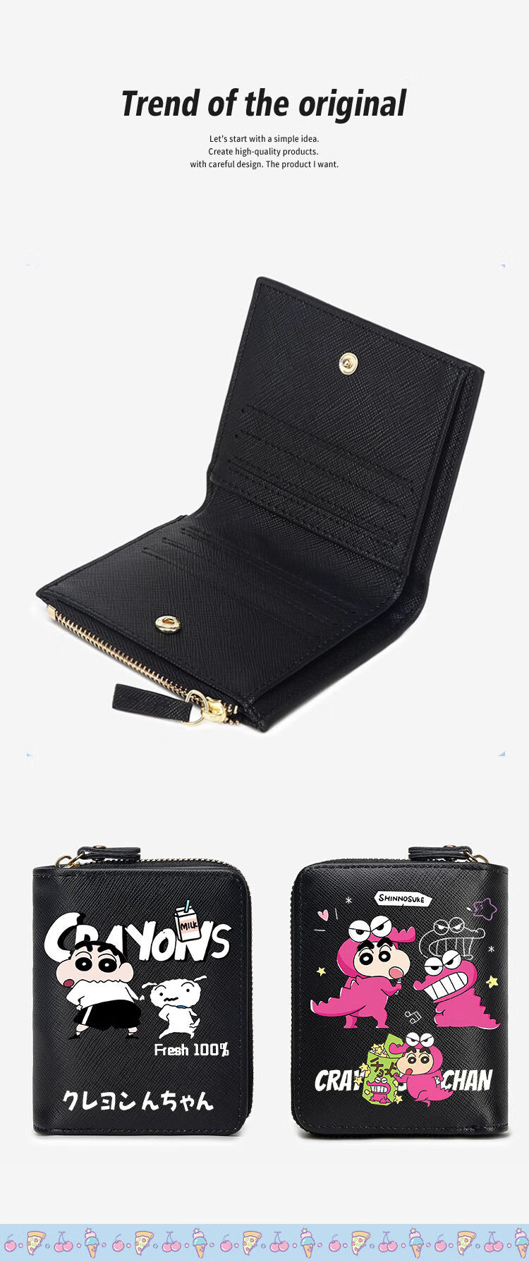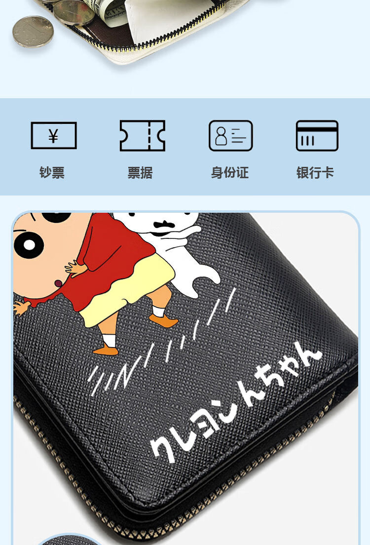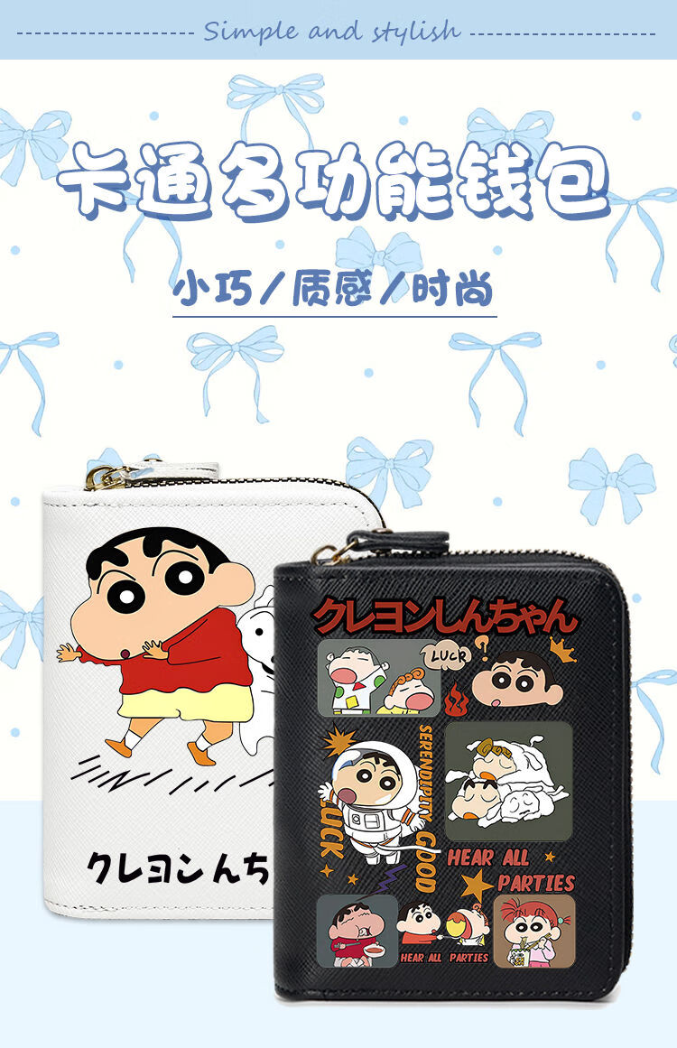 Crayon Shin-chan Children's Coin Purse Boys and Girls Student Wallet Card Holder Two-in-One Multi-Function Short Style 2025 New Black E Style