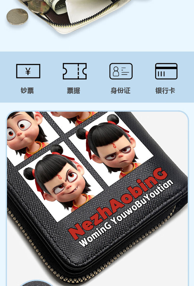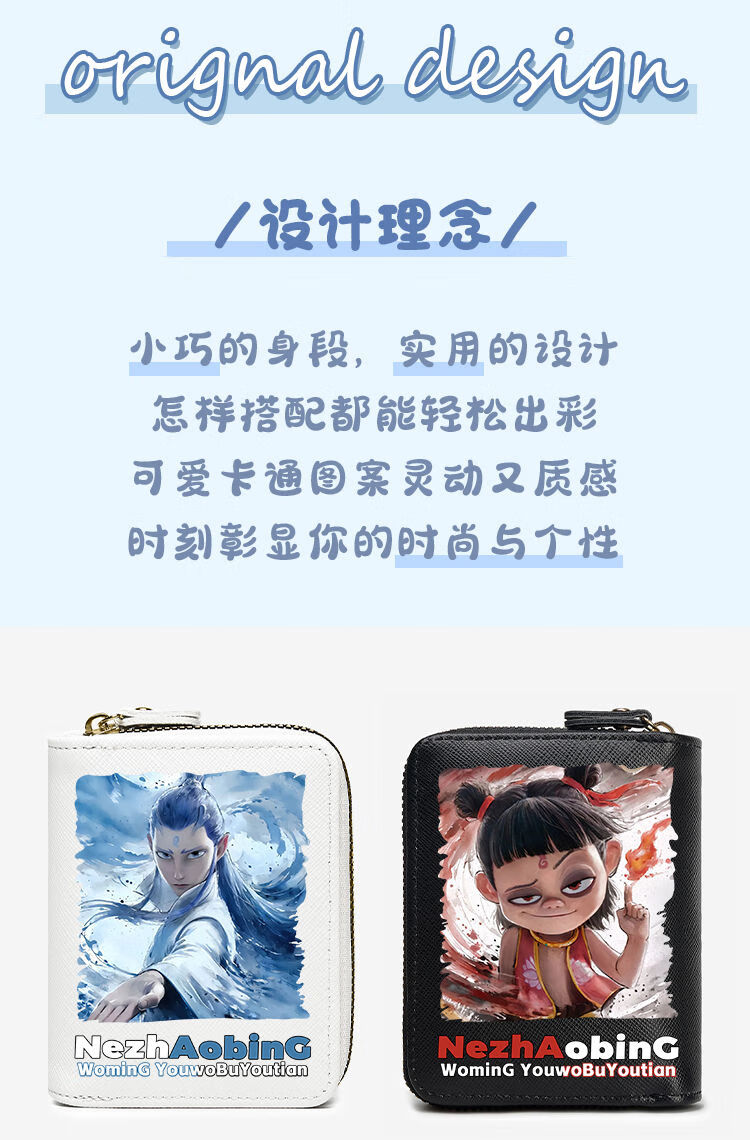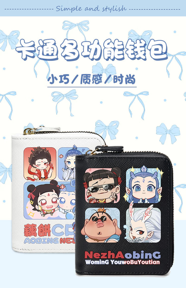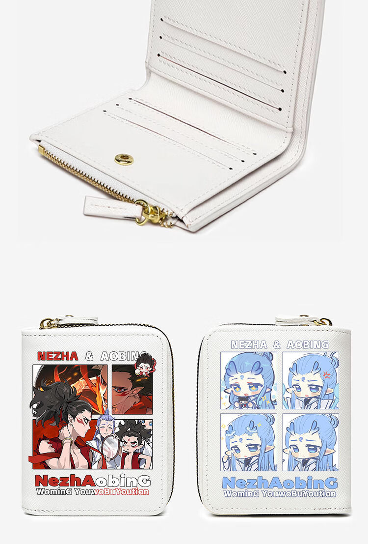2025 New Nezha Ao Bing co-branded peripheral coin purse large capacity men's and women's card holder wallet short wallet white A