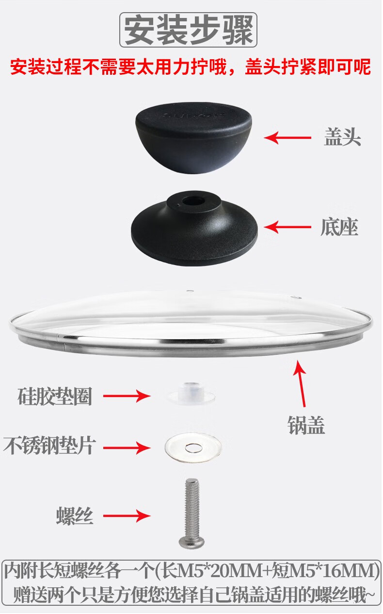 Supor Marriott Supor pot lid universal handle top bead stainless steel wok soup milk glass lid top grab handle pot lid head cap one large stainless steel model