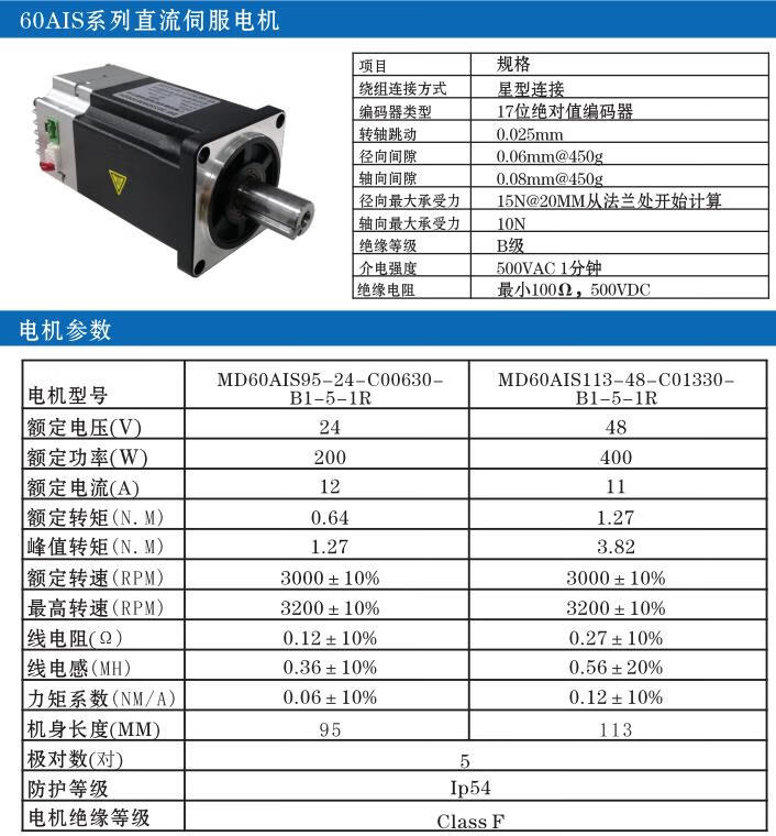 Yue Changsheng 60/80 DC servo motor set 400W750W1KW integrated servo motor joint 485 control 57-32W-1200 turn 24V vertical brake