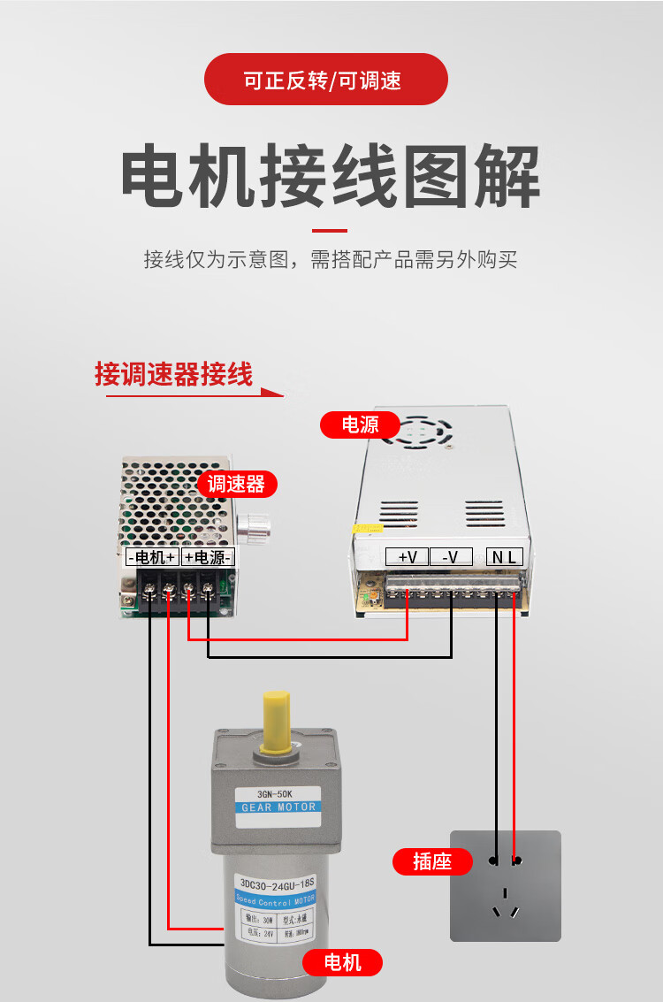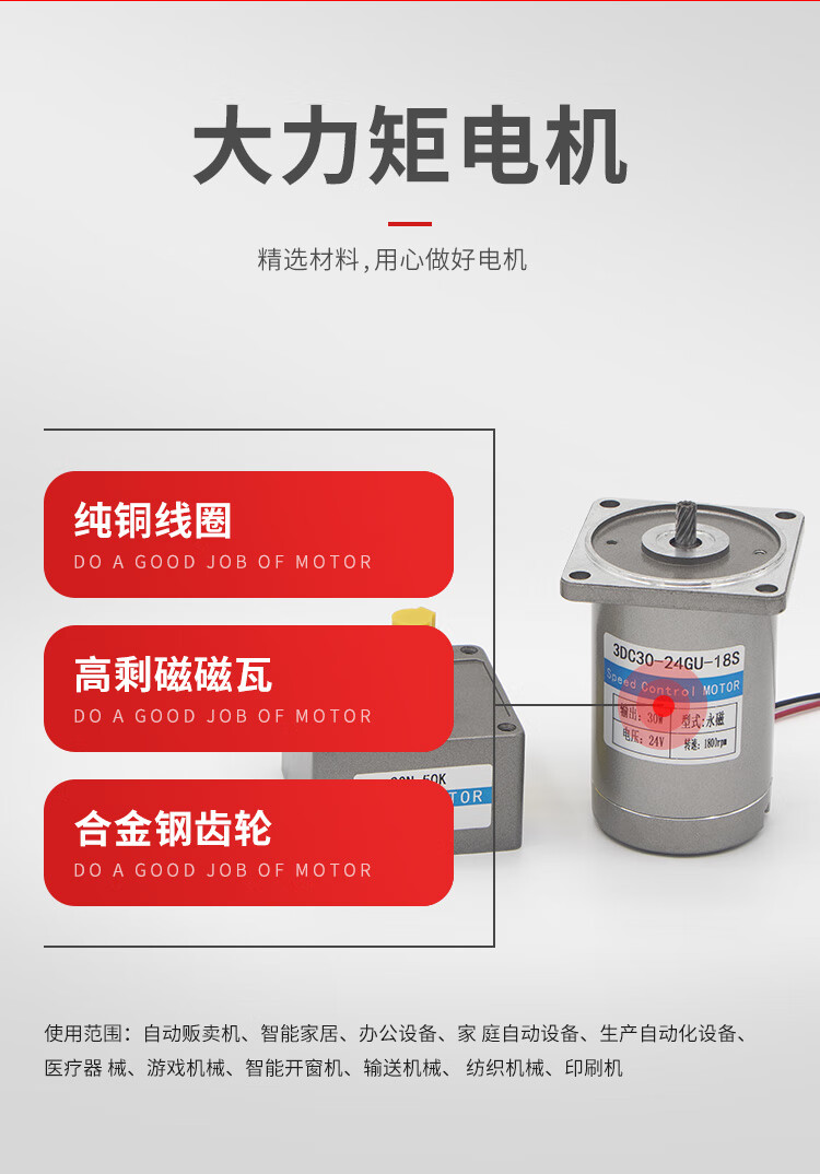 Yue Changsheng DC reduction motor 30W speed regulating motor slow speed micro motor 12V24v gear high torque motor gear box 12.5K (144 revolutions per minute) 10MM shaft 24V motor + 20A forward and reverse speed regulation