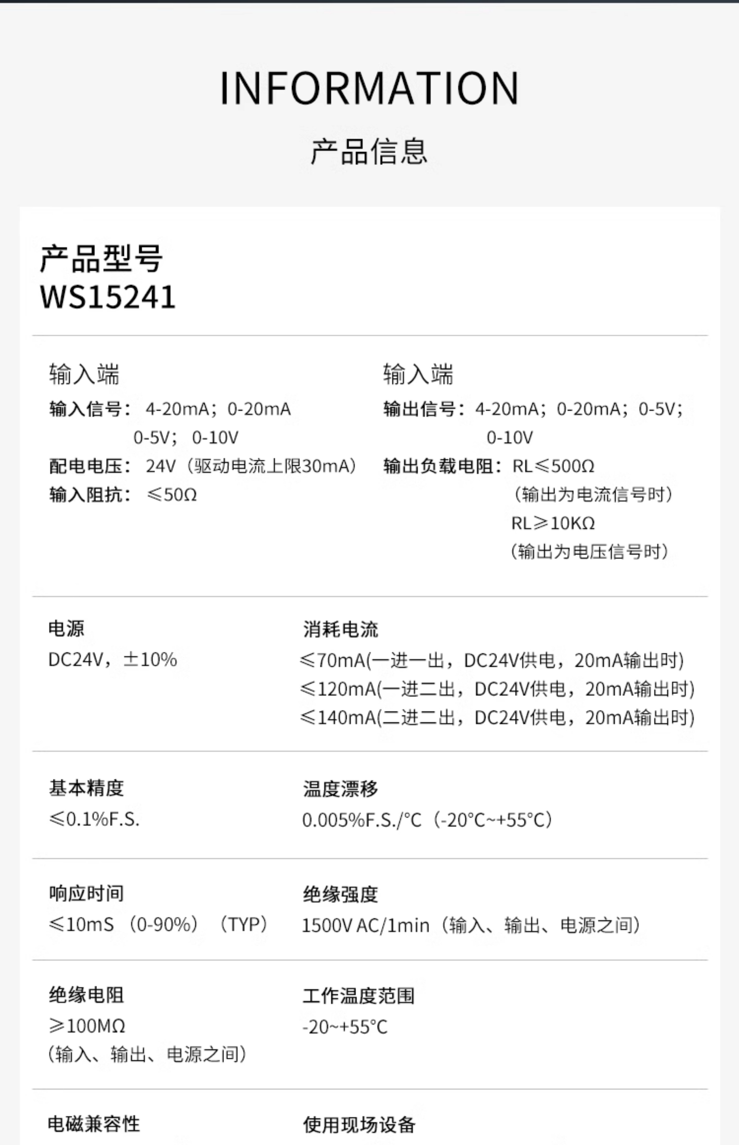 Yuechangsheng DC signal isolator one in two out analog current conversion voltage transmitter isolation barrier distribution module life-long maintenance one in two out other parameters parameters