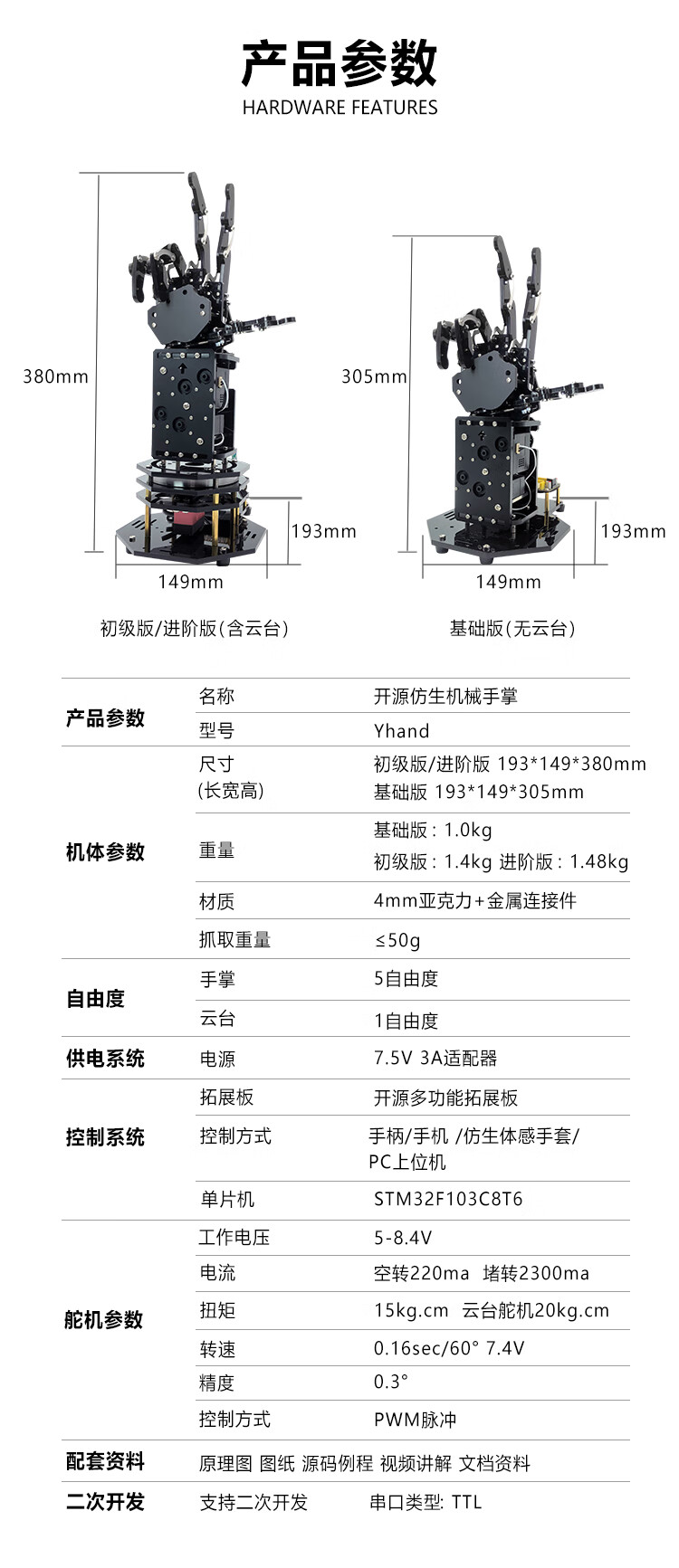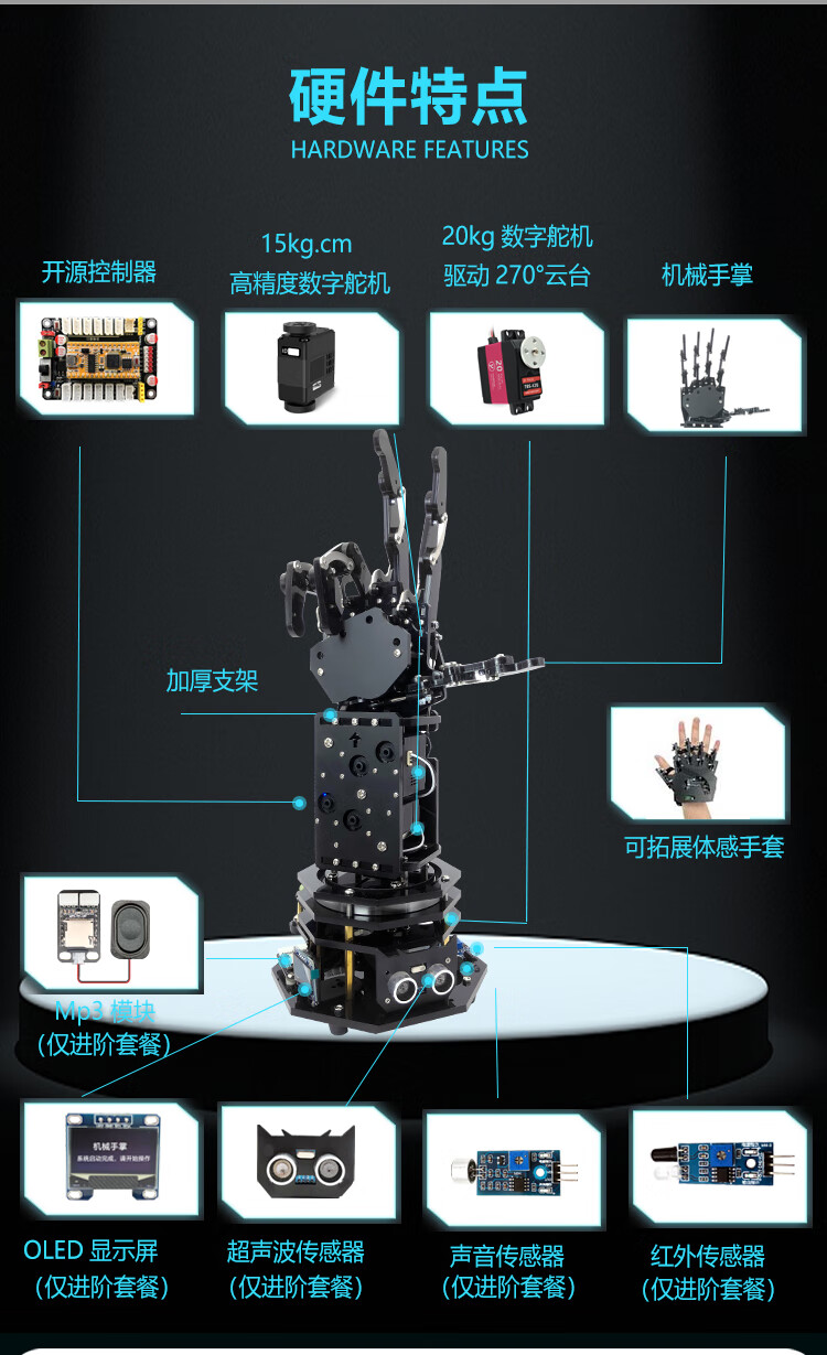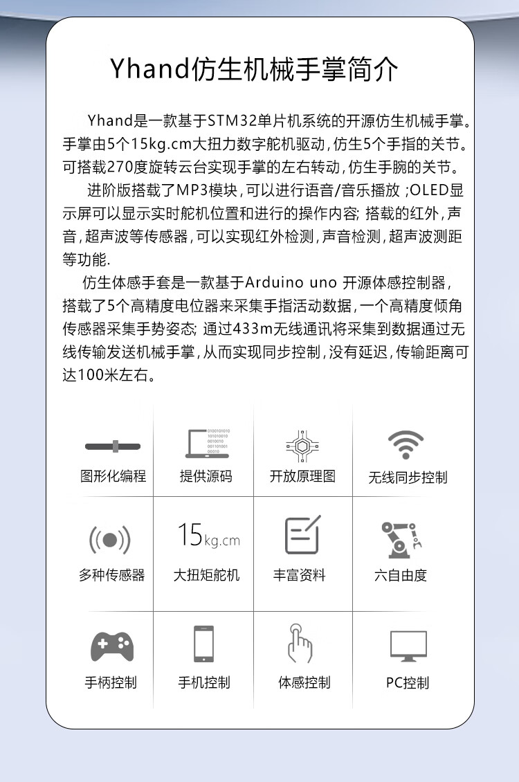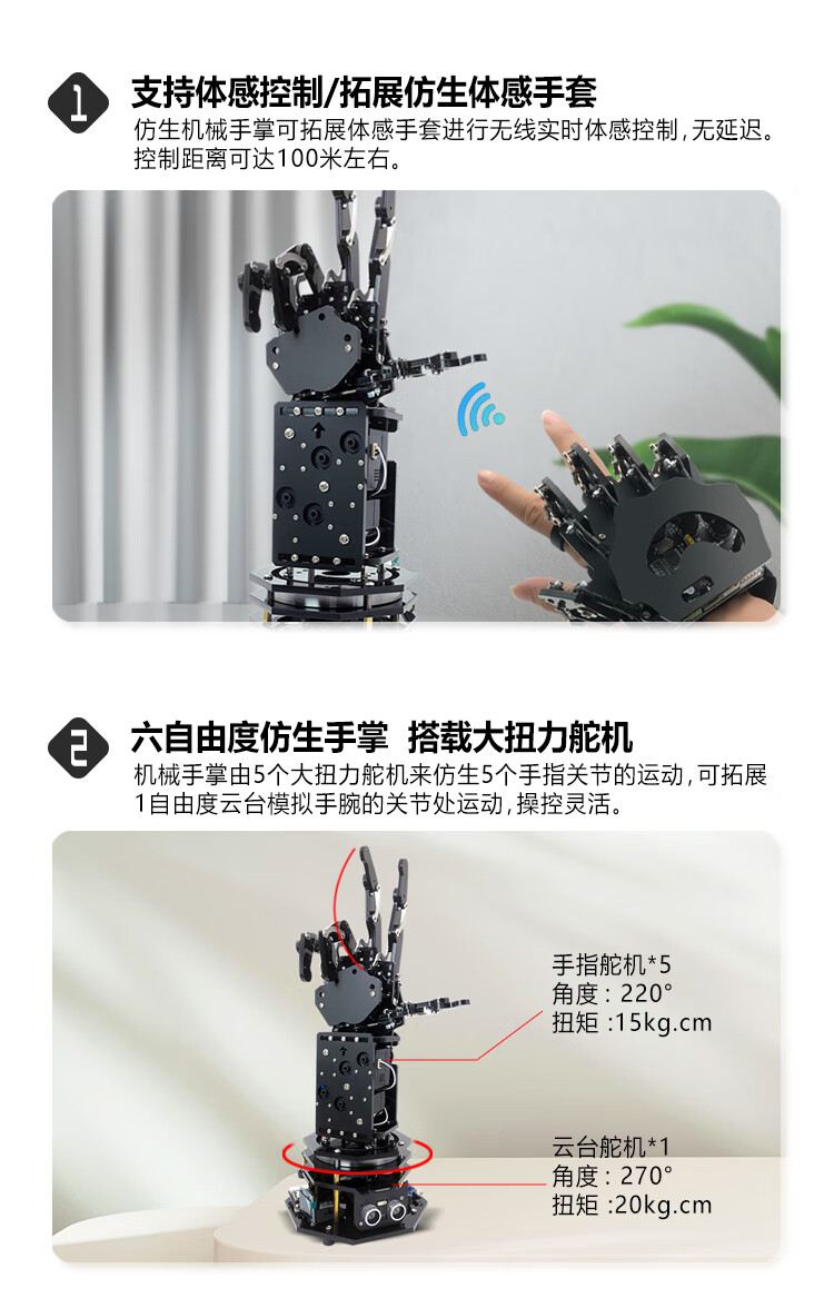 Yue Changsheng Songjia open source bionic mechanical arm mechanical palm stm32 programming somatosensory robot mechanical arm junior version finished product + portable aluminum box