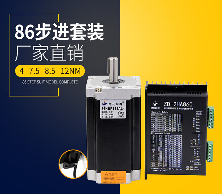 Yue Changsheng 86 two-phase stepper motor 3/4/7.5/8.5/12NM with 860 driver high torque era 86 two-phase 155mm long 12NM set/driver included