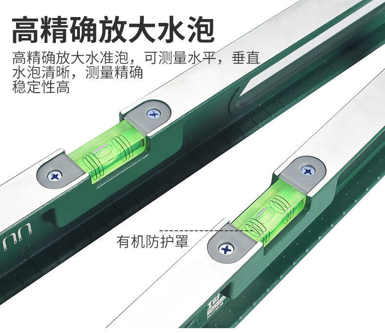 Vinoa level high-precision solid cast aluminum industrial-grade heavy-duty all-aluminum alloy multi-functional decoration anti-fall small flat water ruler lightweight thickened 1 meter with magnetic (ruler)