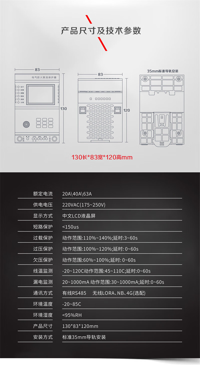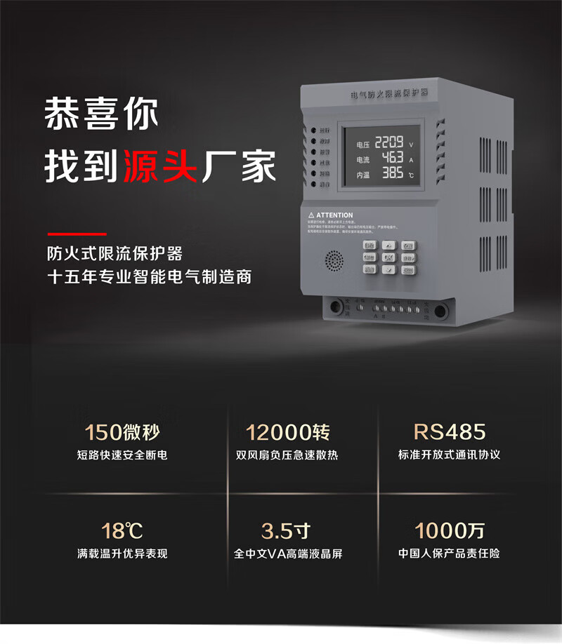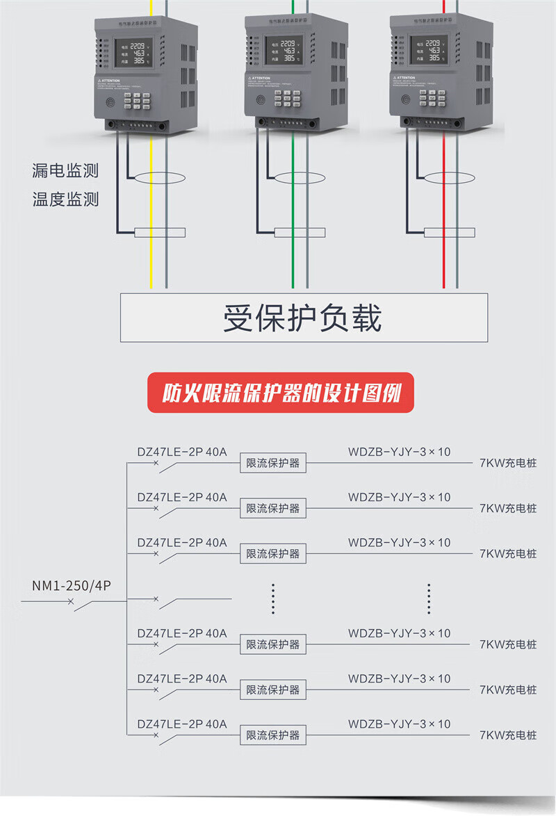 Electrical fire-proof current-limiting protector single-phase three-phase 16A32A40A63A80 charging pile over-temperature and overload monitoring three-phase current-limiting protector 160A