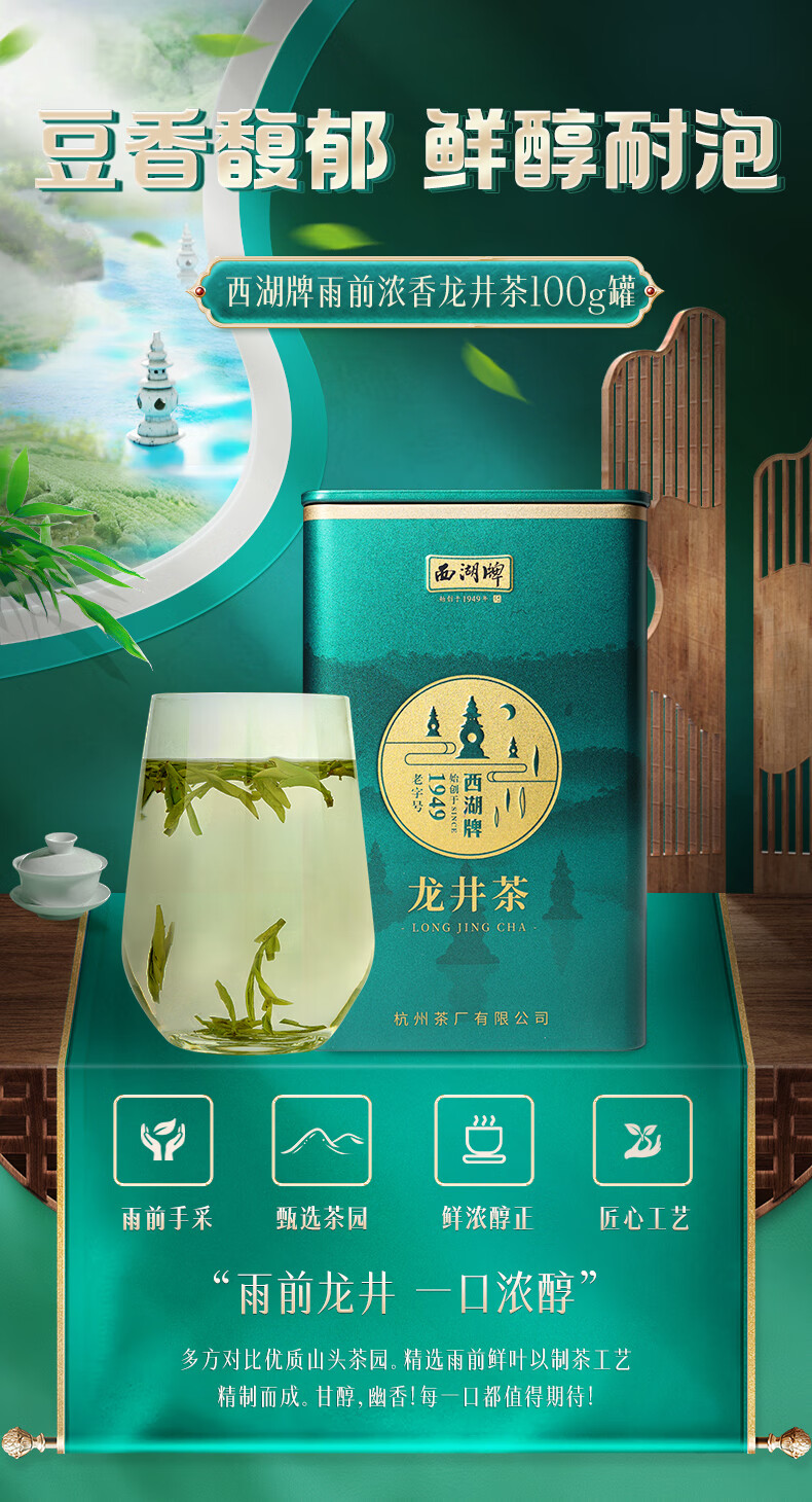 West Lake brand 2025 new tea launched green tea before the rain strong fragrance Longjing tea canned 100g spring tea Hangzhou tea factory for self-drinking