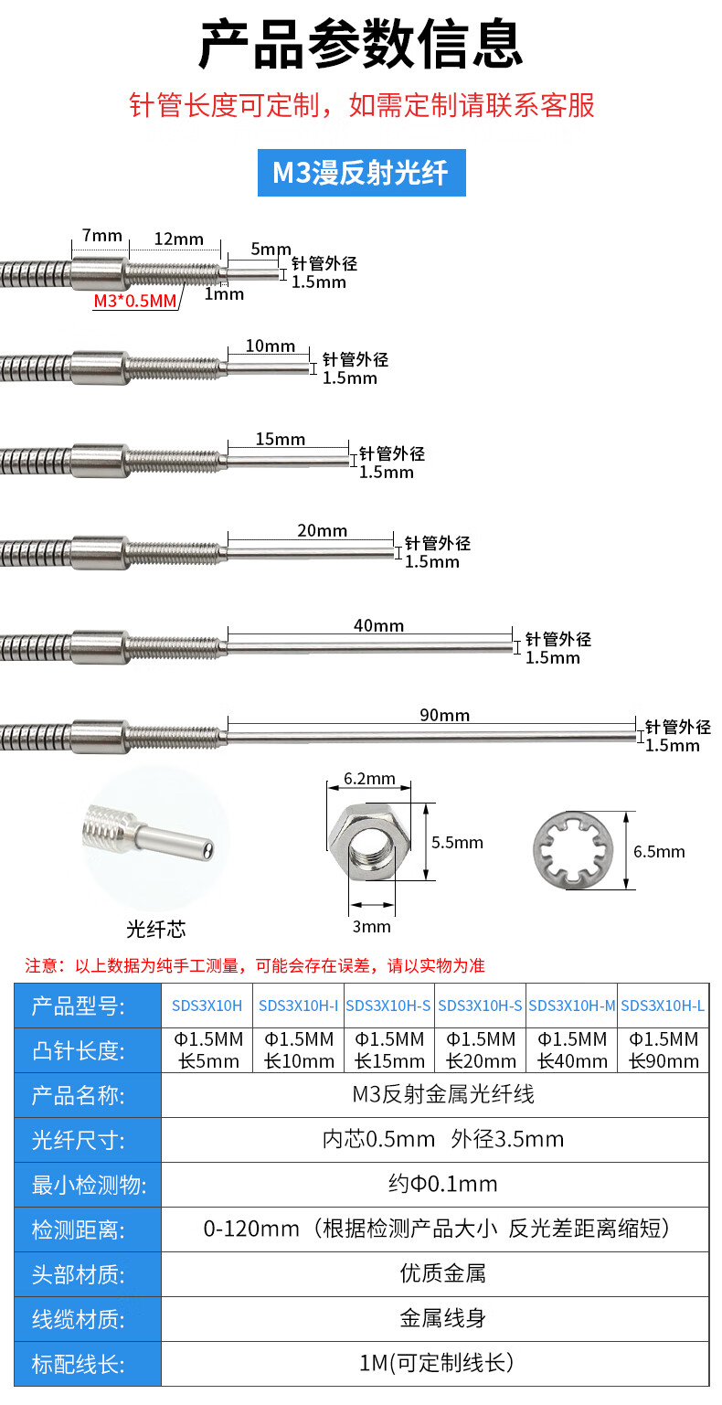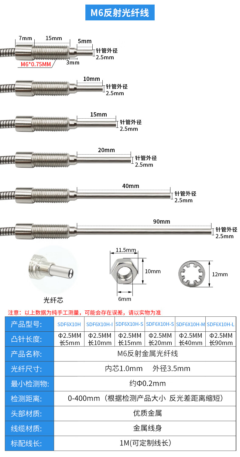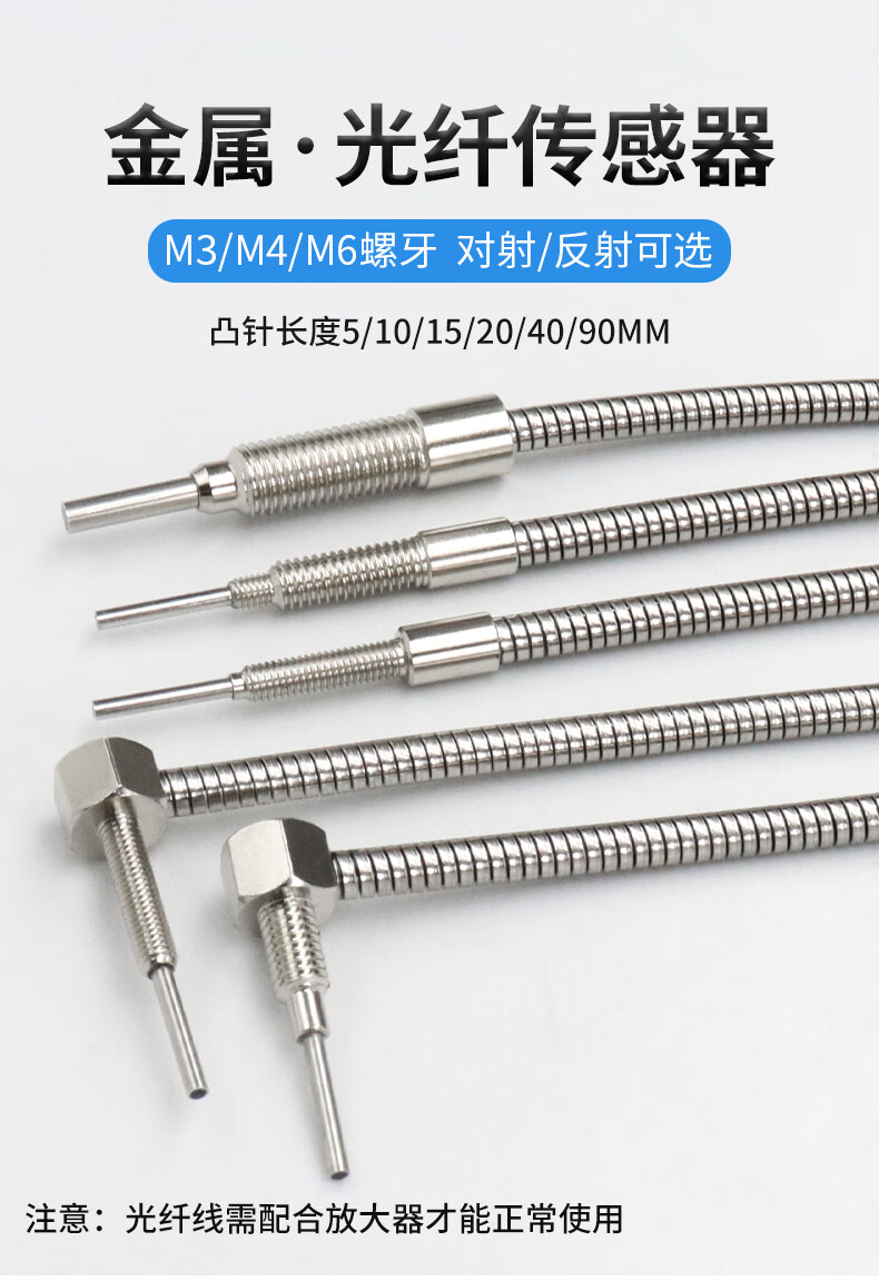 Yue Changsheng m3m4m6 metal sheathed optical fiber sensor amplifier through-beam diffuse reflection 5-90MM extended needle probe customization SDS-3X10H/90MM