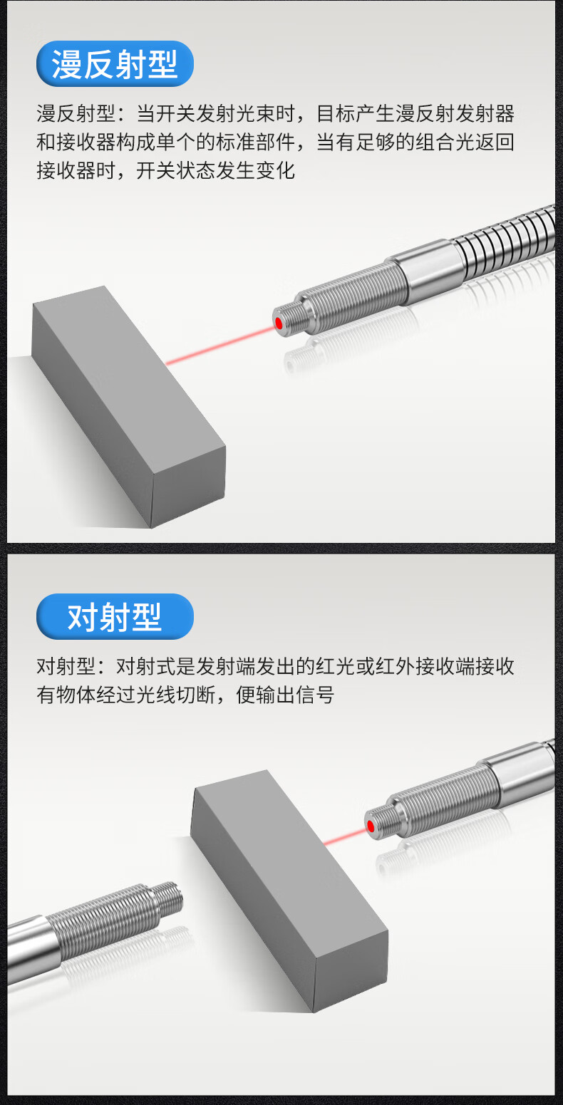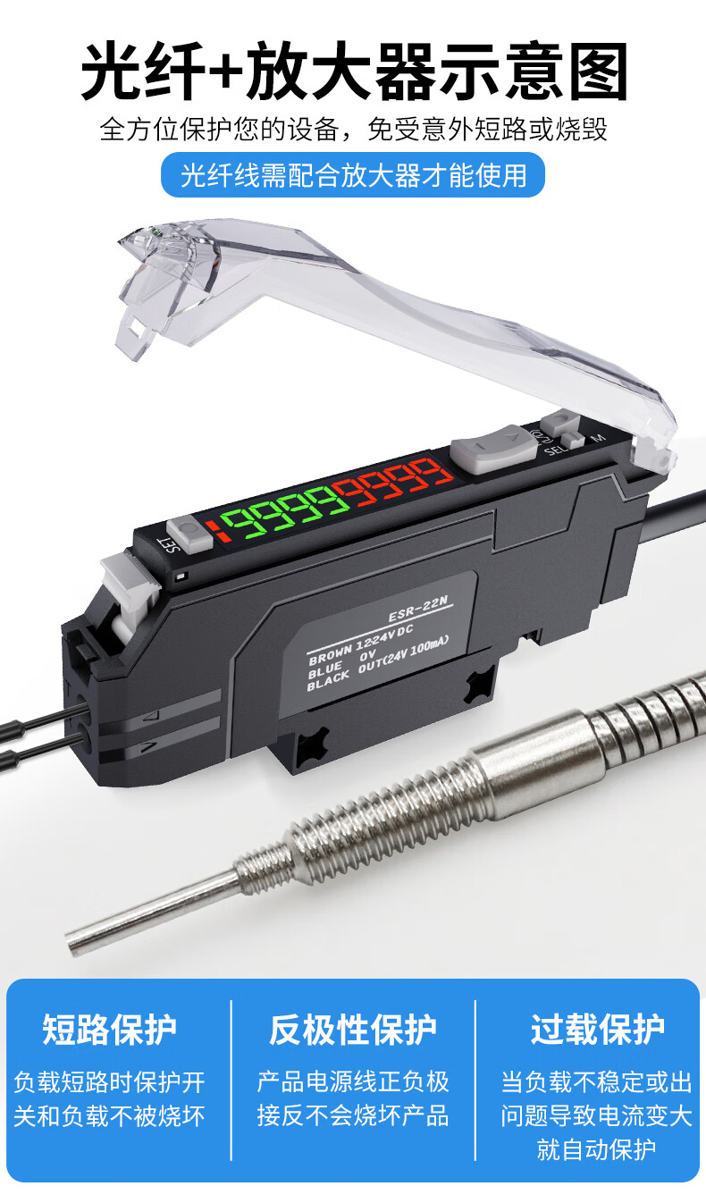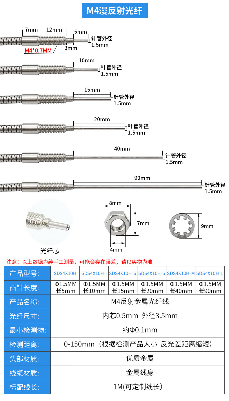 Yue Changsheng m3m4m6 metal sheathed optical fiber sensor amplifier through-beam diffuse reflection 5-90MM extended needle probe customization SDS-3X10H/90MM