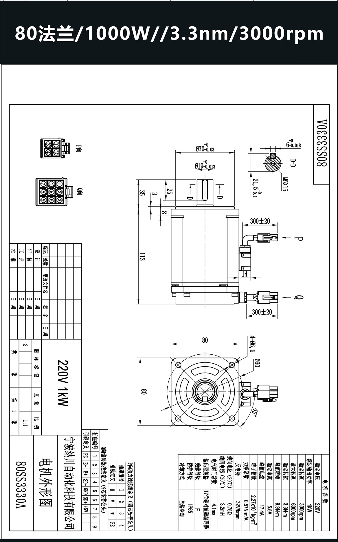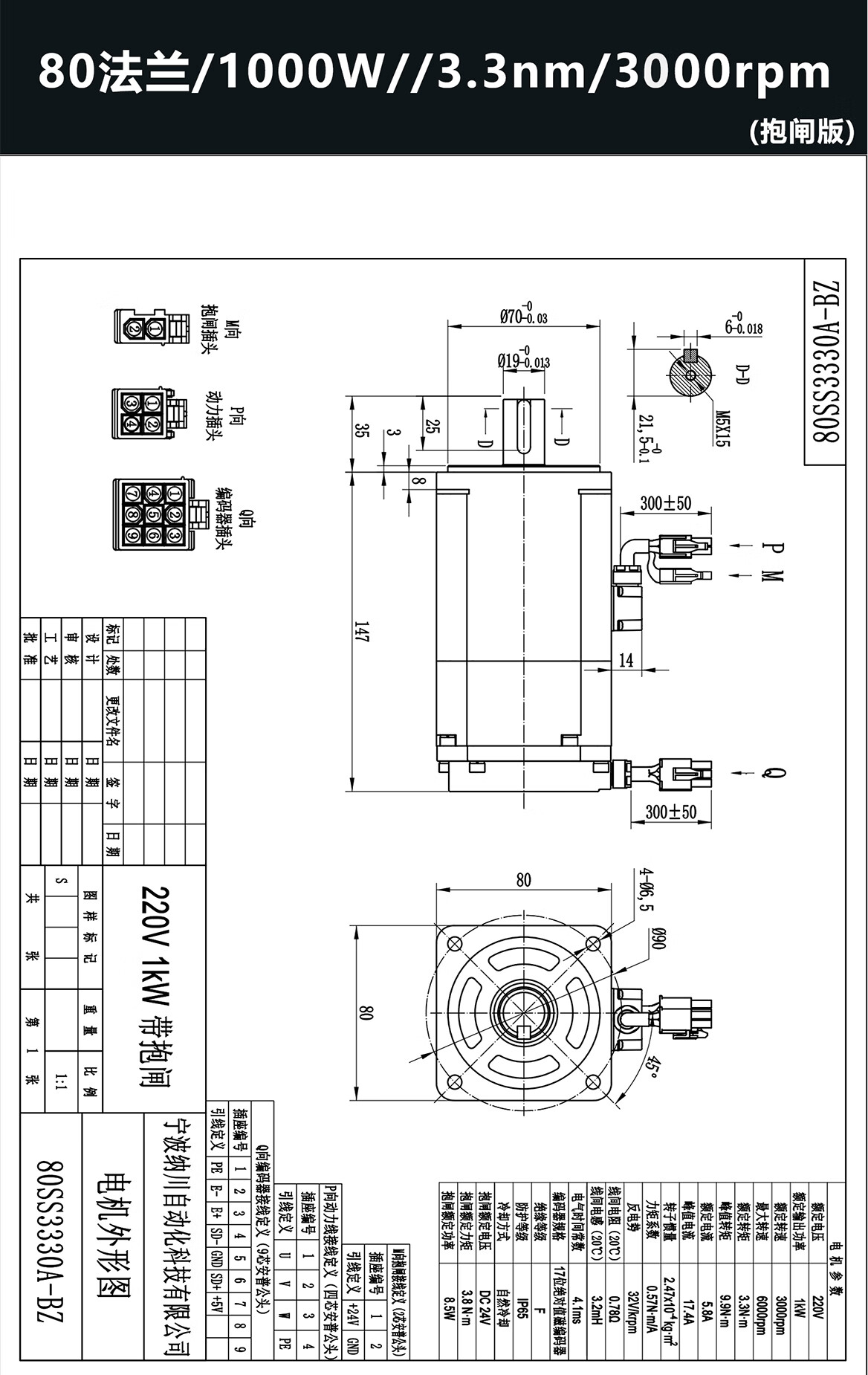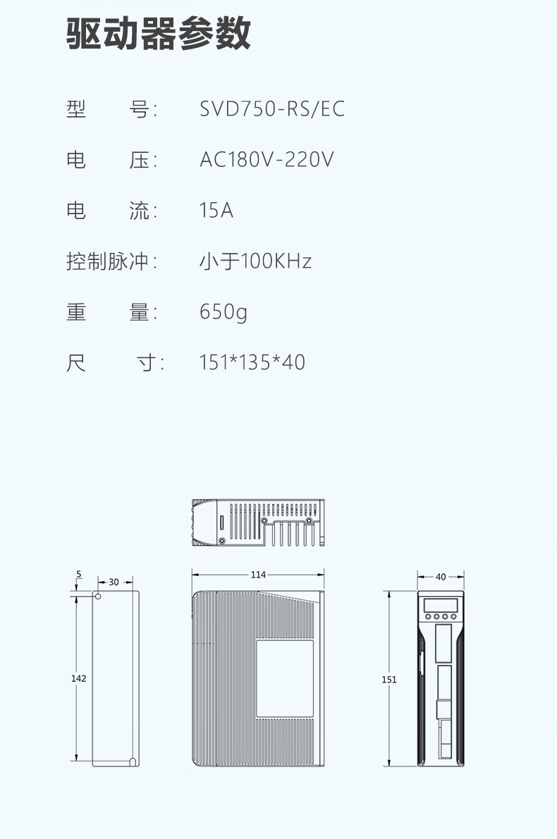 Yue Changsheng 1000W set 80 flange 3.3NM AC servo motor drive controller set high performance programmable orange SVD750-RS-pulse +485 3M80SS3330A (brake)