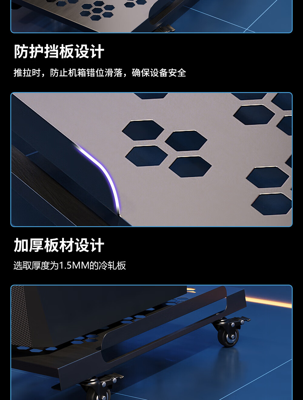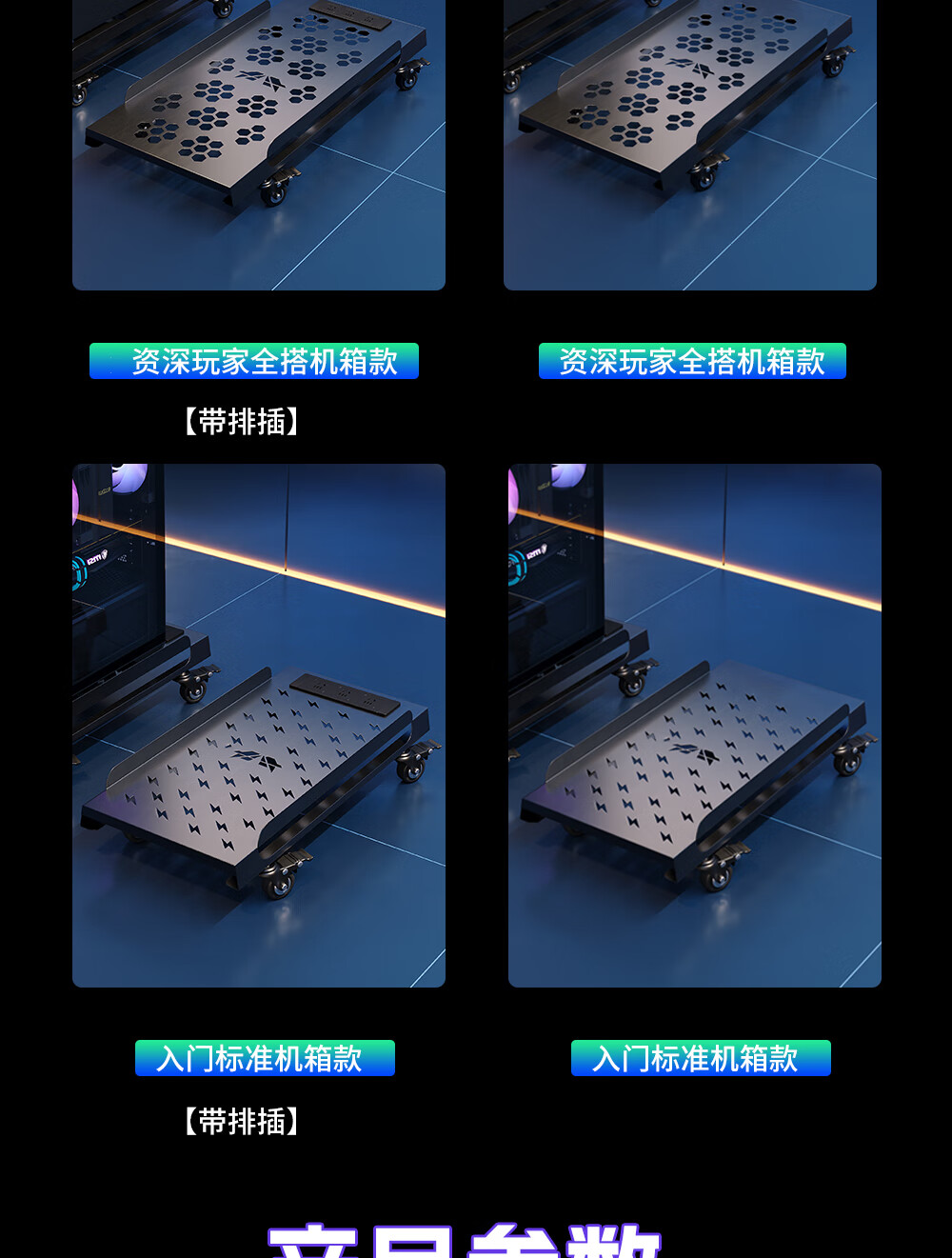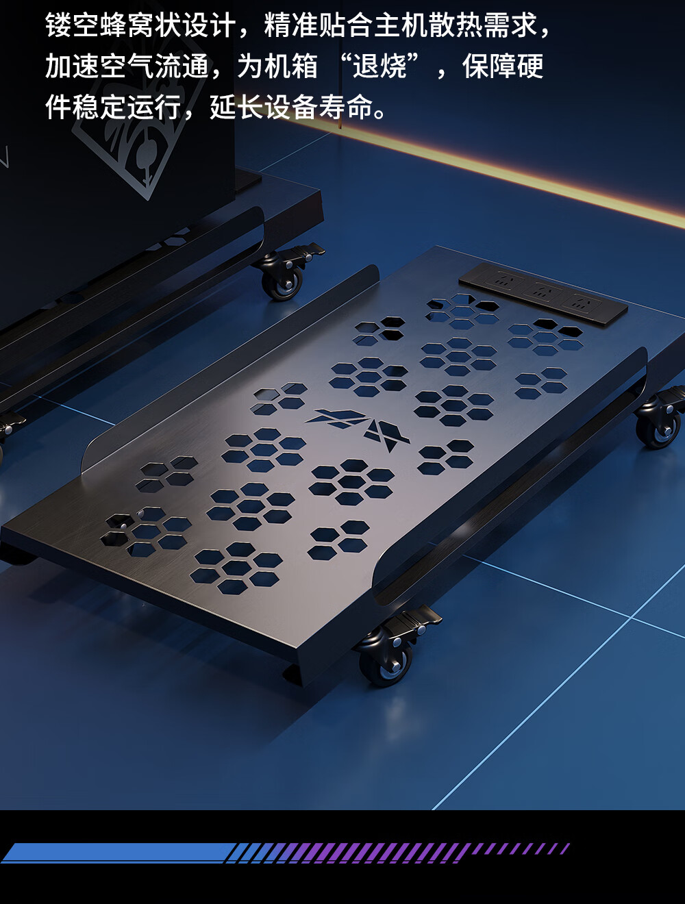 雷程台式电脑主机托架移动全塔太阳神海景房创世神机箱散热桌下置物架 资深玩家全塔机箱款 带排插
