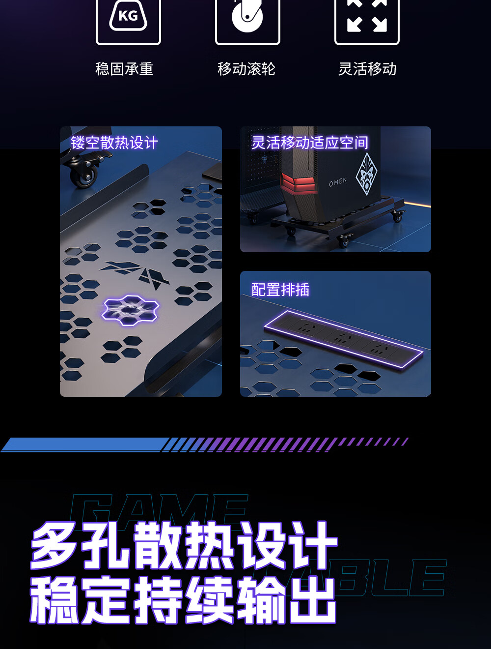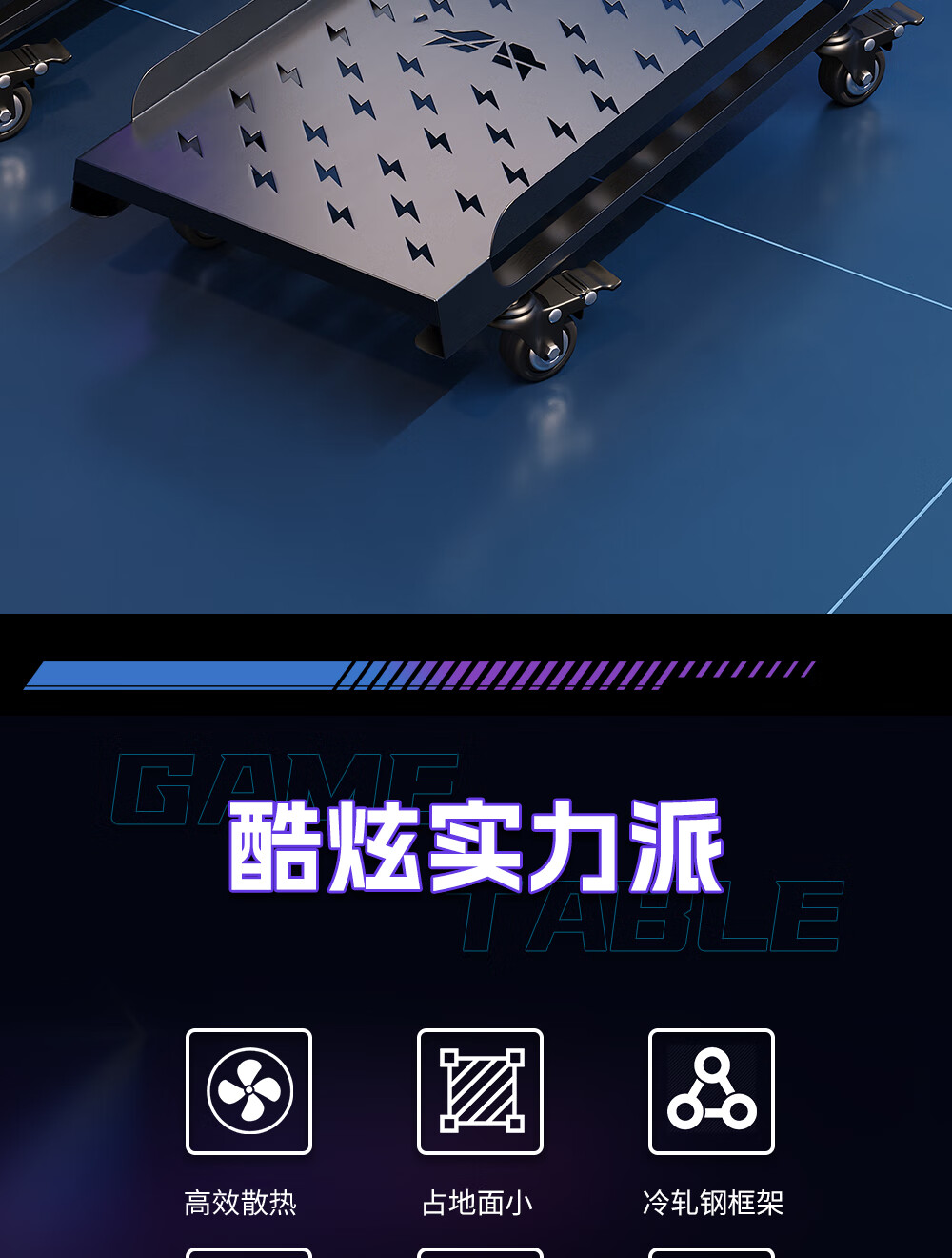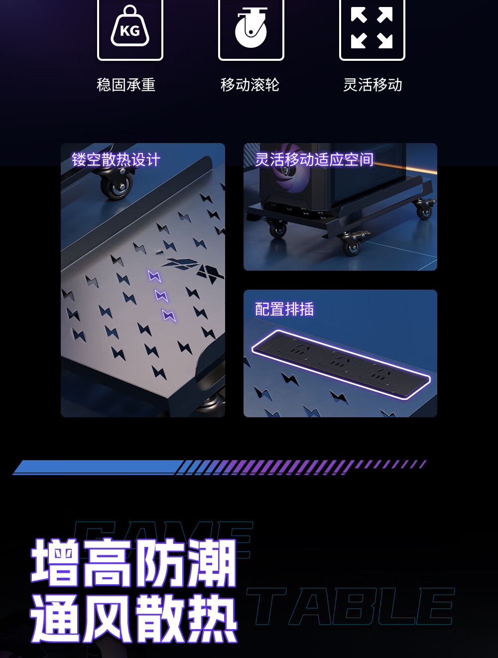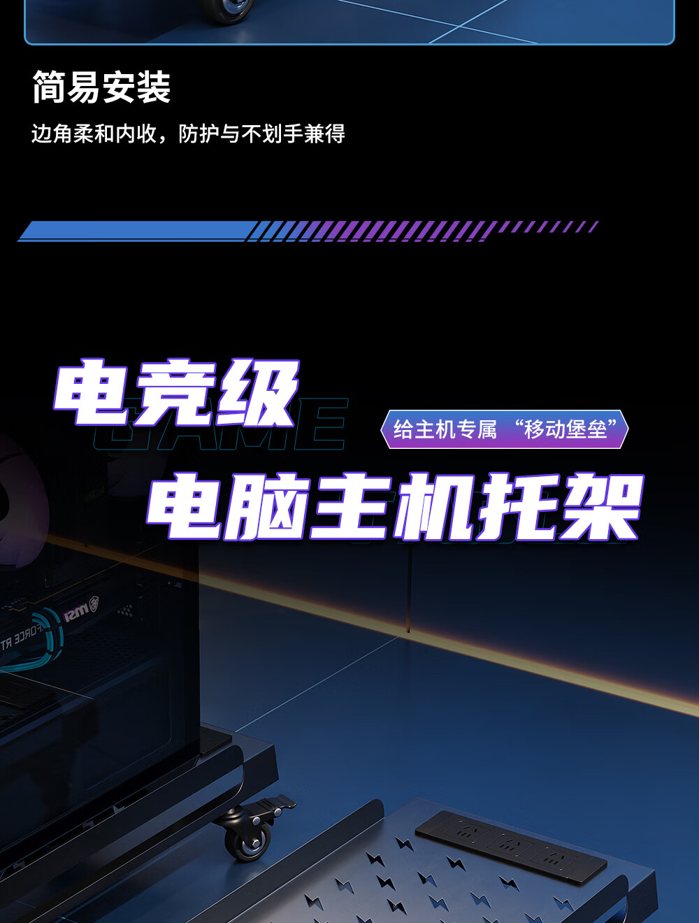雷程台式电脑主机托架移动全塔太阳神海景房创世神机箱散热桌下置物架 资深玩家全塔机箱款 带排插