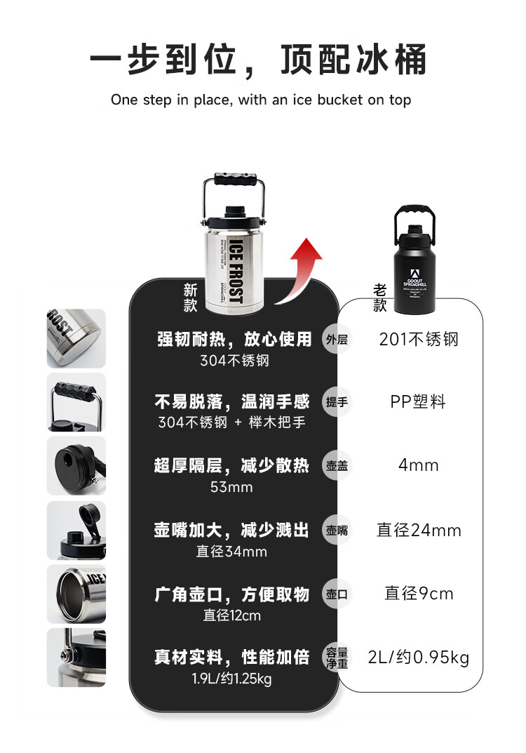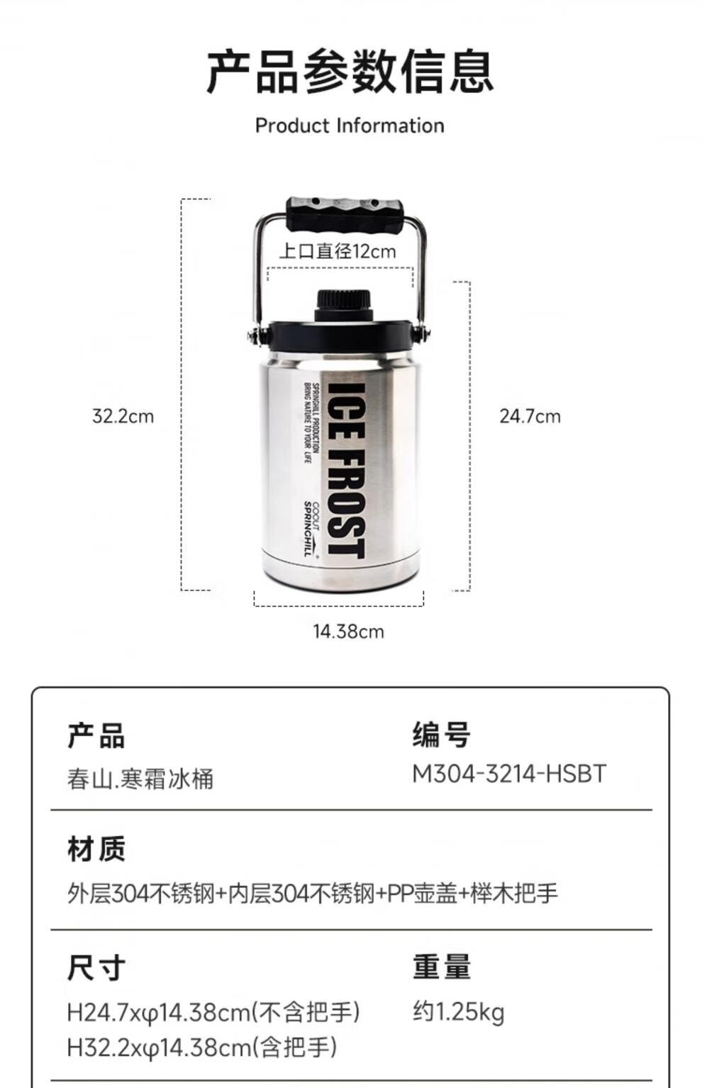 GOOUT SPRINGHILL Official Direct Sales Spring Mountain Gray Frost Ice Bucket Outdoor Ice Cube Insulated Box Camping Cold Bucket Portable Hand-held Gray Frost Ice Bucket Long-lasting Cold Insulation + Durable Protection