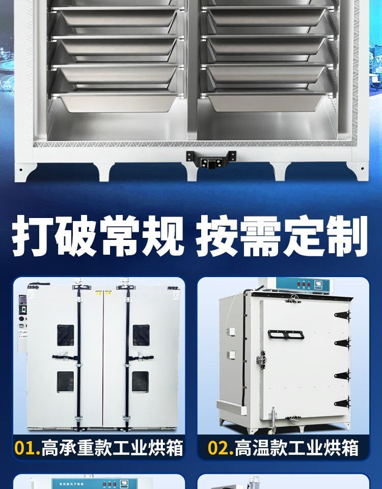 Huili customized electric constant temperature blast drying oven large industrial oven hot air circulation oven dryer customized 101-8B multi-layer cart / 380V (stainless steel