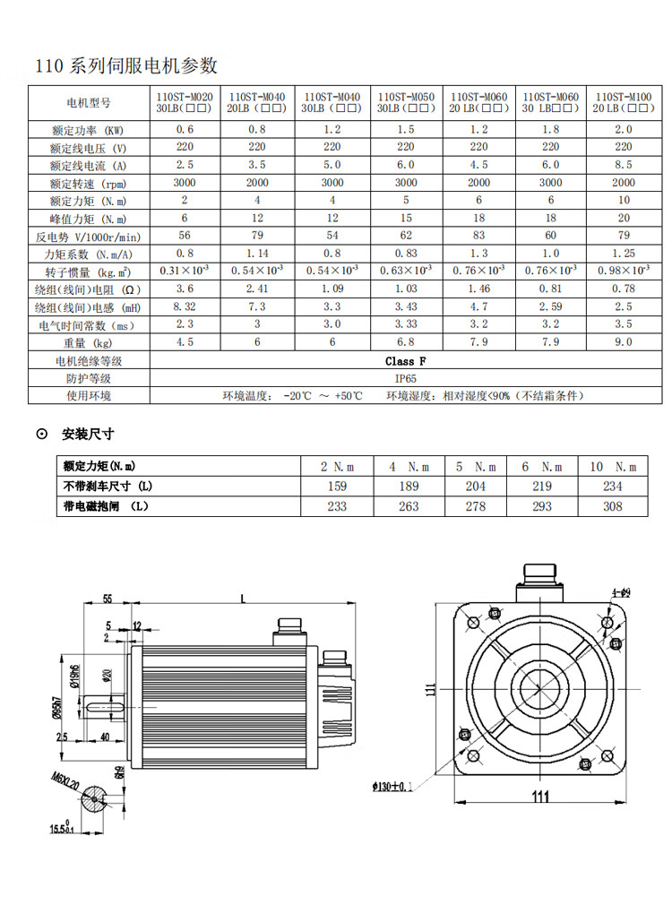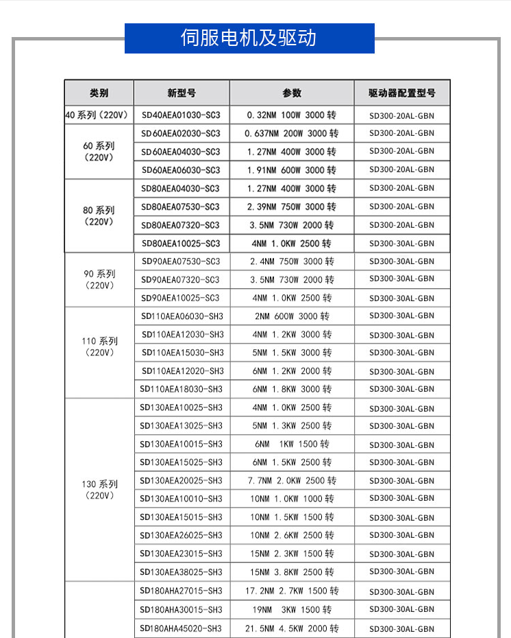 Yue Changsheng SD110 AC servo motor set SD300 drive 485 communication 1.2/1.8kw1.5kw era 110 servo 600W set 3000 rpm 2NM without brake (horizontal)