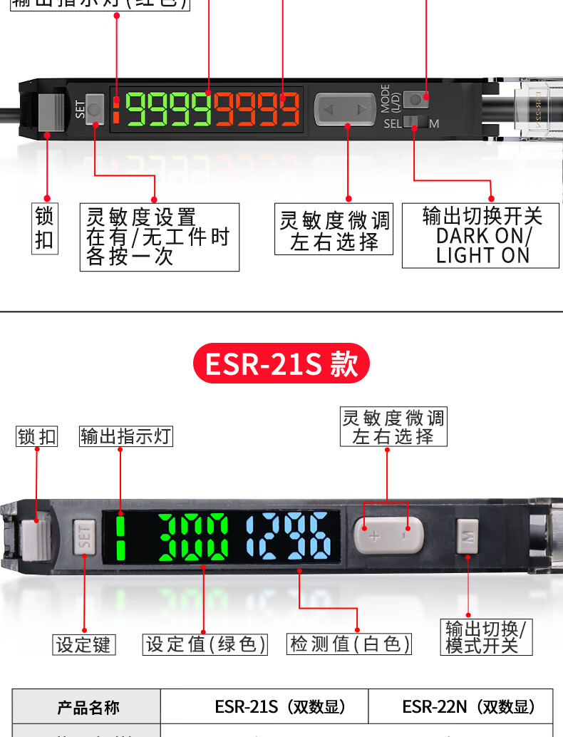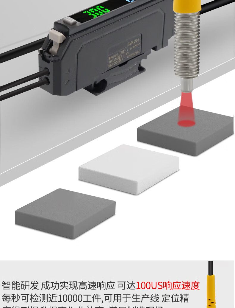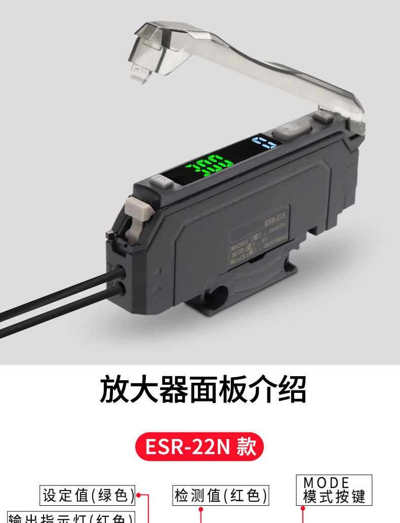 Yue Changsheng Shilotite digital display fiber amplifier precise positioning sorting sensor ESR-22N/21 probe ESR-21S+M4 through-beam optical fiber 1 meter