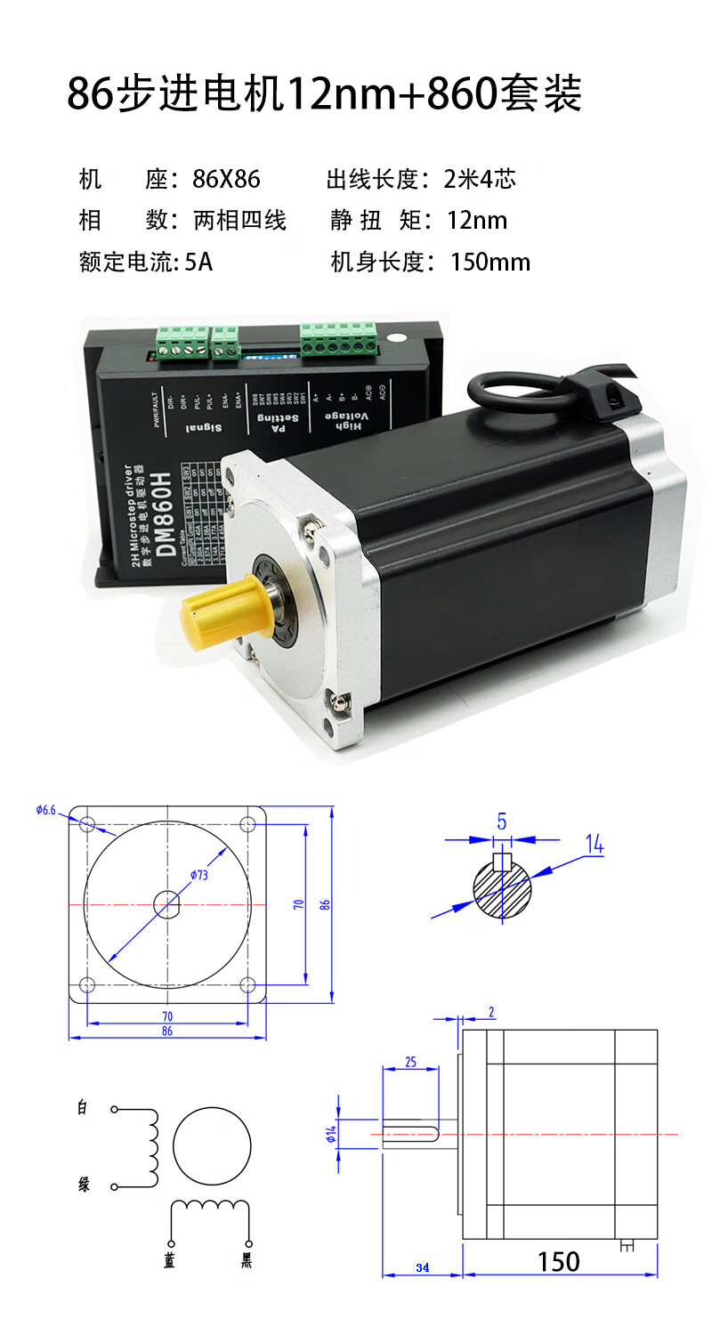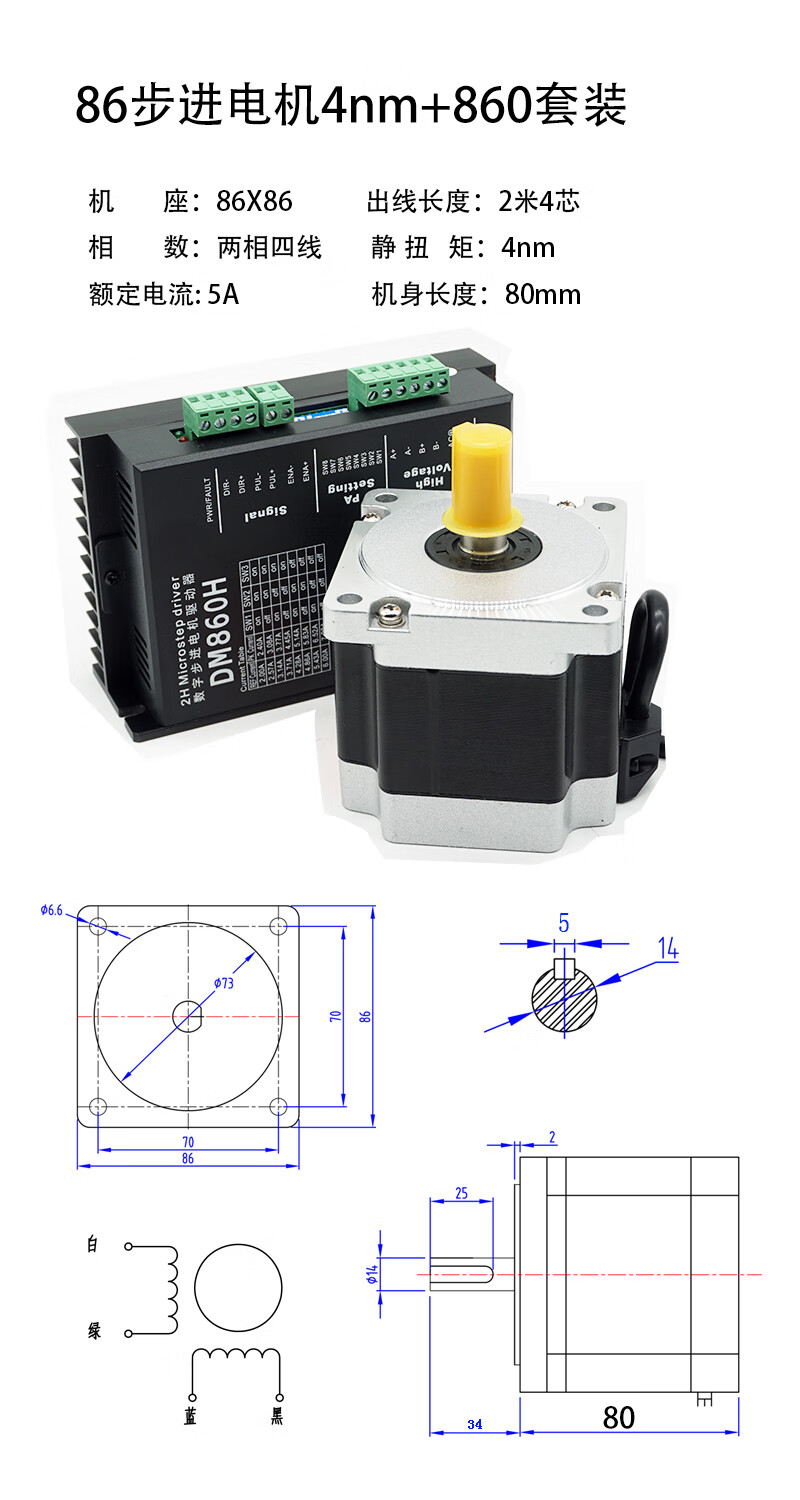 Yue Changsheng era superior 86 open loop stepper motor package driver 86 body 80mm torque 4nm package brake