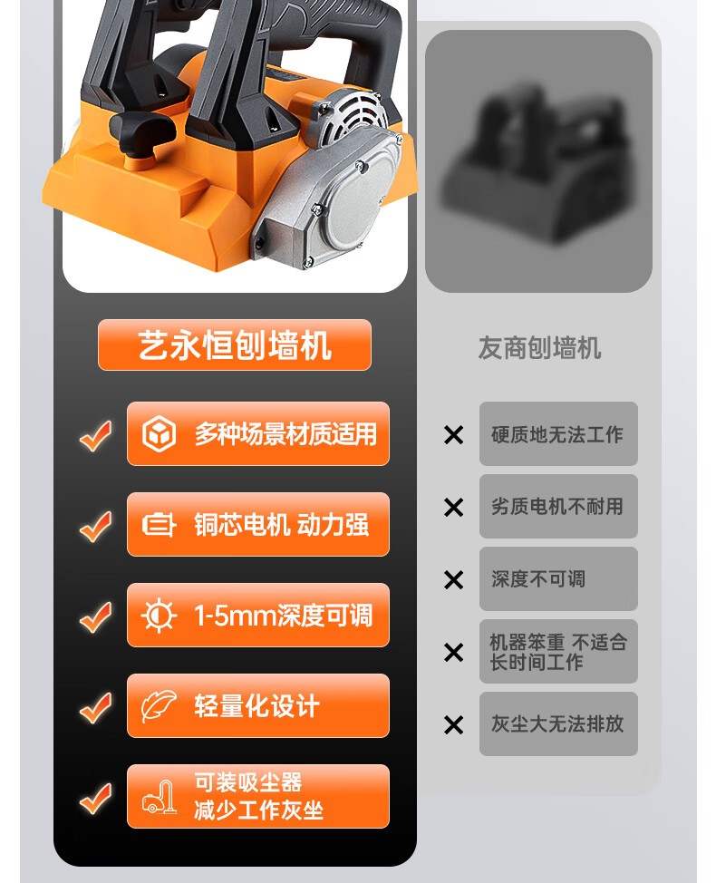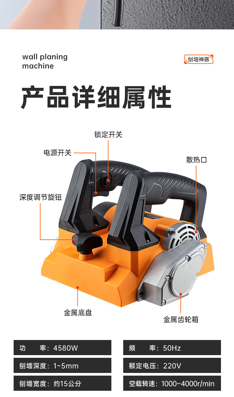 Yiyonghengheng wall planer wall shovel putty wall peeling shovel artifact old wall renovation electric white ash wall planer polishing dust-free high power 3.5KG wall planer 4580W