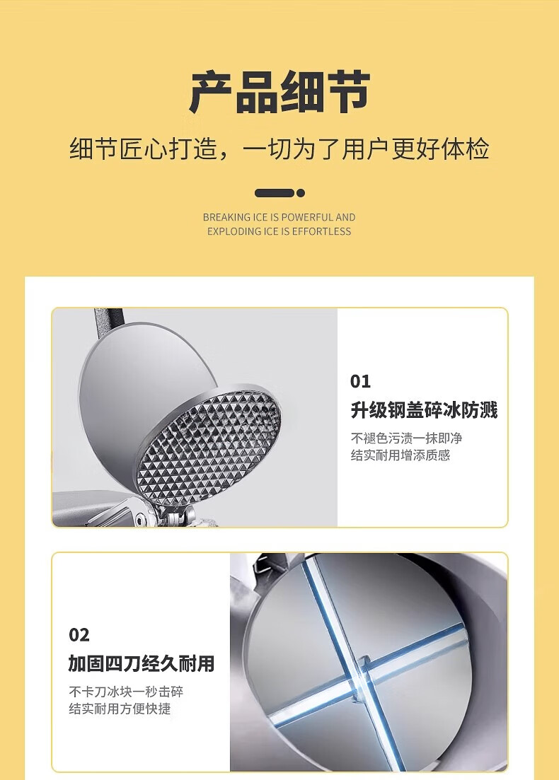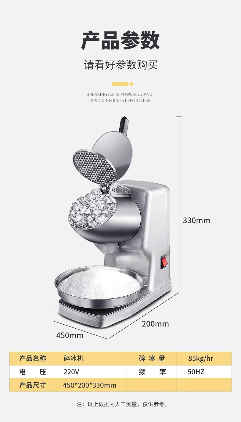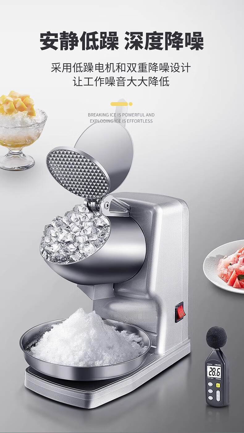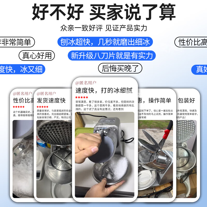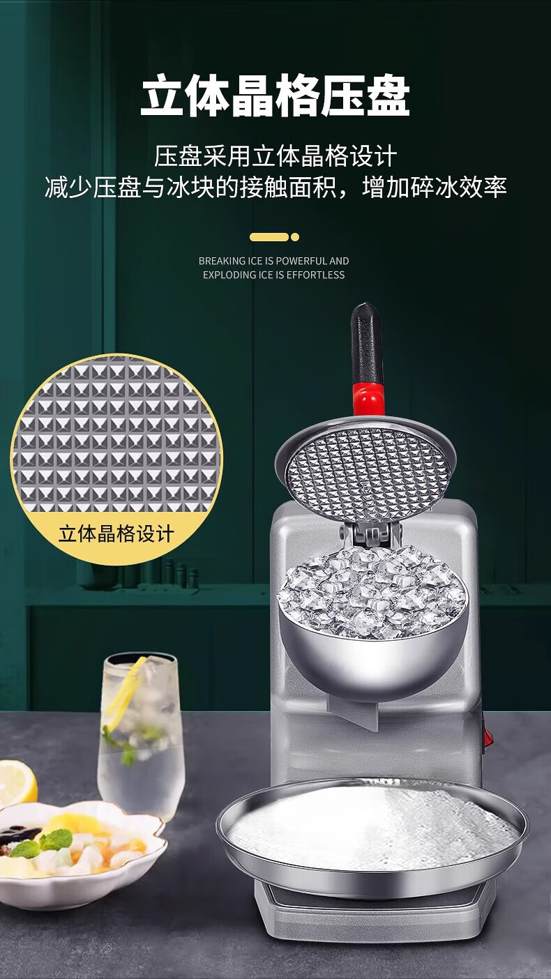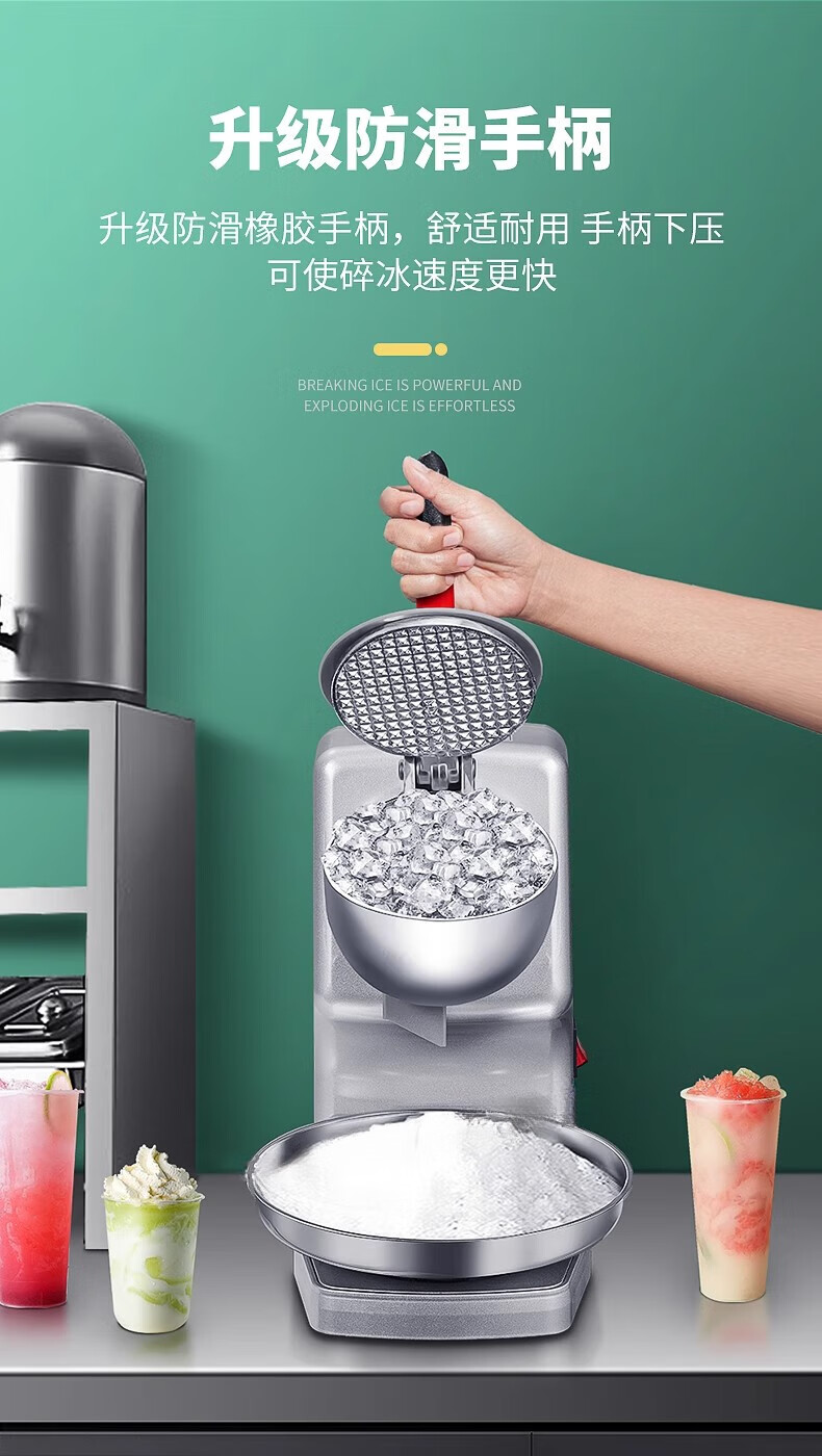 Jingyan manual ice shaver, household small smoothie machine, ice crusher, commercial stall continuous ice machine, hand-cranked hail ice machine, upgraded model - double cover, double knives, adjustable thickness | strengthened motor | double cover splash-proof, upgraded and heightened body | fine ice recommendation | 3 seconds ice crushing