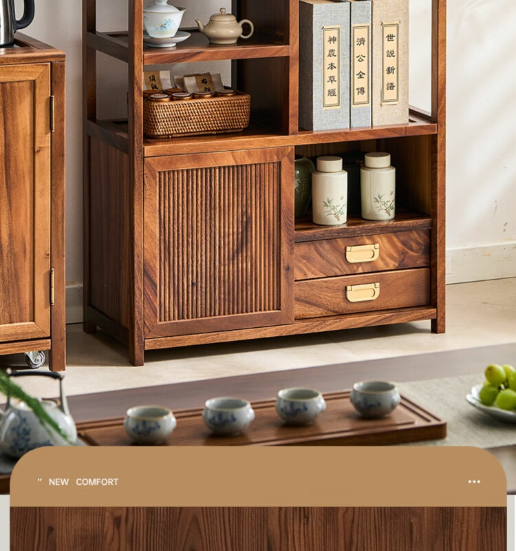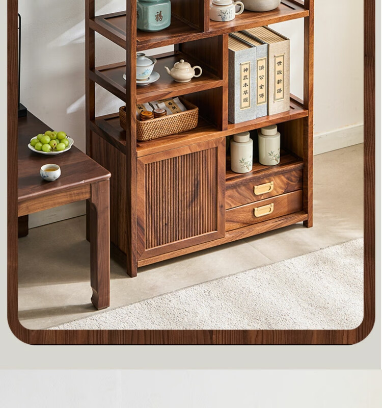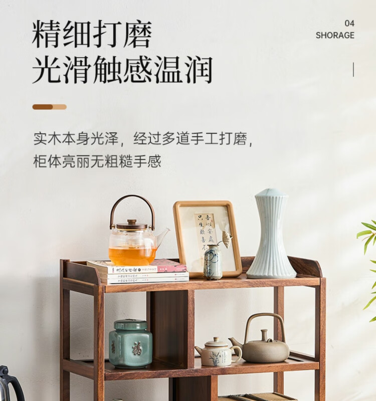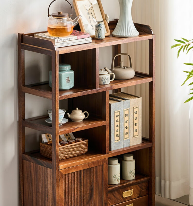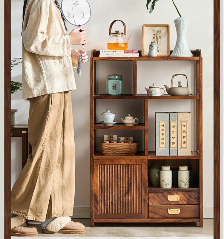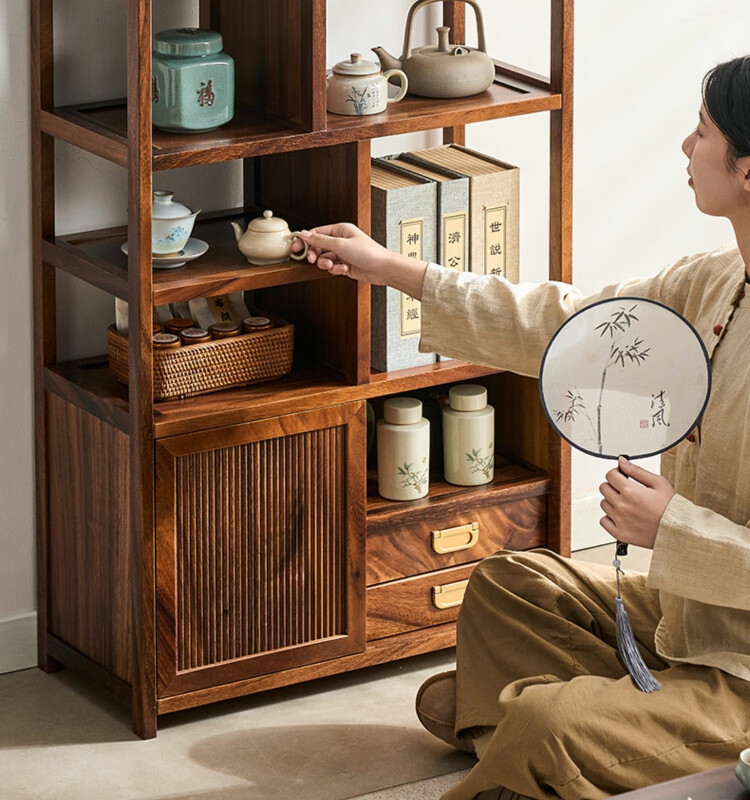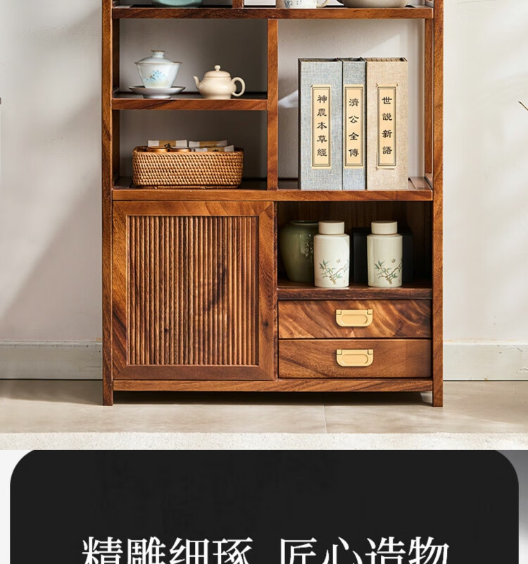 Shanzhilin solid wood ancient shelf tea room tea cabinet storage rack tea cup Duobao Pavilion Chinese bookshelf tea room storage cabinet tea storage black gold wood red zebra ancient shelf