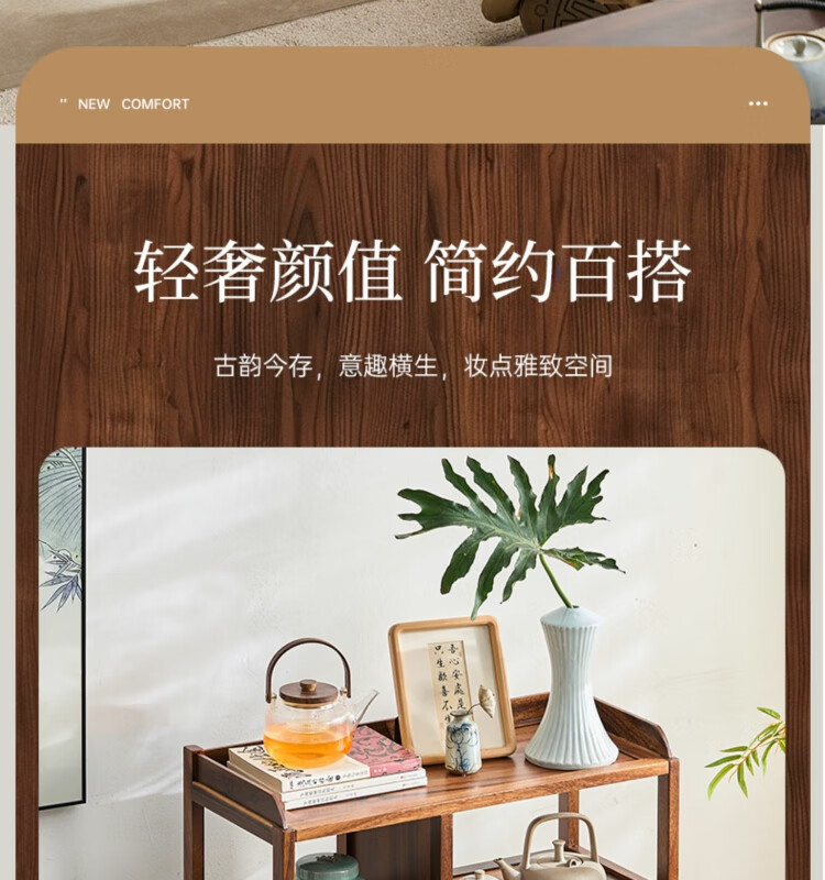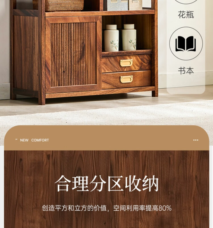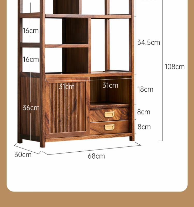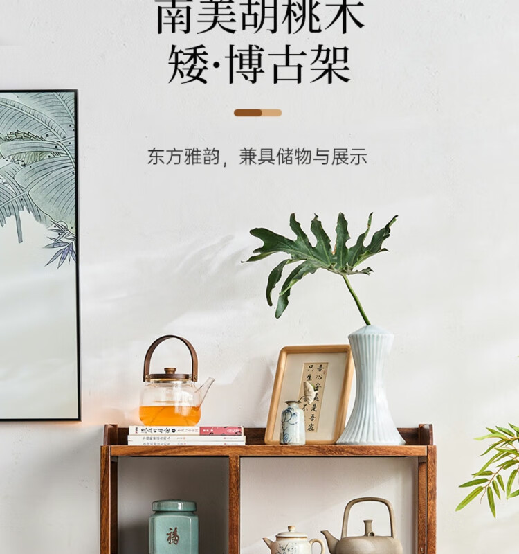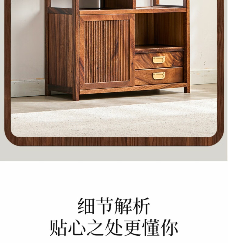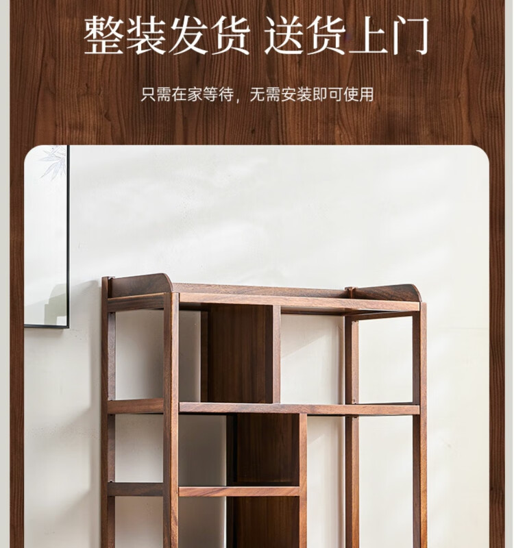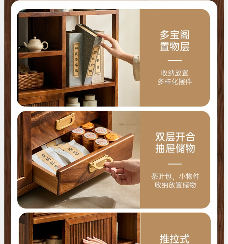 Shanzhilin solid wood ancient shelf tea room tea cabinet storage rack tea cup Duobao Pavilion Chinese bookshelf tea room storage cabinet tea storage black gold wood red zebra ancient shelf