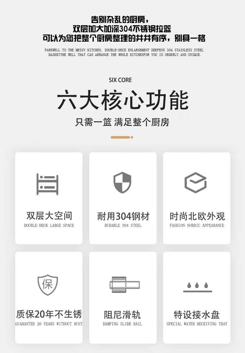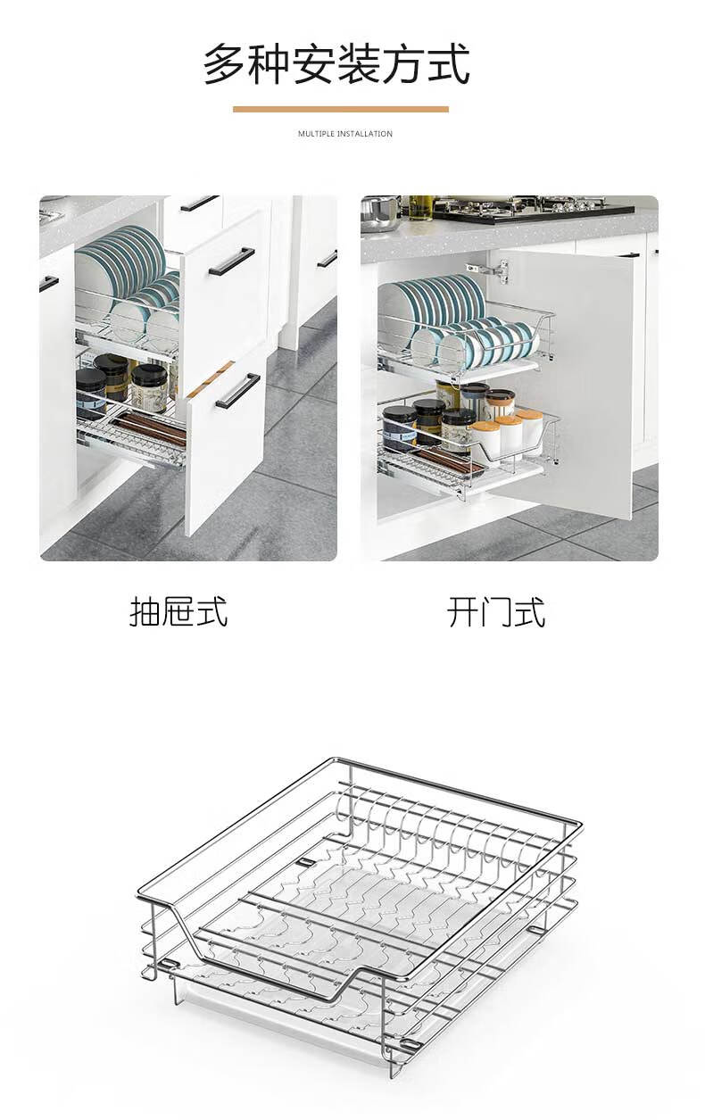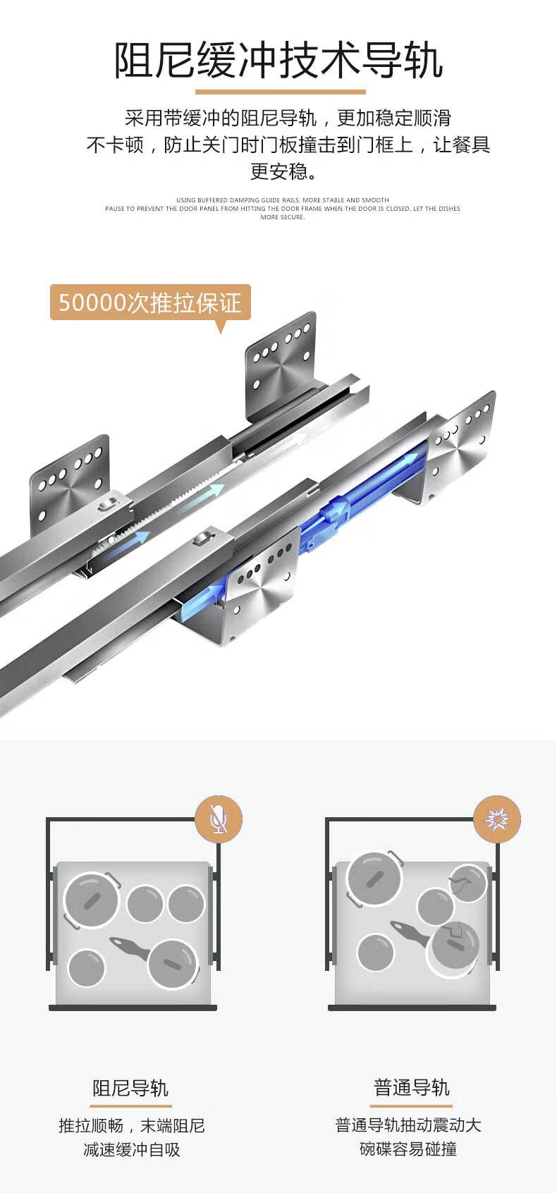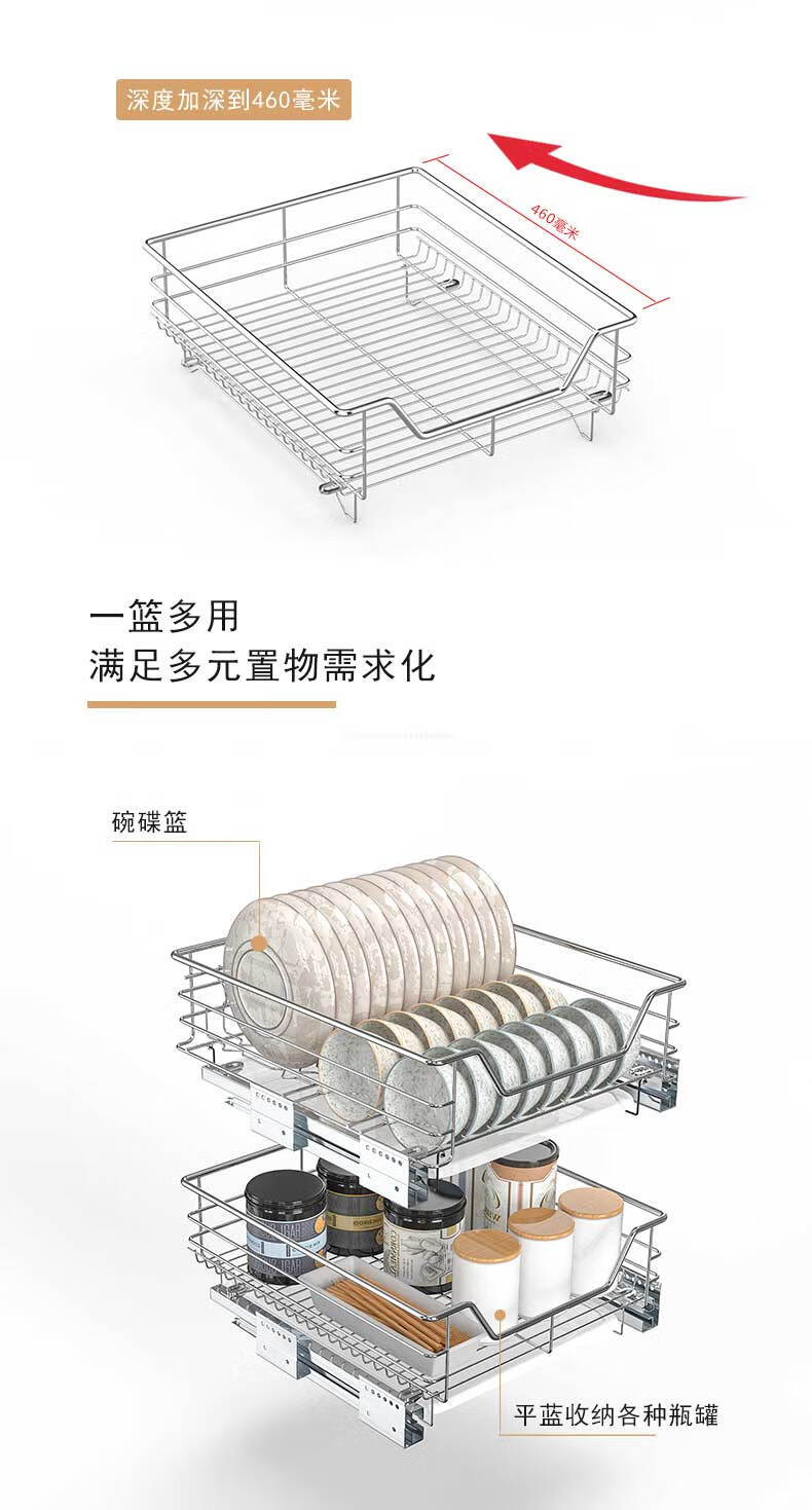 Customized 304 stainless steel pull blue small bowl blue 400 cabinet built-in 450 pull rail 500 drawer seasoning basket deepened 41 deep 400 cabinet double layer 202-damping track-water delivery