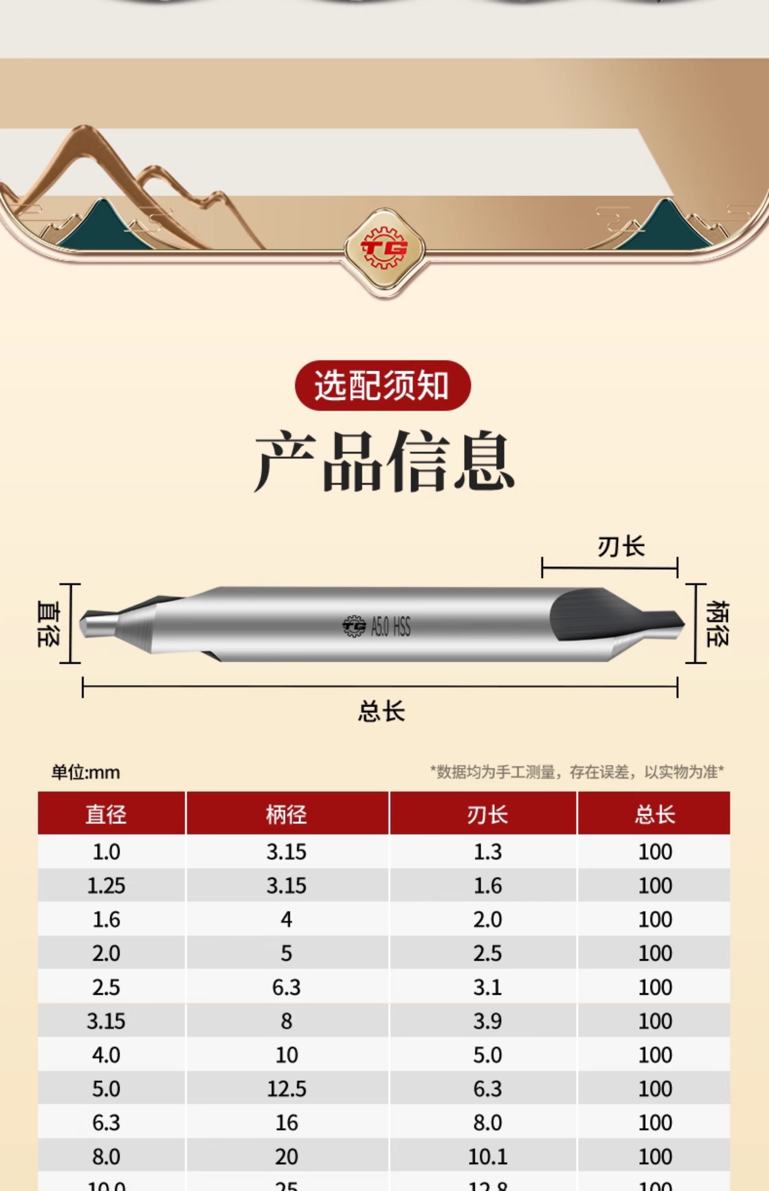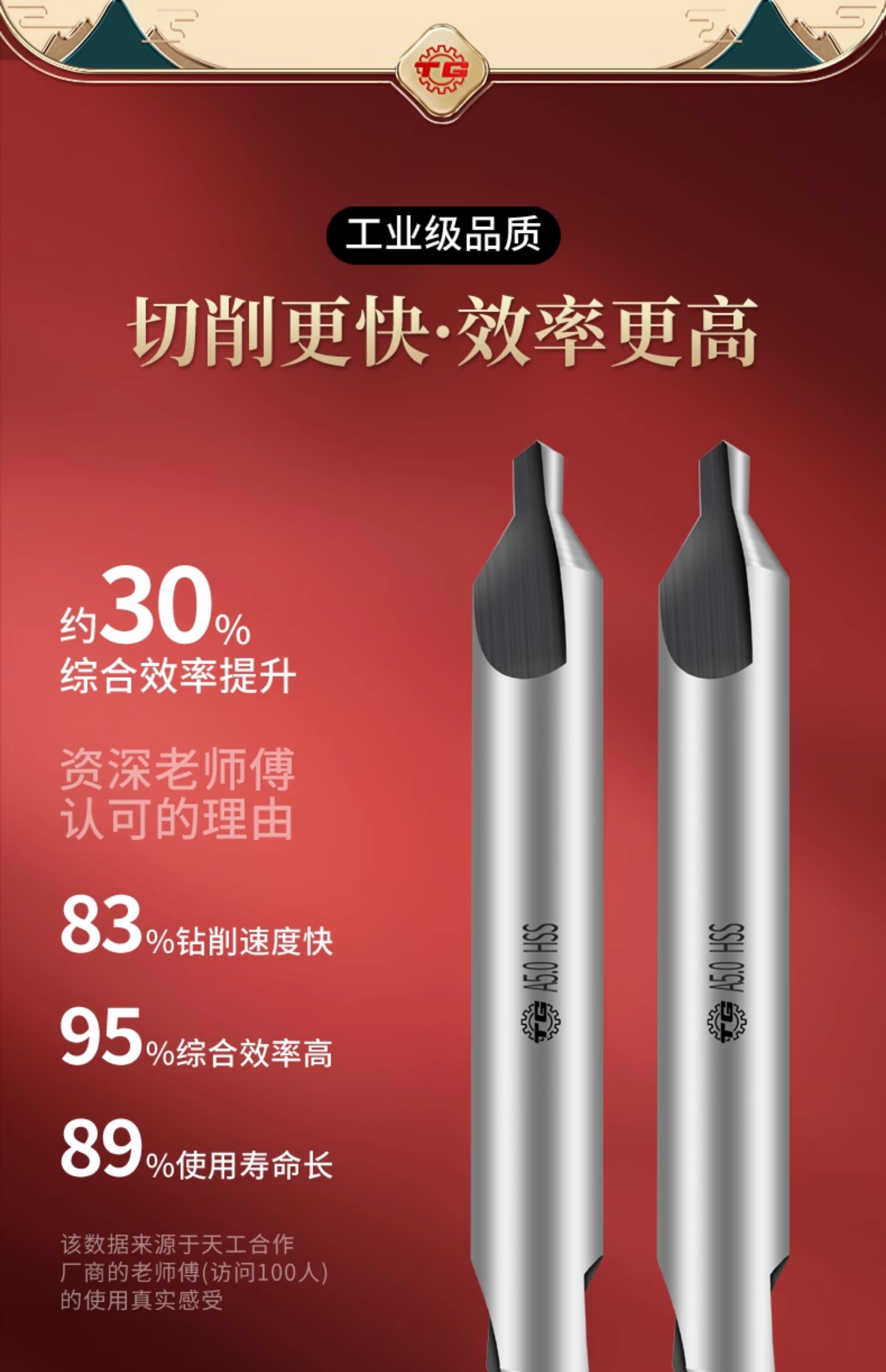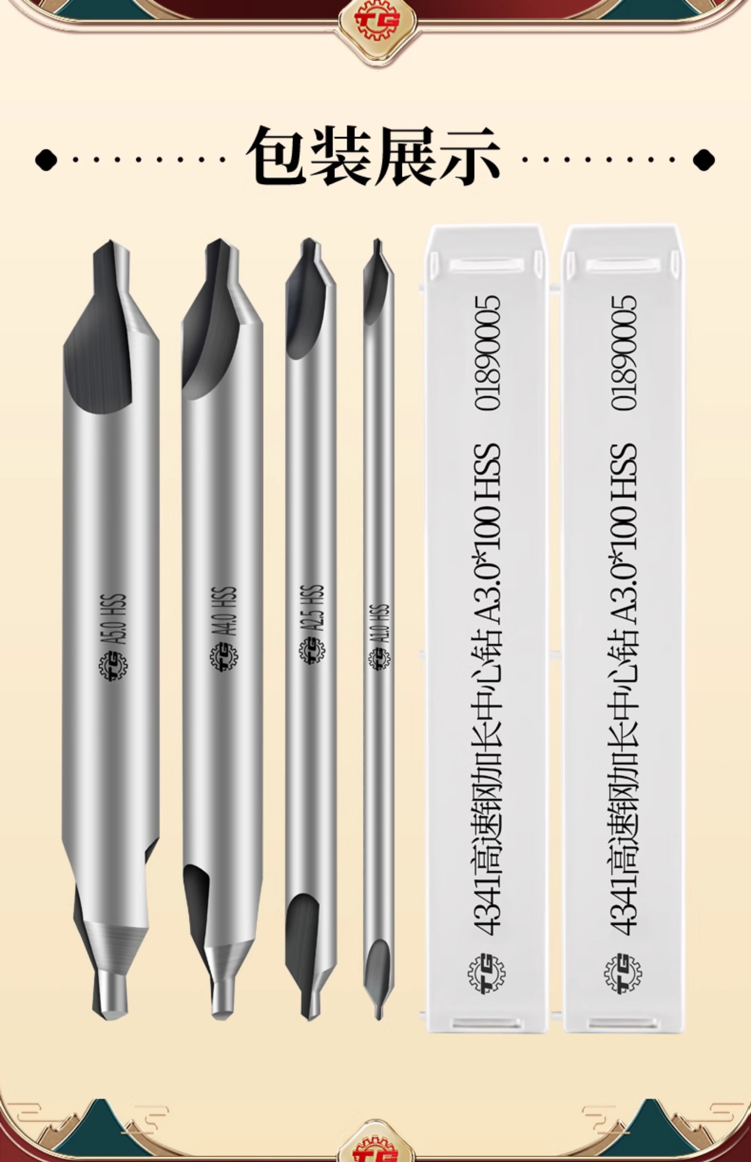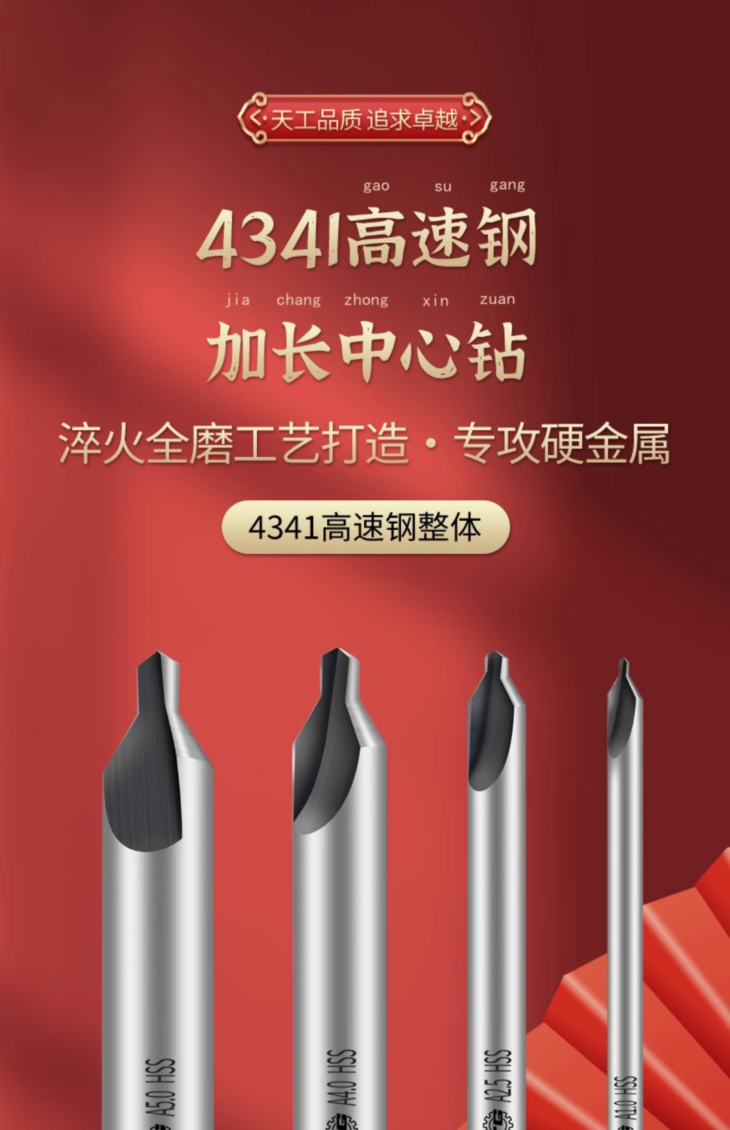 TIANGONG 4341 Extended Center Drill High Speed Steel Positioning Drill Fully Grinding Center Drill Stainless Steel Pointing Drill Bit 4341A Type 2.0*100 No Specifications
