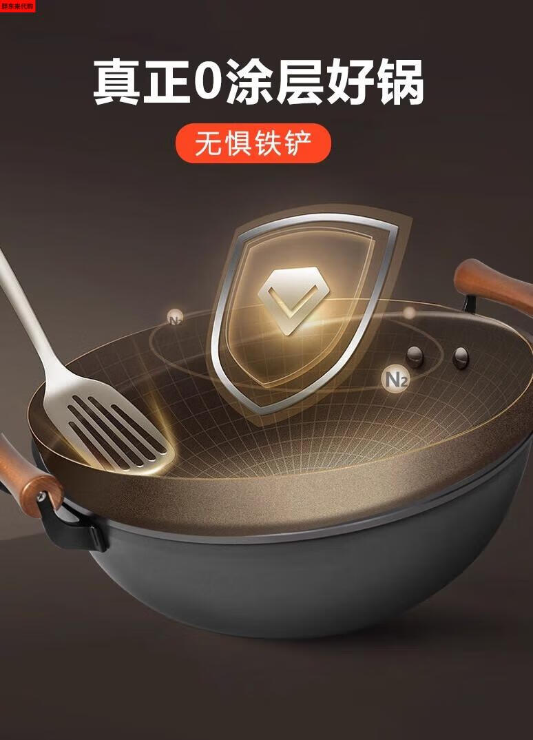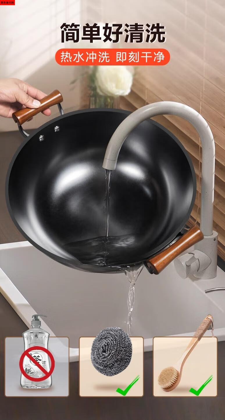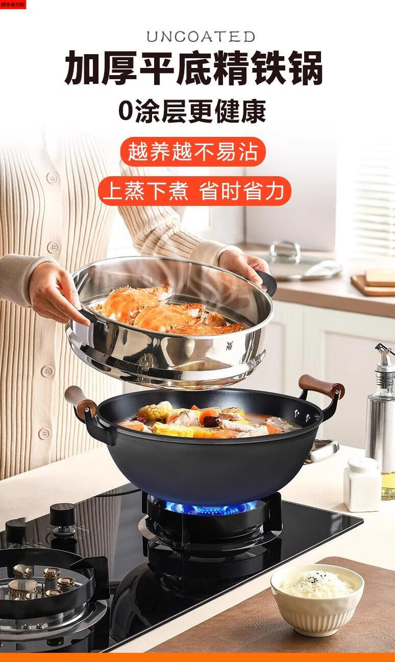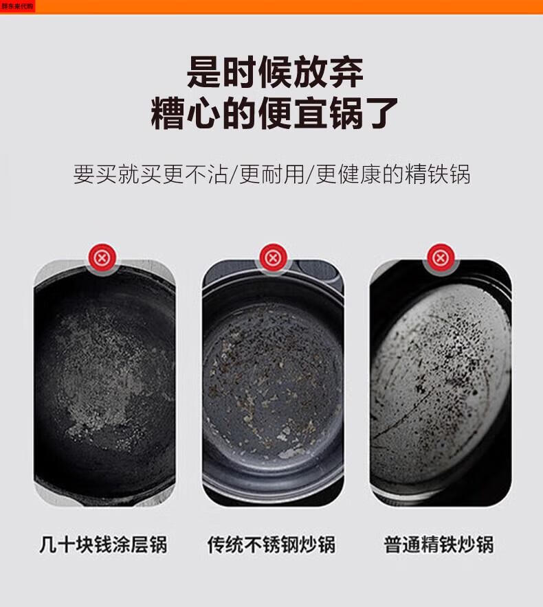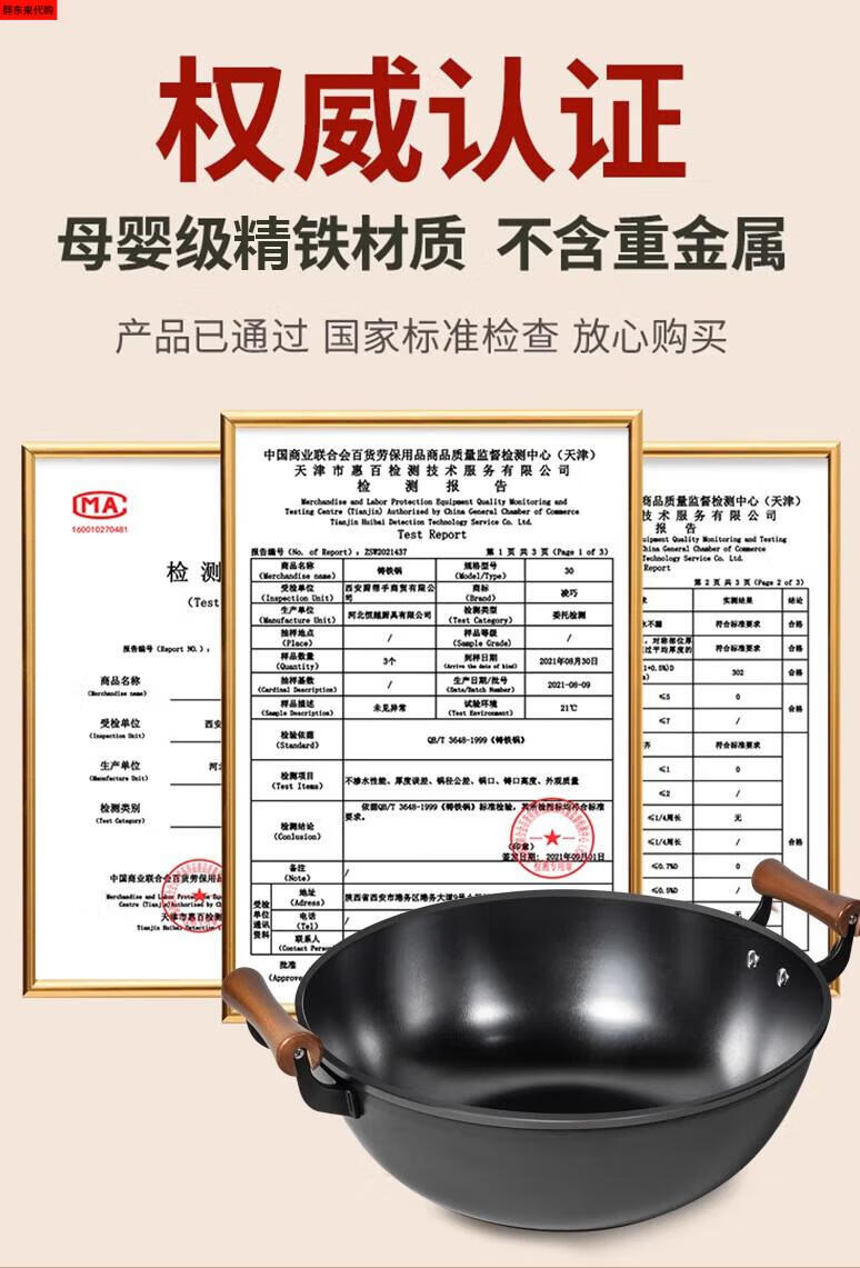 Fat Donglai thickened old-fashioned iron pot and deepened flat-bottomed cooking pot household double-ear cast iron wok induction cooker Fat Donglai same style + erectable steel lid 38cm