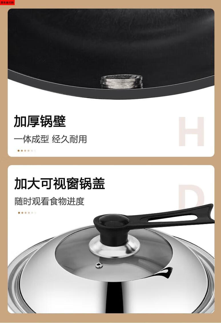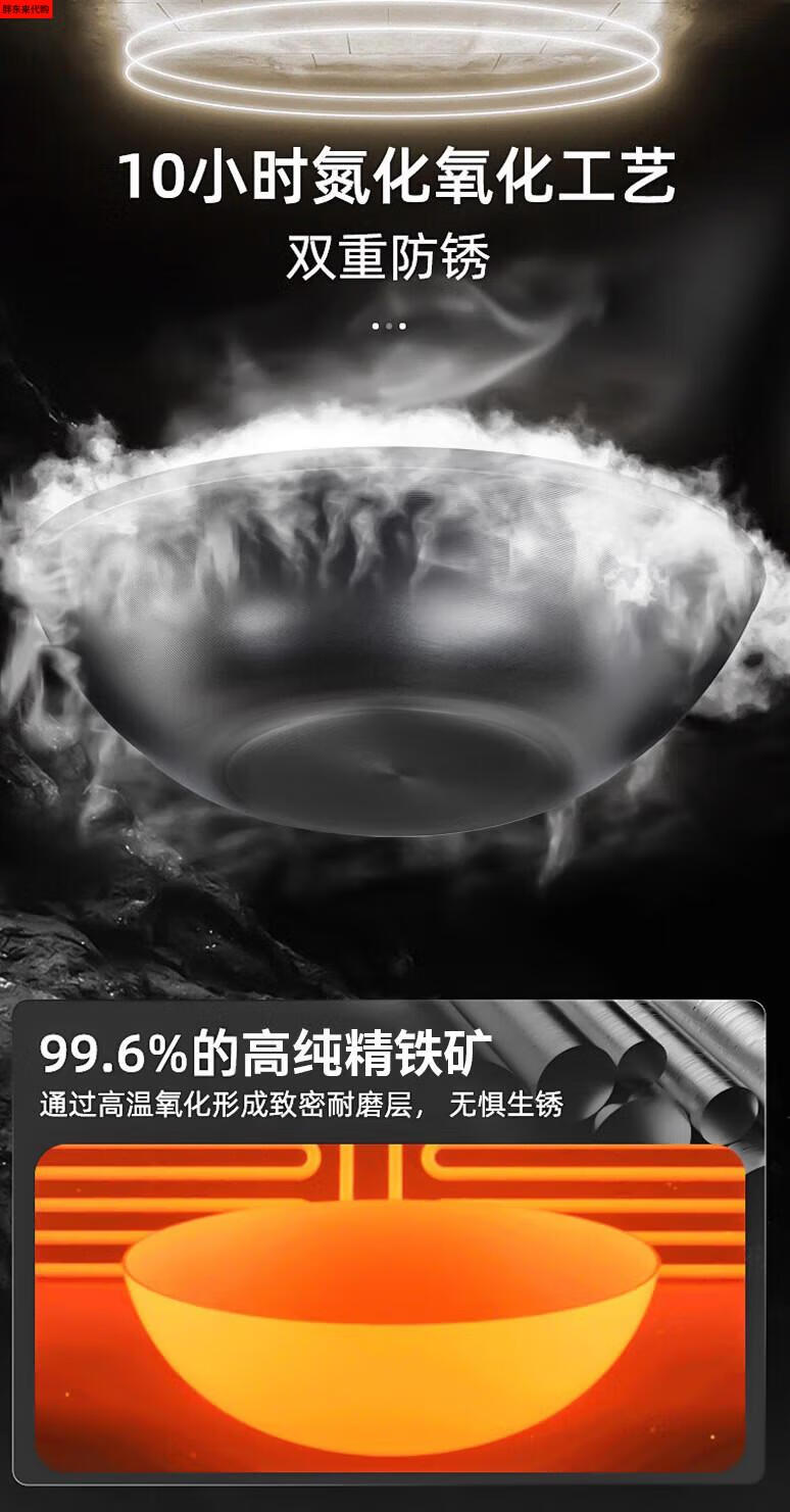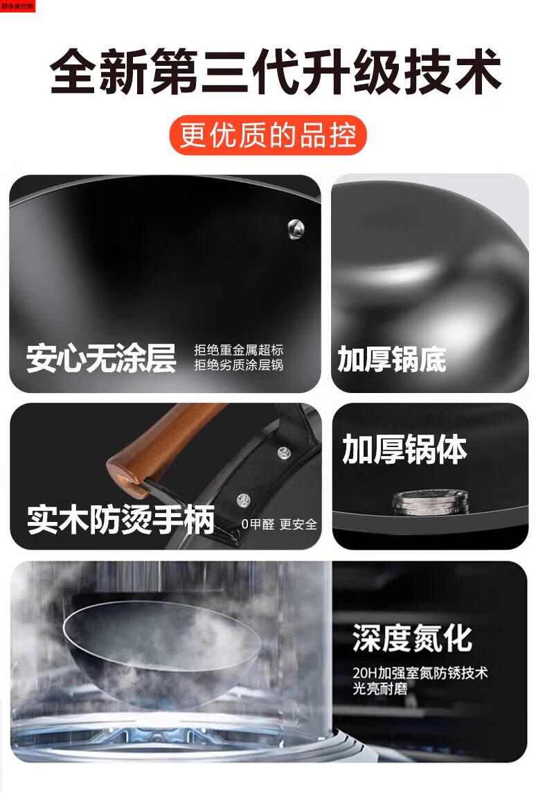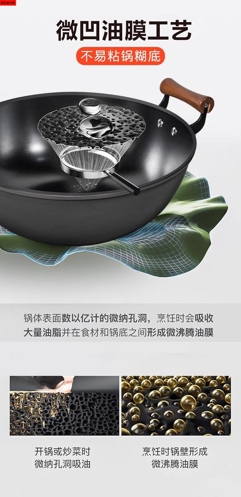 Fat Donglai thickened old-fashioned iron pot and deepened flat-bottomed cooking pot household double-ear cast iron wok induction cooker Fat Donglai same style + erectable steel lid 38cm