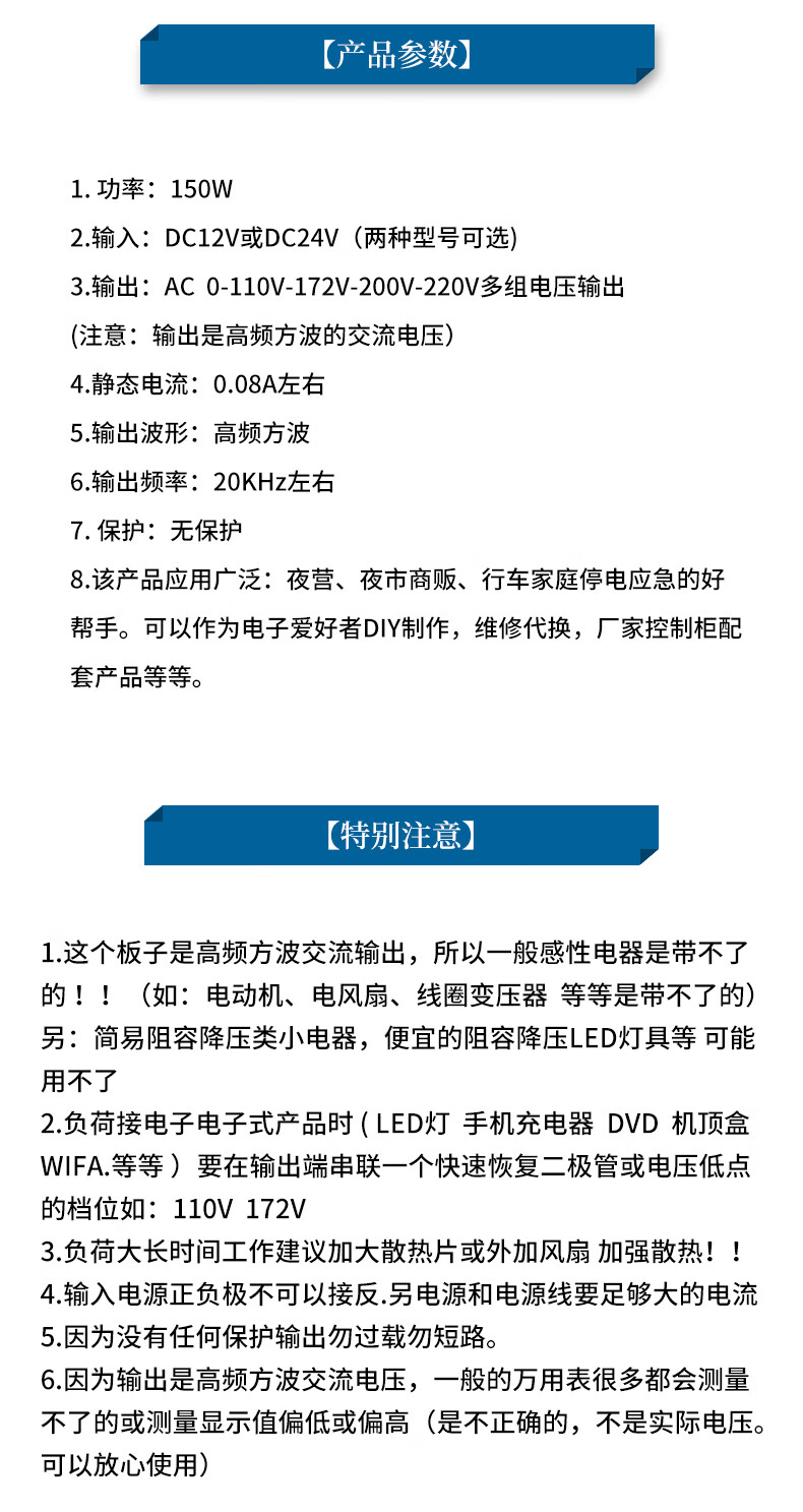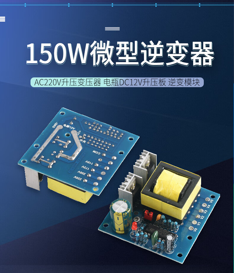 150W micro inverter AC220V step-up transformer Battery DC12V step-up board 24V inverter module 150W inverter power module 12V step-up DC-AC No specifications