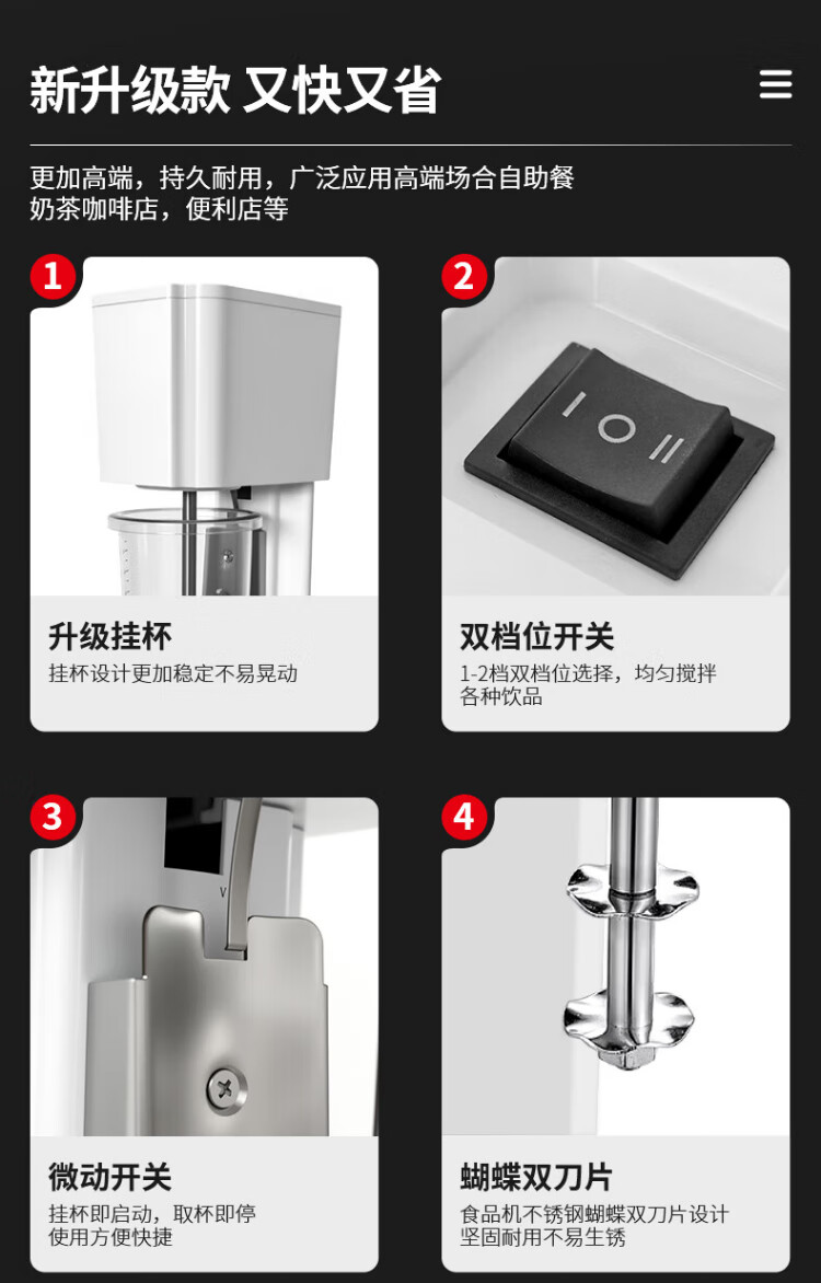 Fangchu milkshake machine, commercial milk tea shop special mixer, large capacity fully automatic electric milk capping machine, flagship model, white, one head and two cups