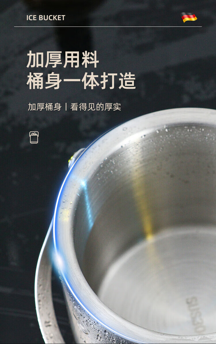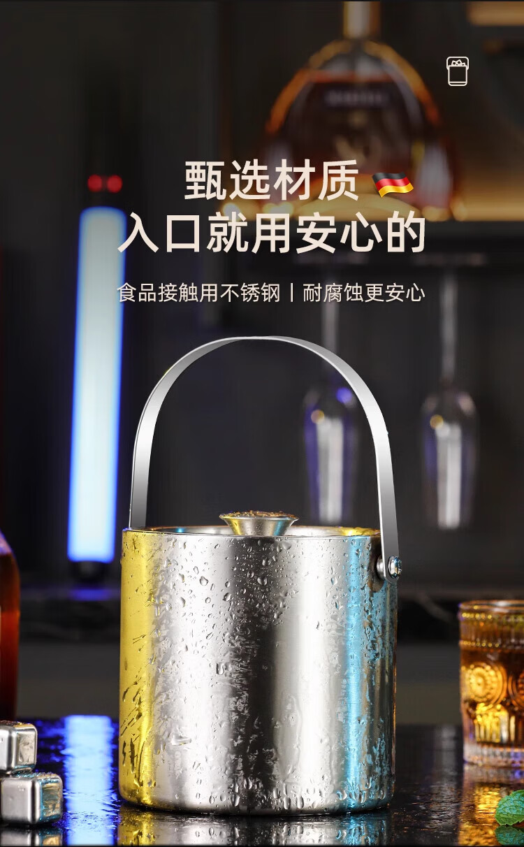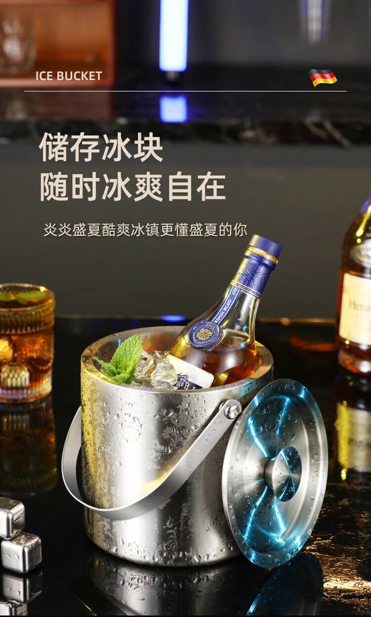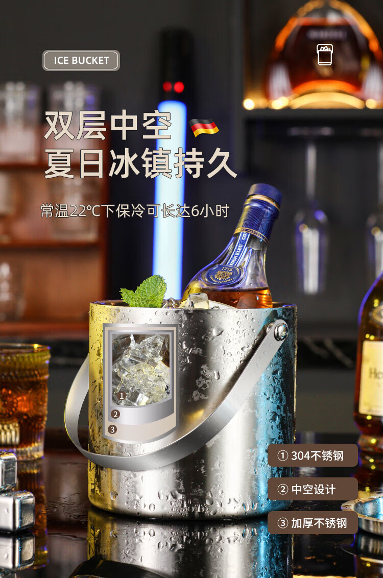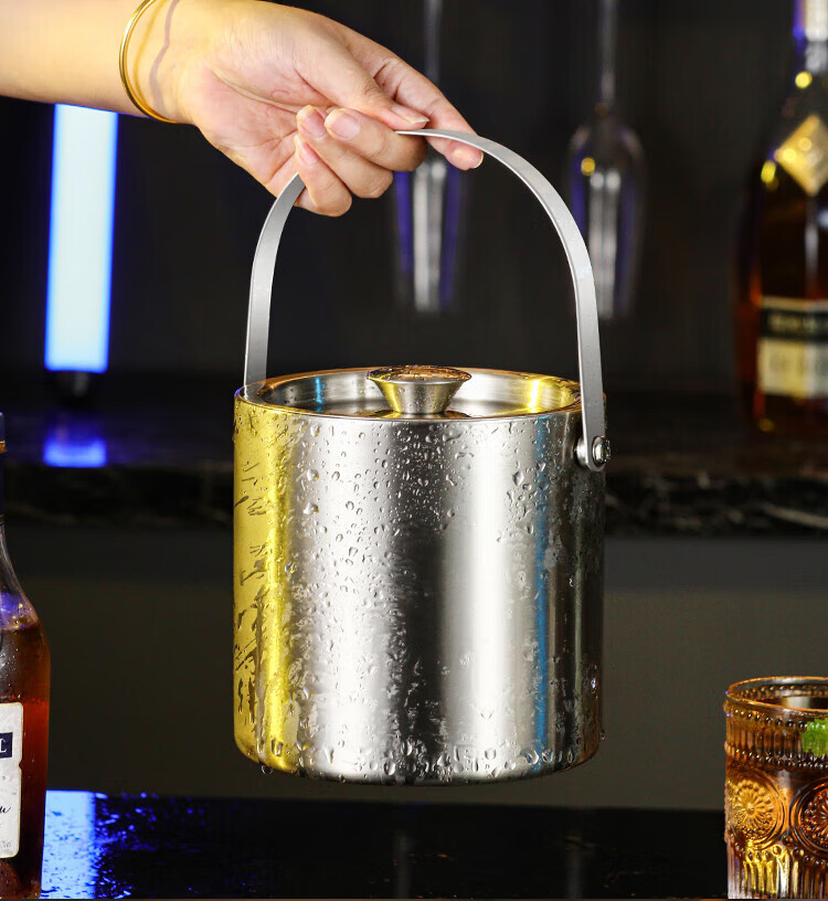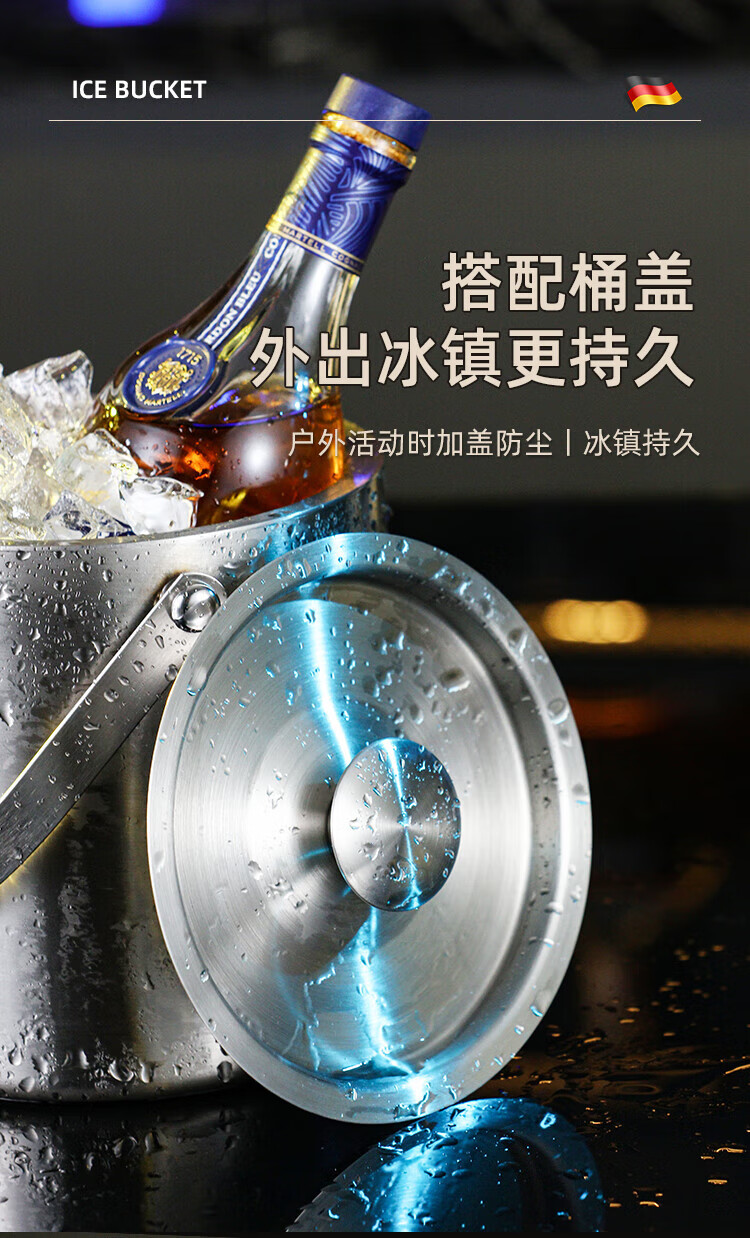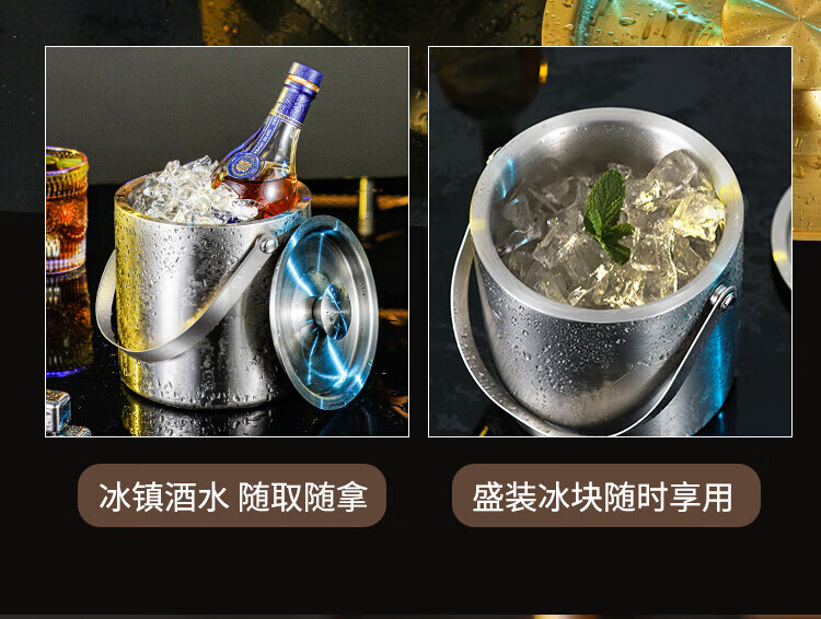 Shi Jin German quality ice bucket ice bar KTV304 stainless steel double layer with lid insulated ice bucket champagne ice cube Tuhao Gold 304 stainless steel double layer 1.6L